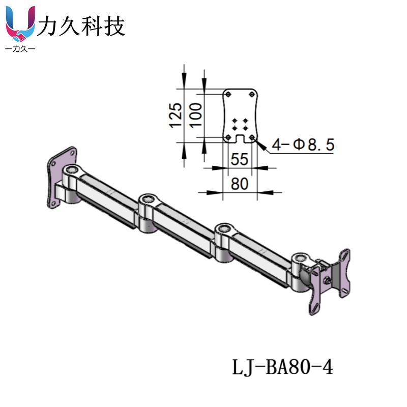 BA80 산업용 모니터 스탠드 강화된 내하중 알루미늄 합금 양극 처리 접이식 텔레스코픽 케이블 컴퓨터