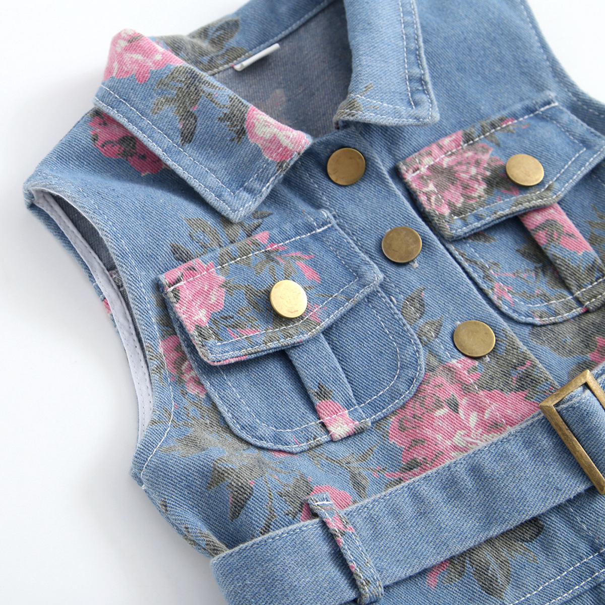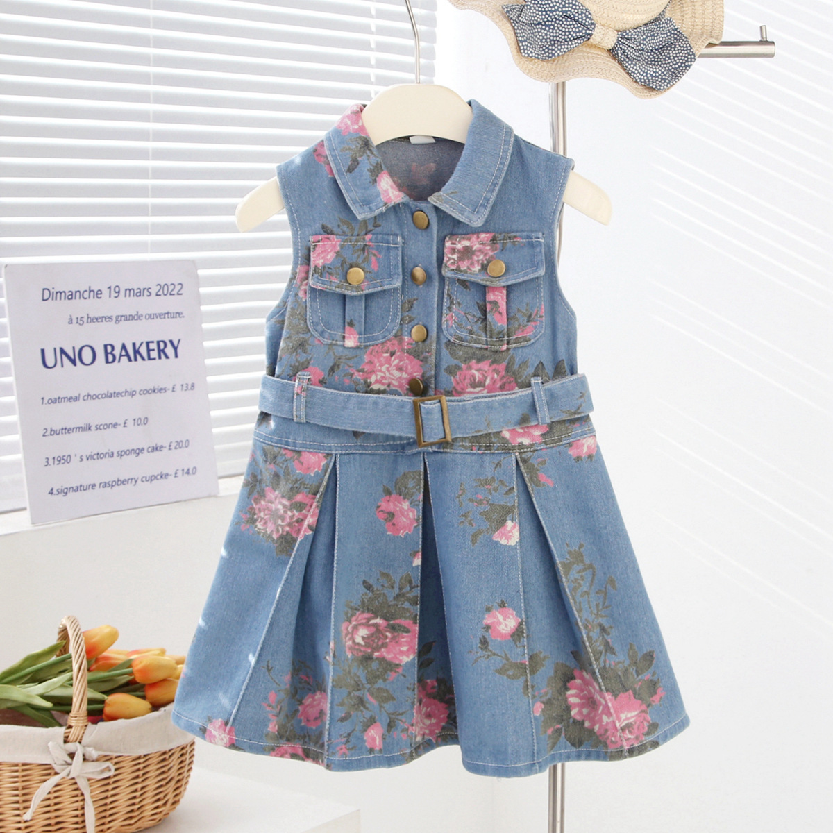 여자 민소매 데님 드레스 2025 여름 꽃 프린트 데님 스커트 허리 라펠 얇은 탱크 탑 유행스토어 가기