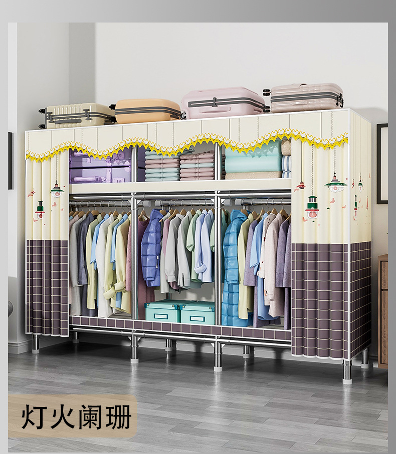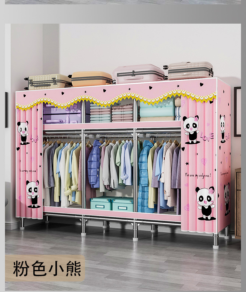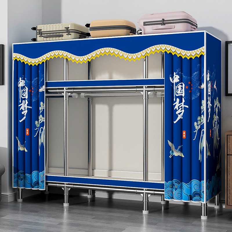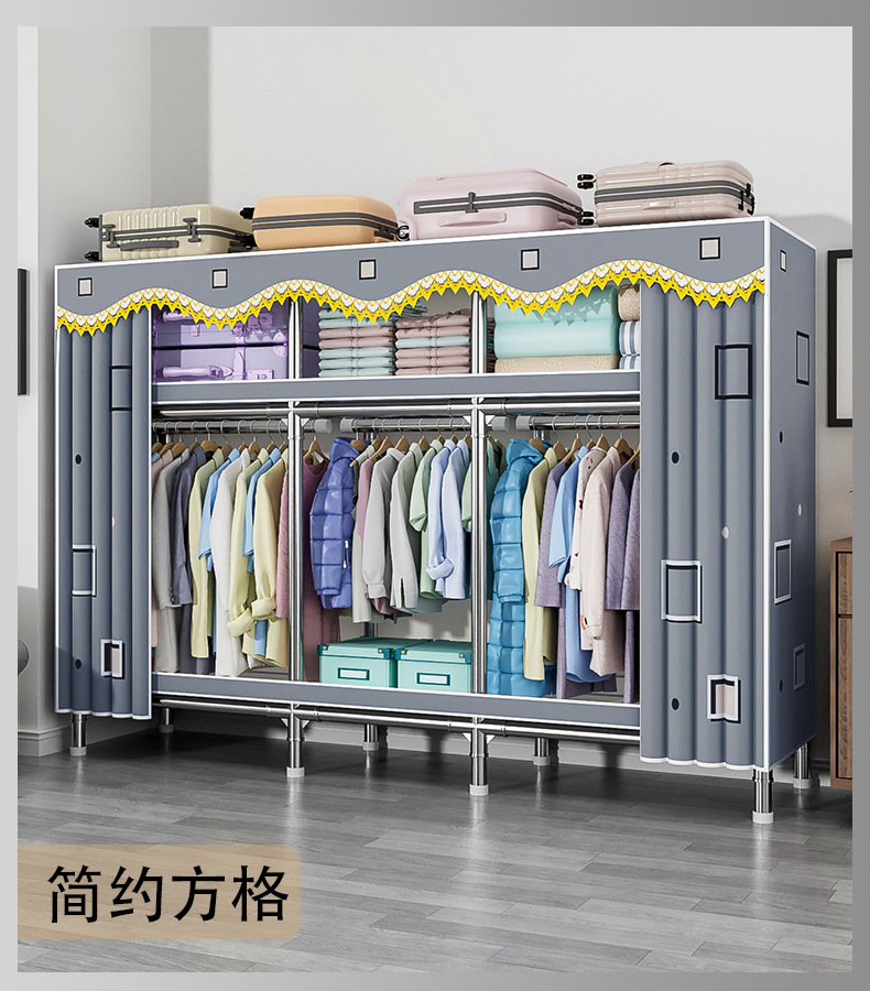 옷장 가정용 침실 전체 강철 프레임 두꺼운 천 옷장 임대실 강력하고 내구성이 뛰어난 작은 아파트 간단한 Tω스토어 가기