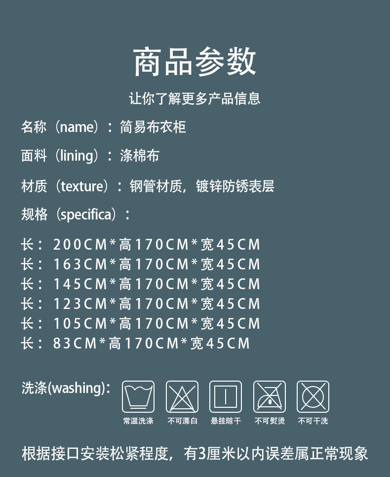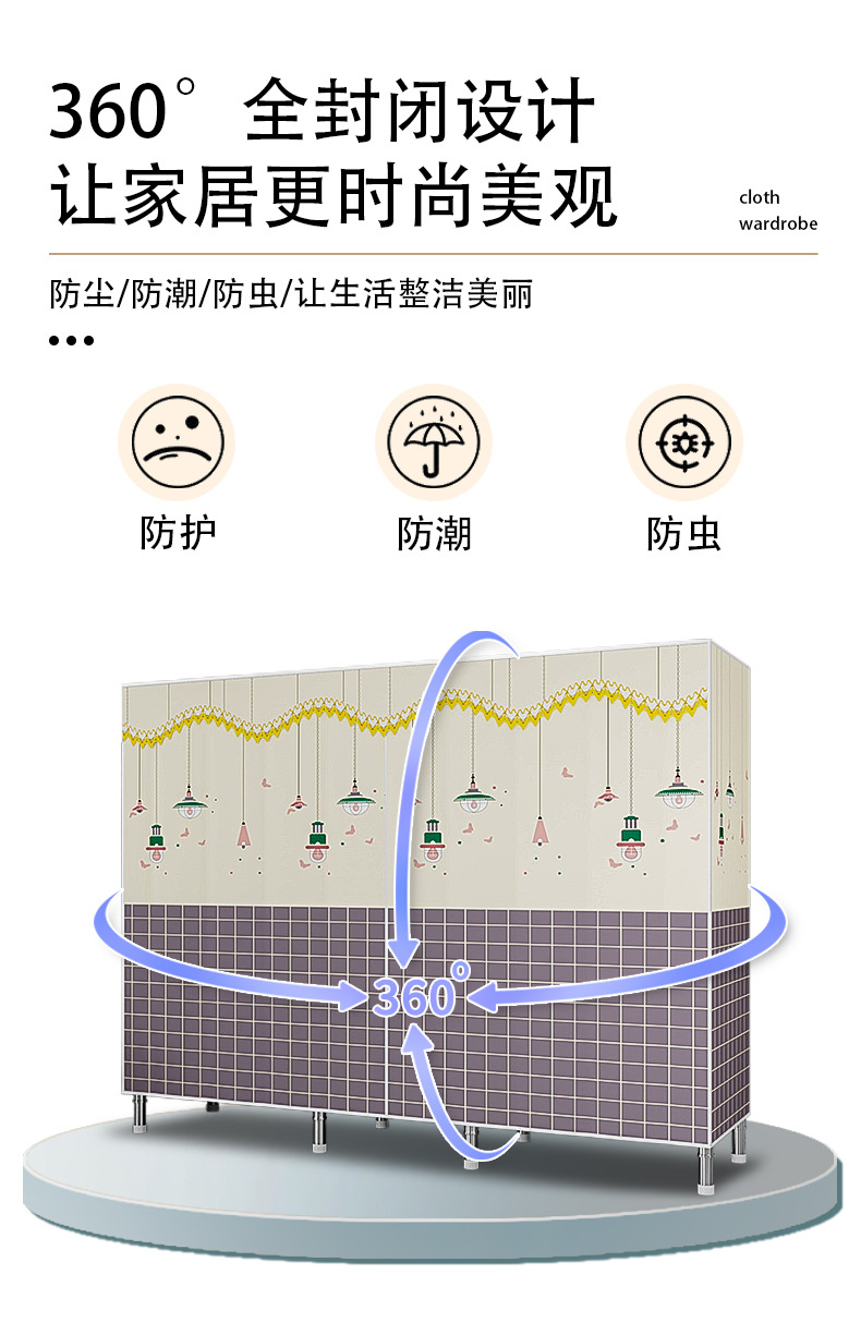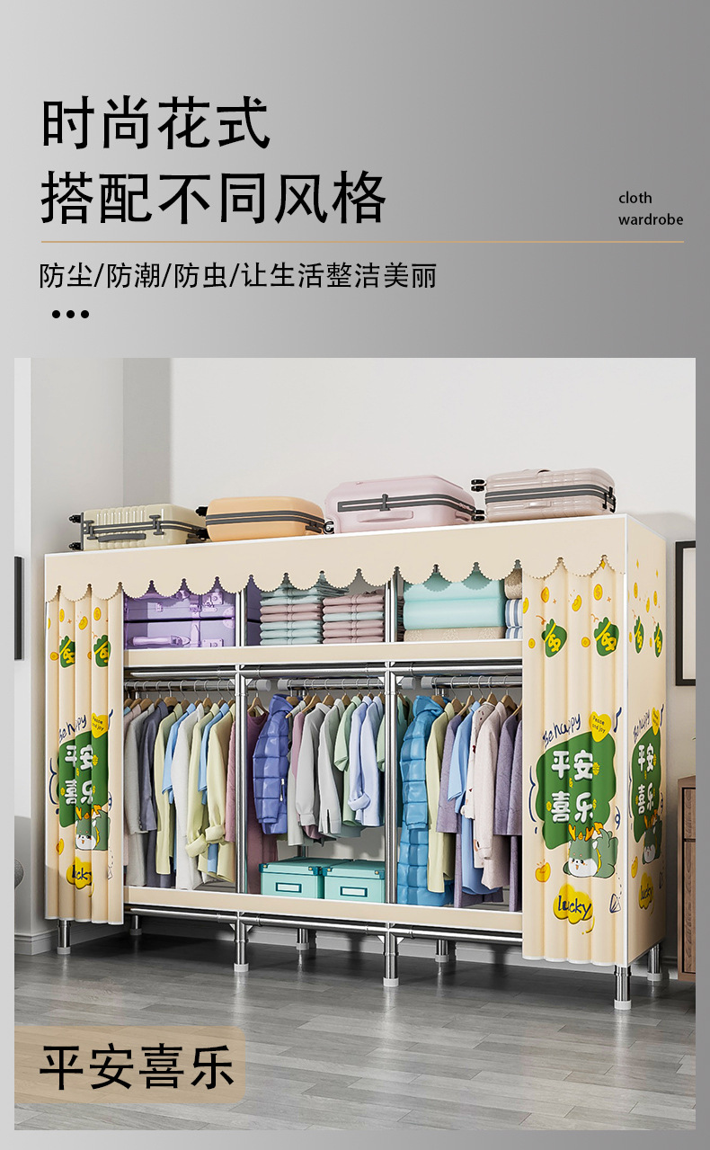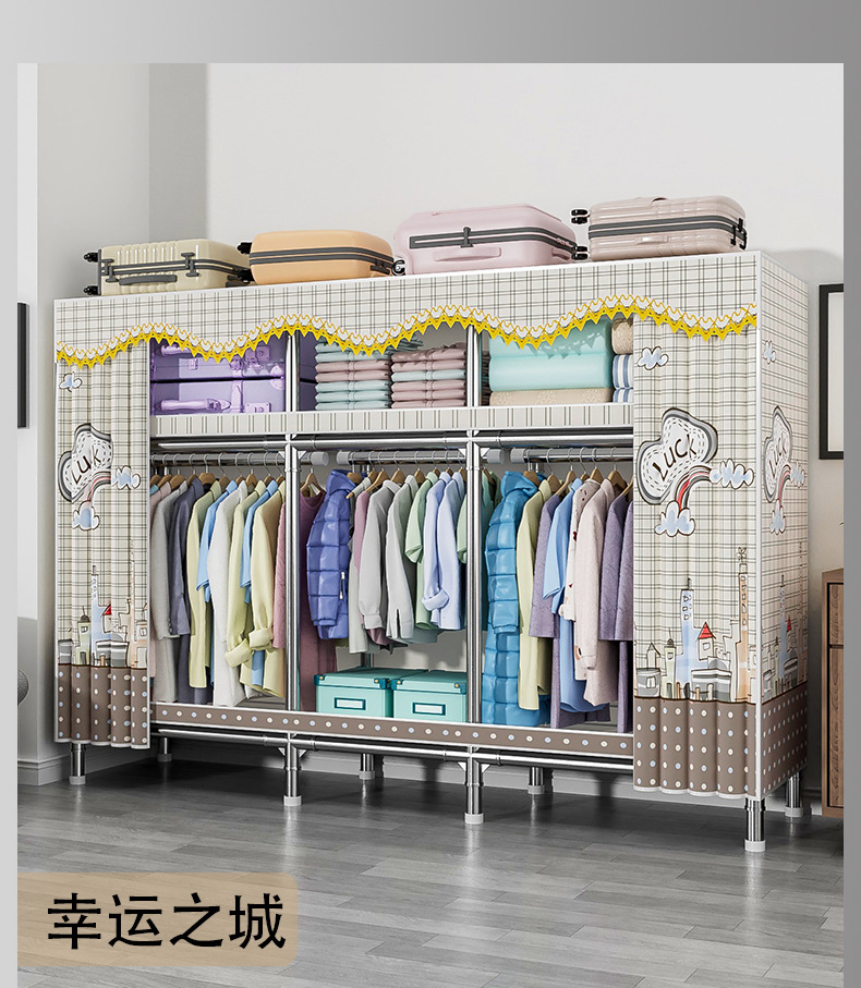 옷장 가정용 침실 전체 강철 프레임 두꺼운 천 옷장 임대실 강력하고 내구성이 뛰어난 작은 아파트 간단한 Tω스토어 가기
