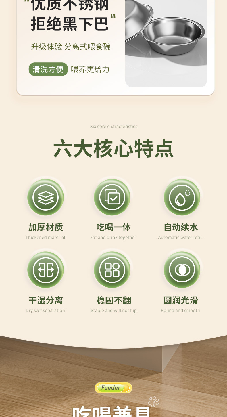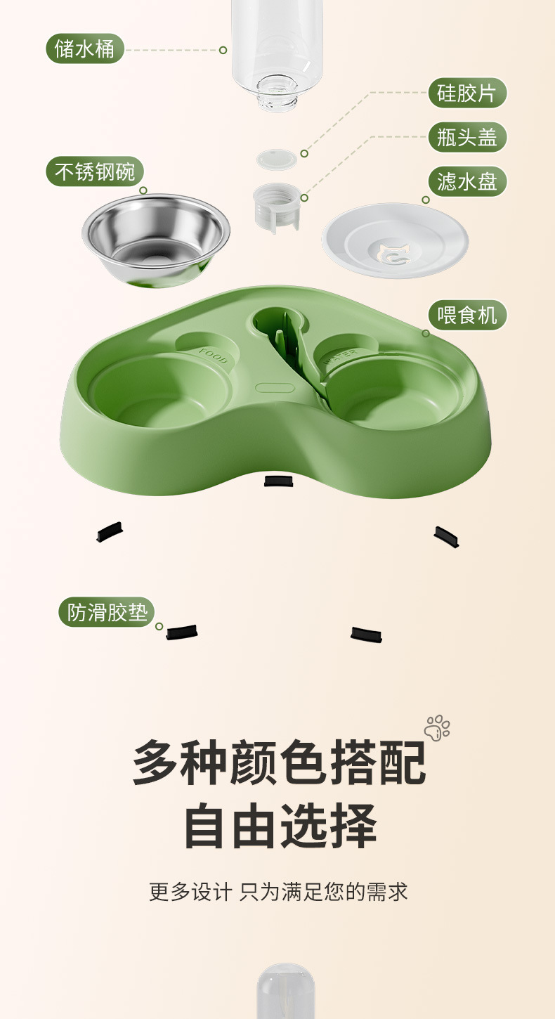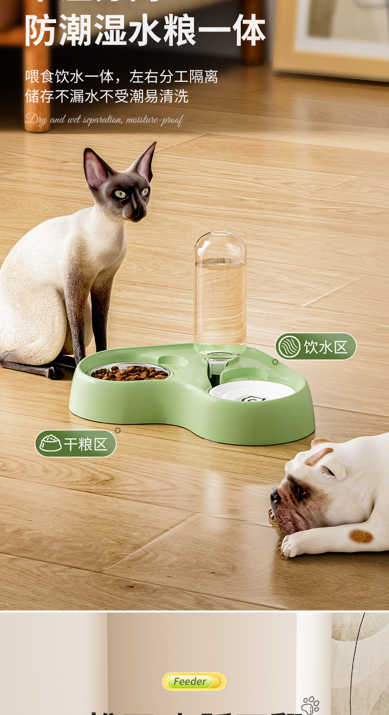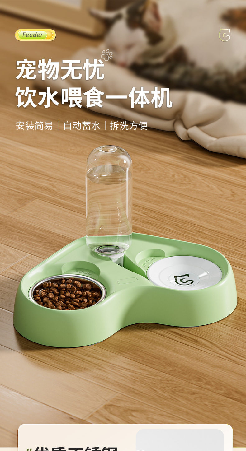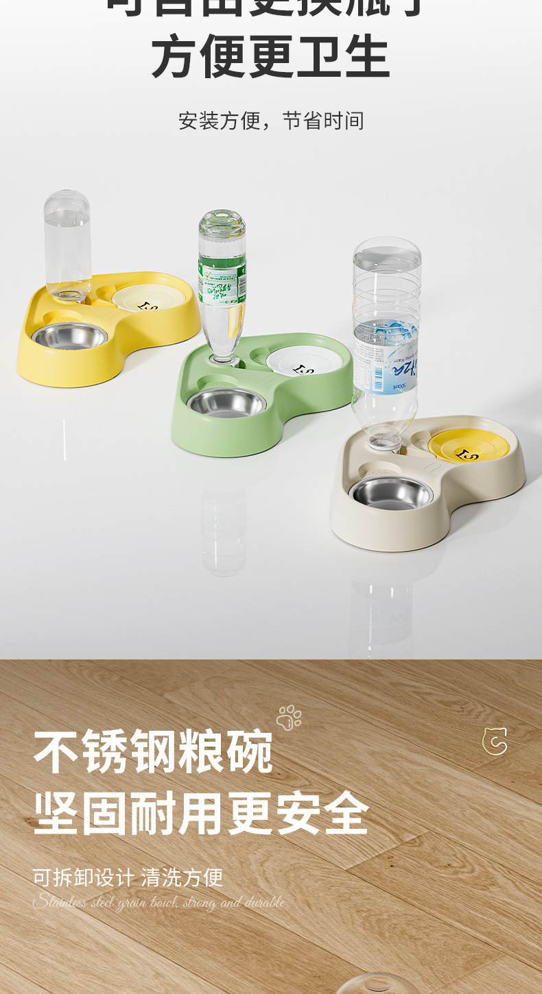 새로운 고양이 먹이통, 물그릇, 물과 사료 일체형 투인원 애완동물 고양이 그릇, 애완동물 용품, 국경 간 도매스토어 가기