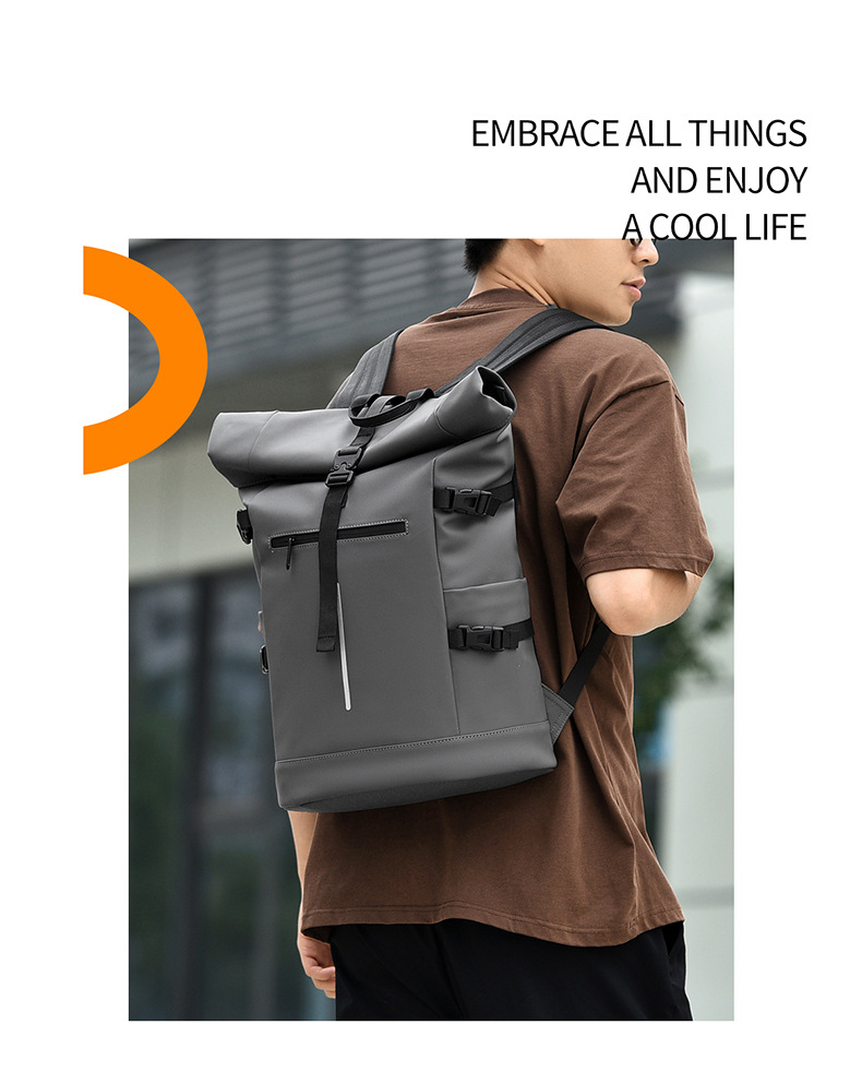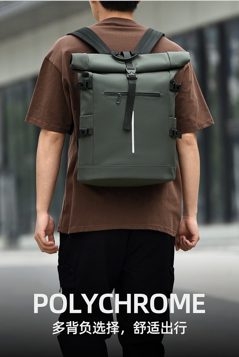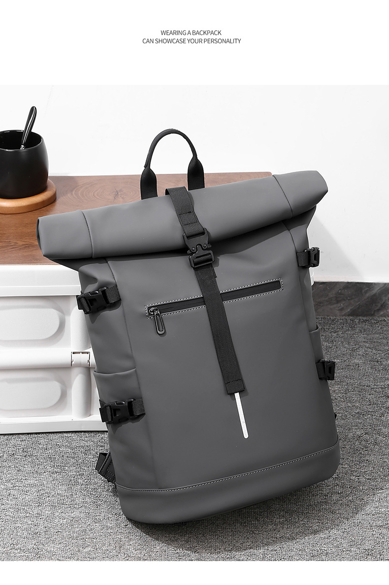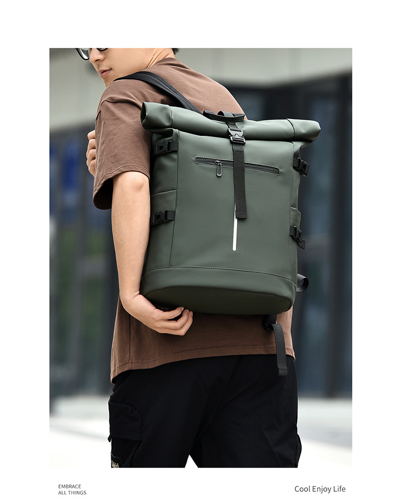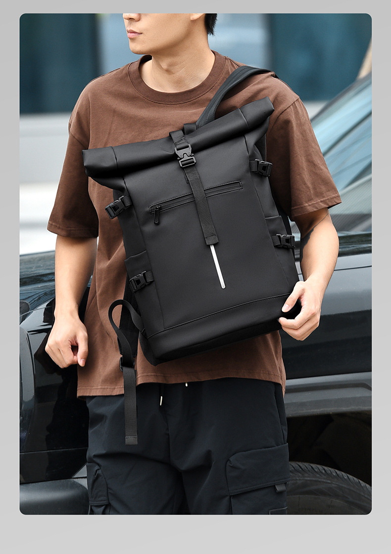 크로스보더 롤업 캐주얼 백팩 15inch 컴퓨터 가방 탑 롤업 커버 백팩 통근 캐주얼 대학생 통근 가방스토어 가기