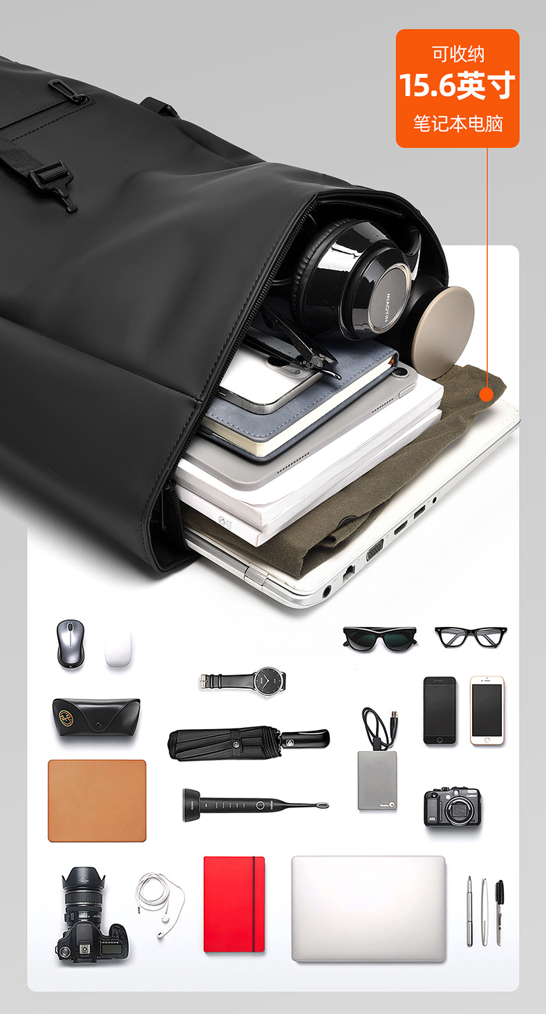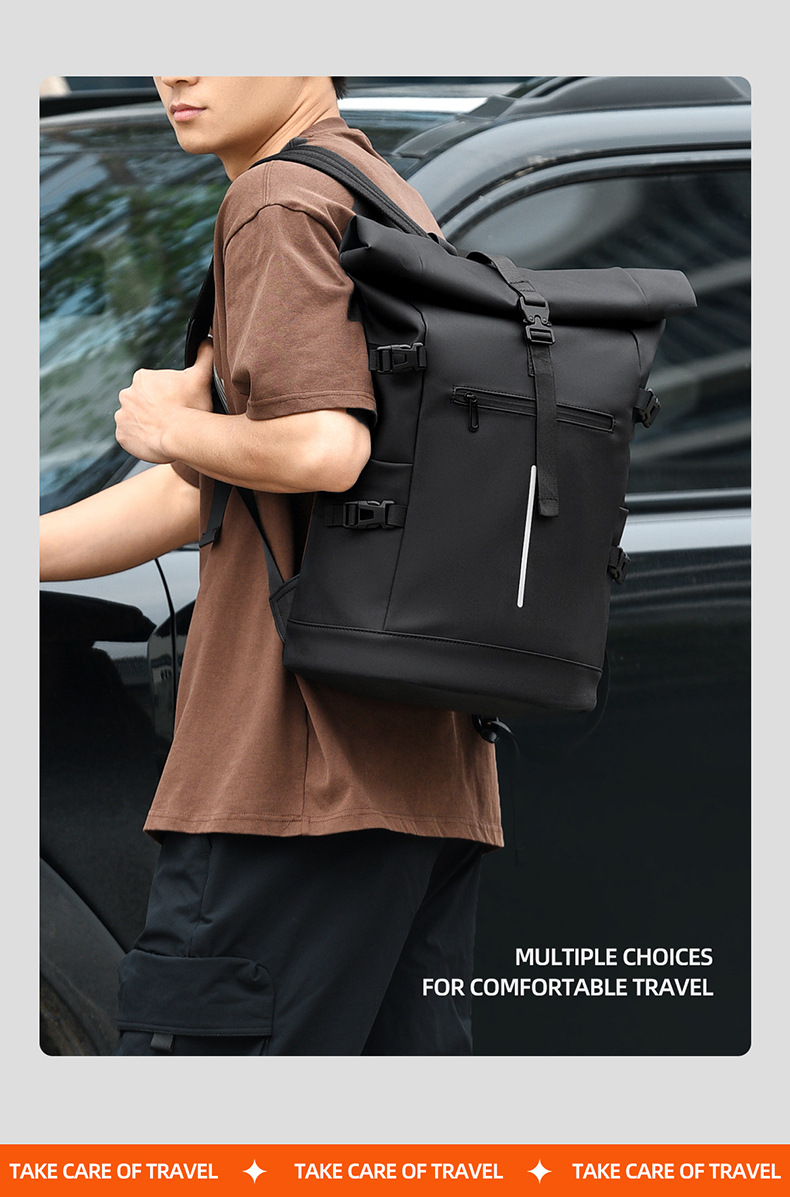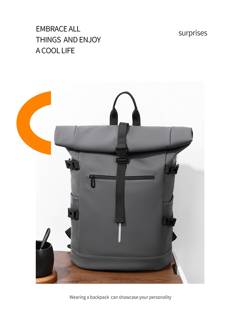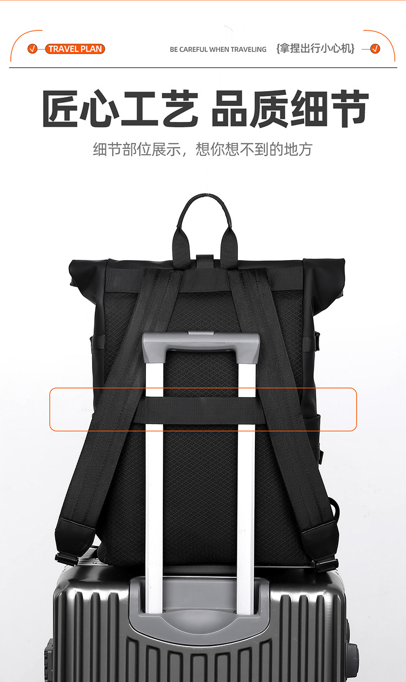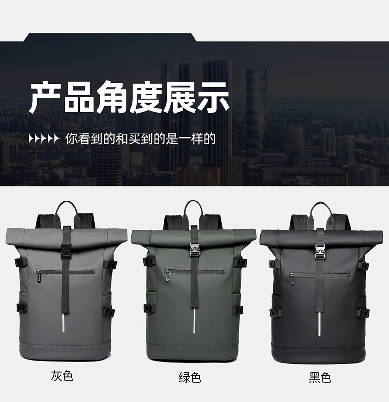 크로스보더 롤업 캐주얼 백팩 15inch 컴퓨터 가방 탑 롤업 커버 백팩 통근 캐주얼 대학생 통근 가방스토어 가기