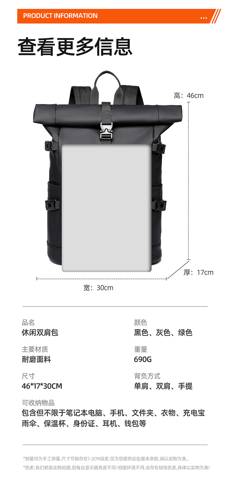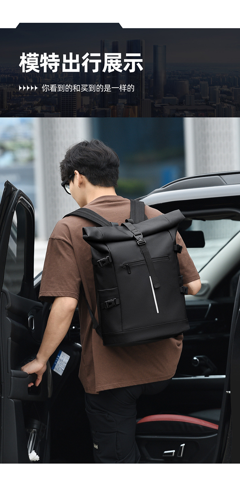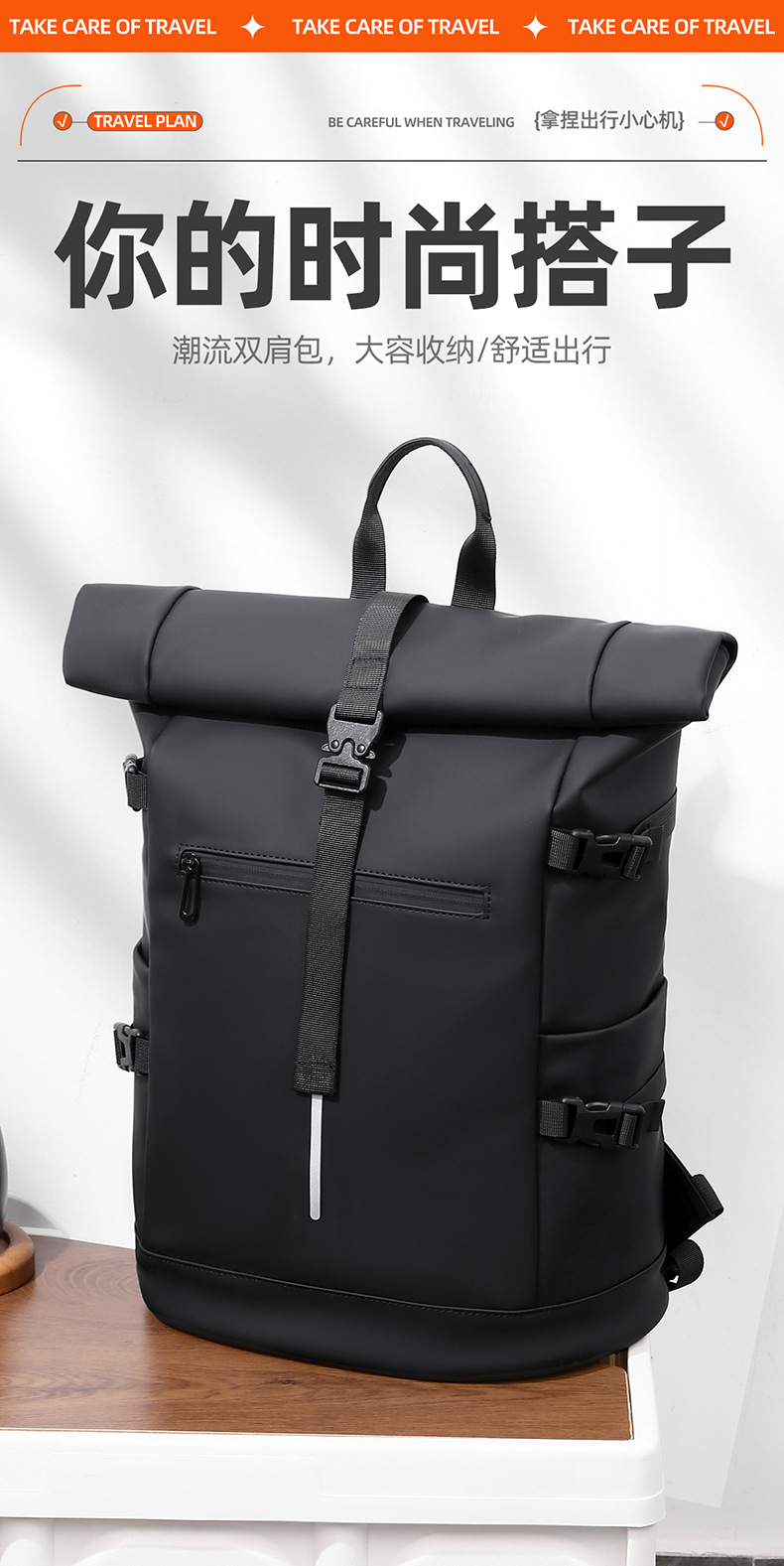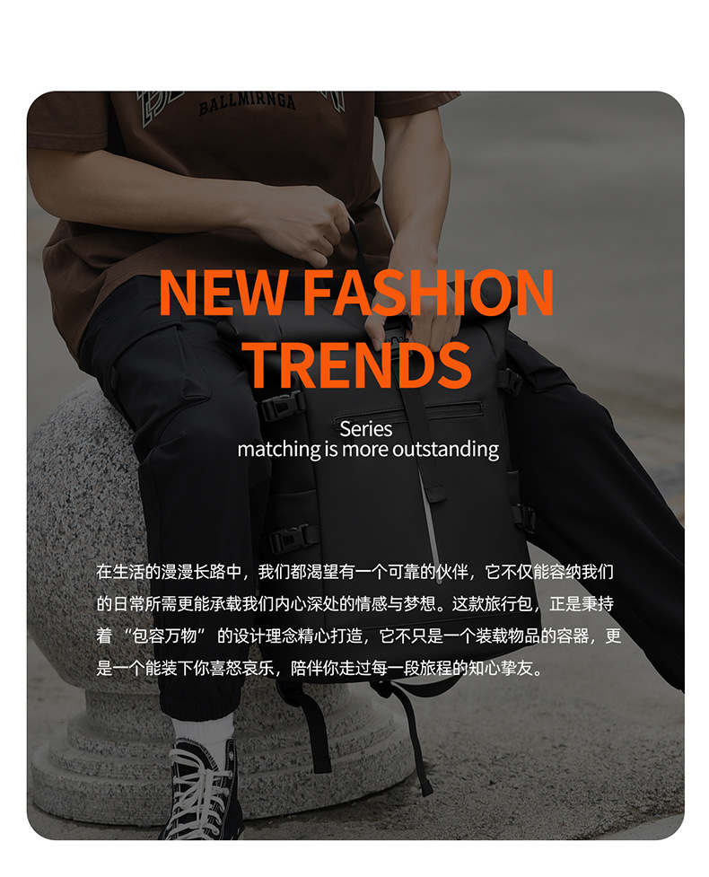 크로스보더 롤업 캐주얼 백팩 15inch 컴퓨터 가방 탑 롤업 커버 백팩 통근 캐주얼 대학생 통근 가방스토어 가기