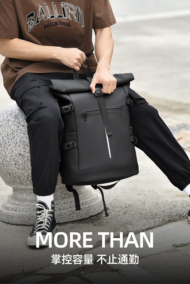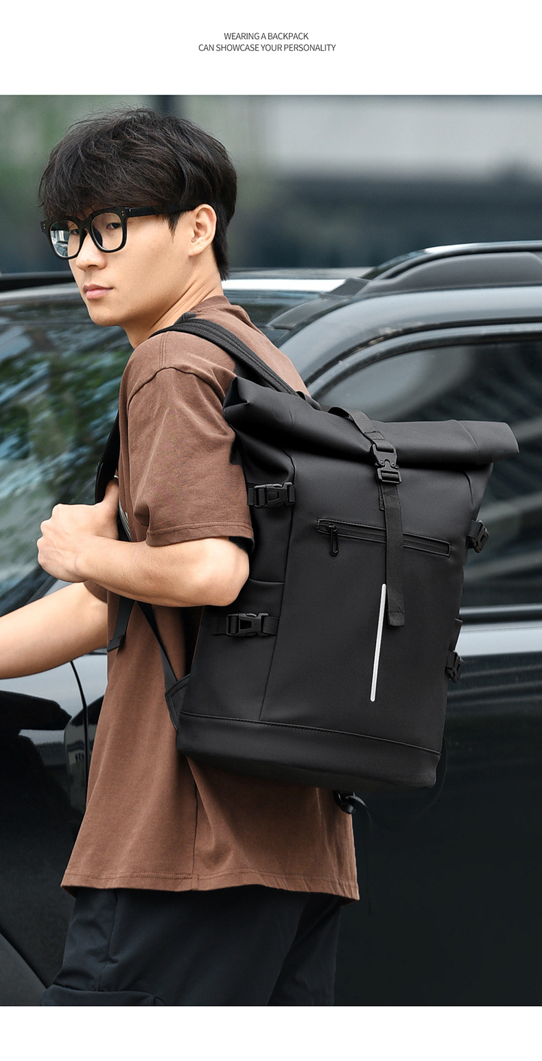 크로스보더 롤업 캐주얼 백팩 15inch 컴퓨터 가방 탑 롤업 커버 백팩 통근 캐주얼 대학생 통근 가방
