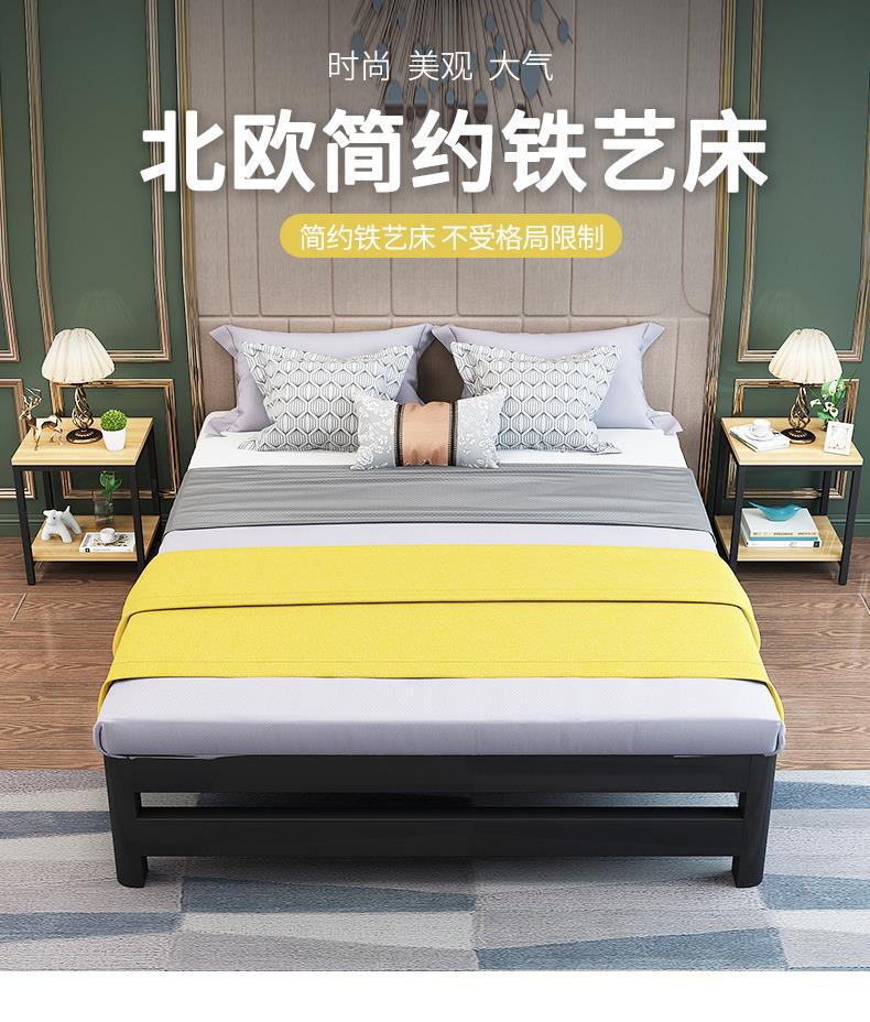 철제 침대 1.8m 가벼운 럭셔리 현대적인 미니멀리스트 더블 철제 프레임 침대 기숙사 1.5m 유럽식 싱글 침대 두꺼워지고 강화됨스토어 가기