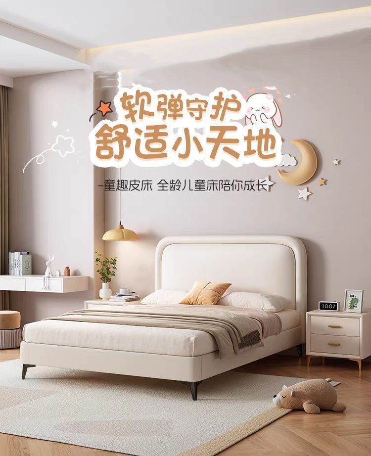 • 유기 실리콘 가죽 싱글 침대 + 싱글 캐비닛