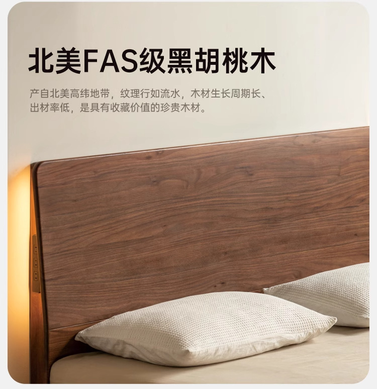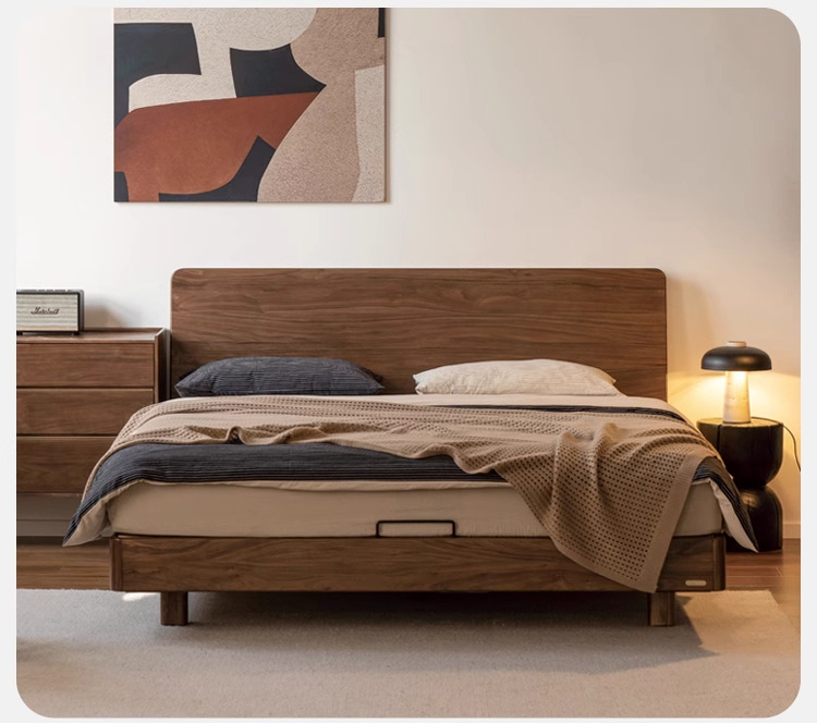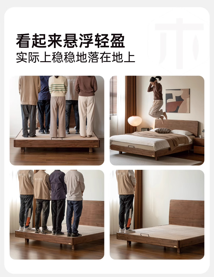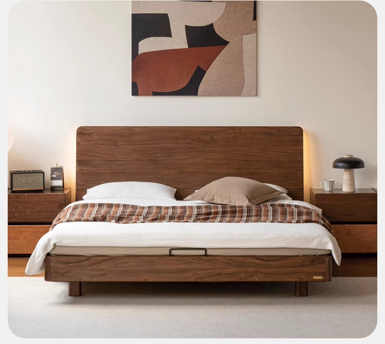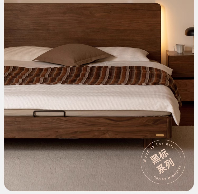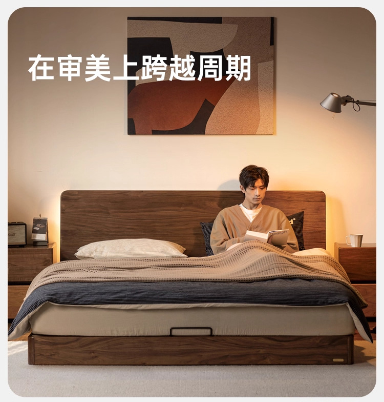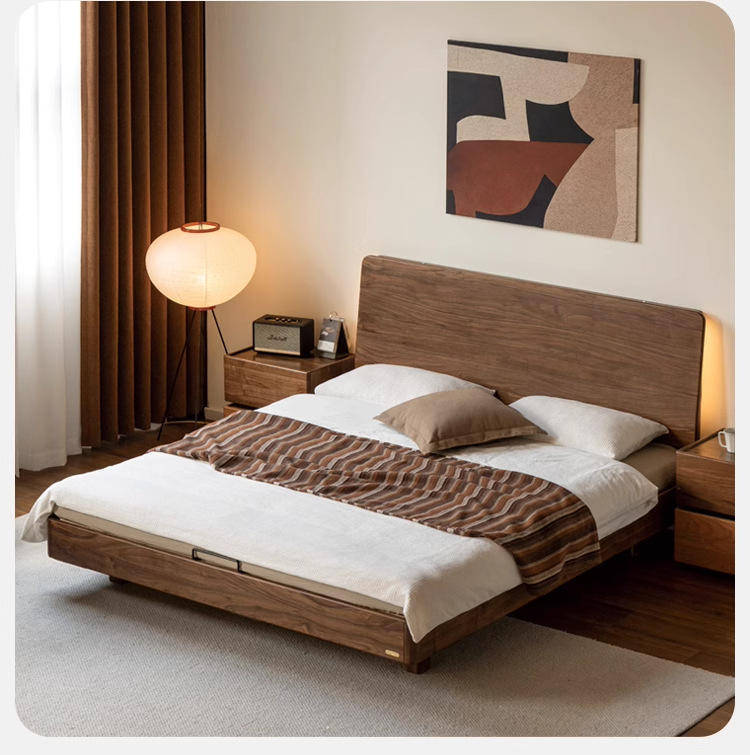단단한 나무 침대 현대적인 간단한 북미 검은 호두 나무 매달려 침대 싱글 침대 블랙 라벨 침실 더블 침대 홈 대형 침대스토어 가기
