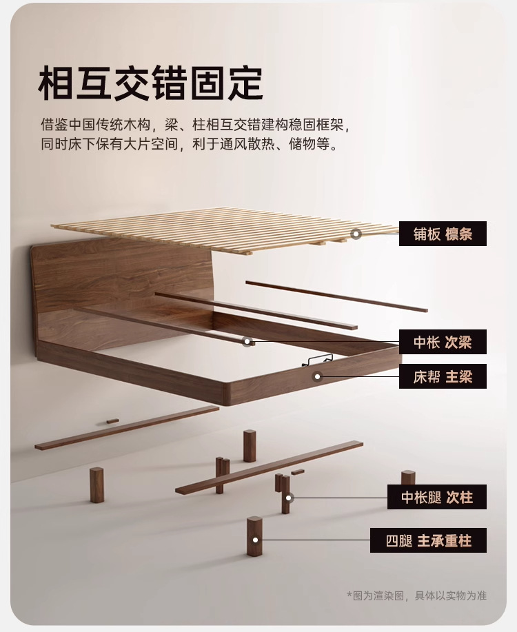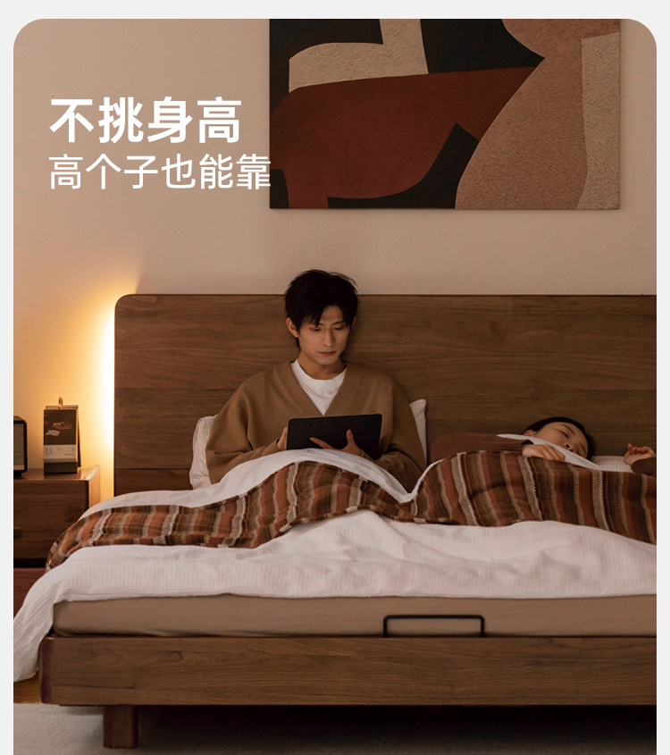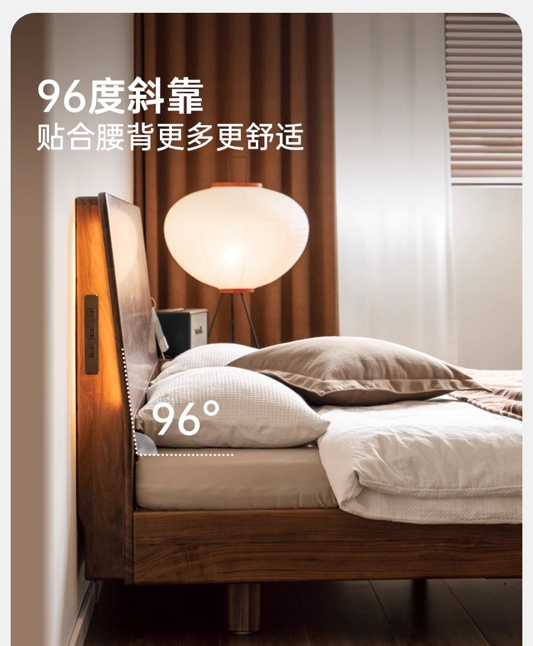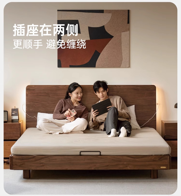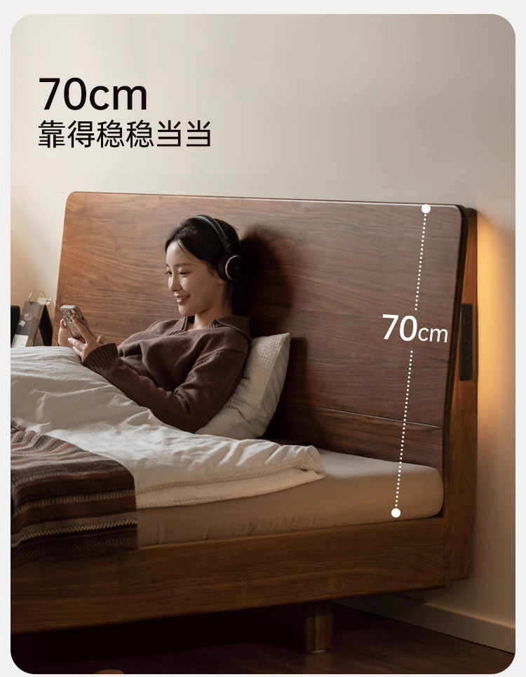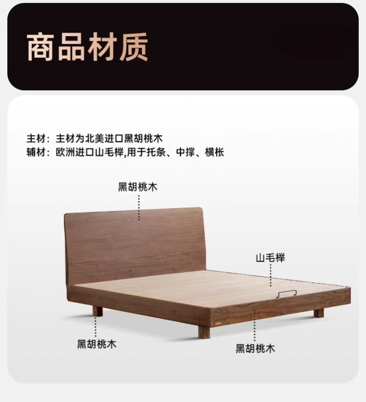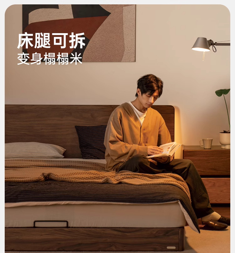 단단한 나무 침대 현대적인 간단한 북미 검은 호두 나무 매달려 침대 싱글 침대 블랙 라벨 침실 더블 침대 홈 대형 침대스토어 가기