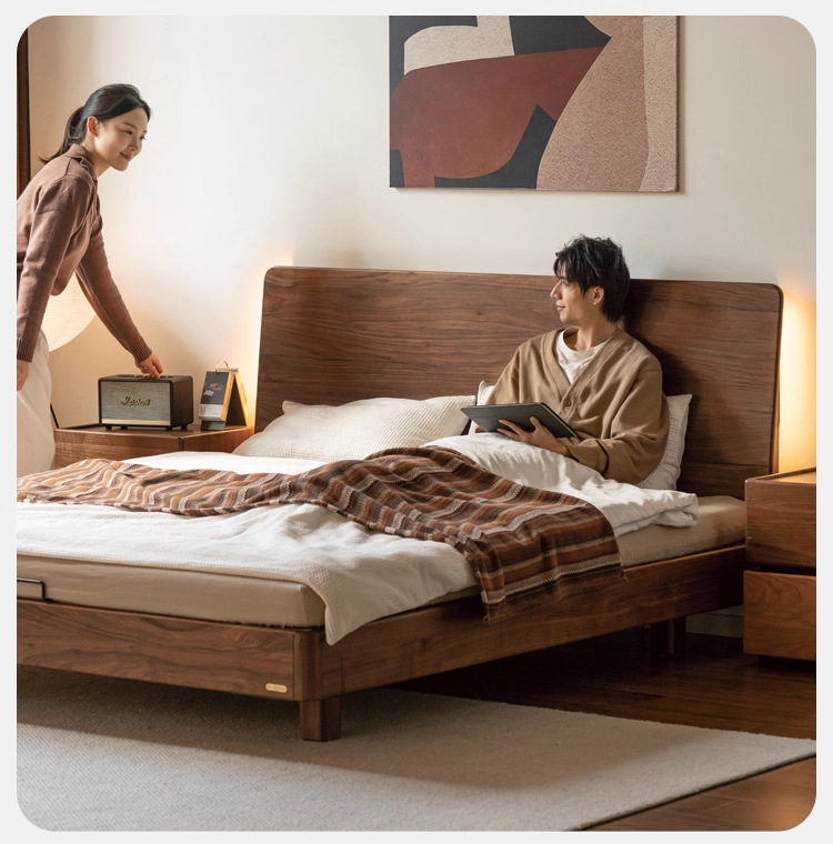 단단한 나무 침대 현대적인 간단한 북미 검은 호두 나무 매달려 침대 싱글 침대 블랙 라벨 침실 더블 침대 홈 대형 침대