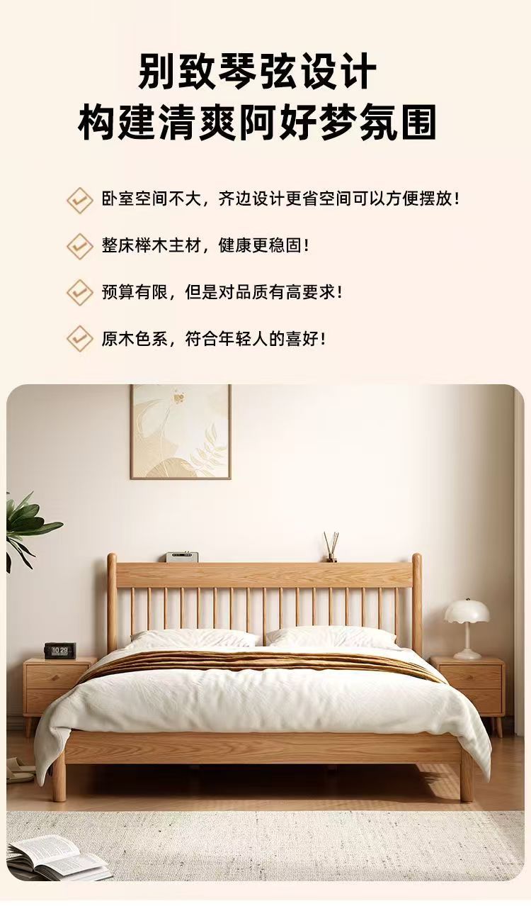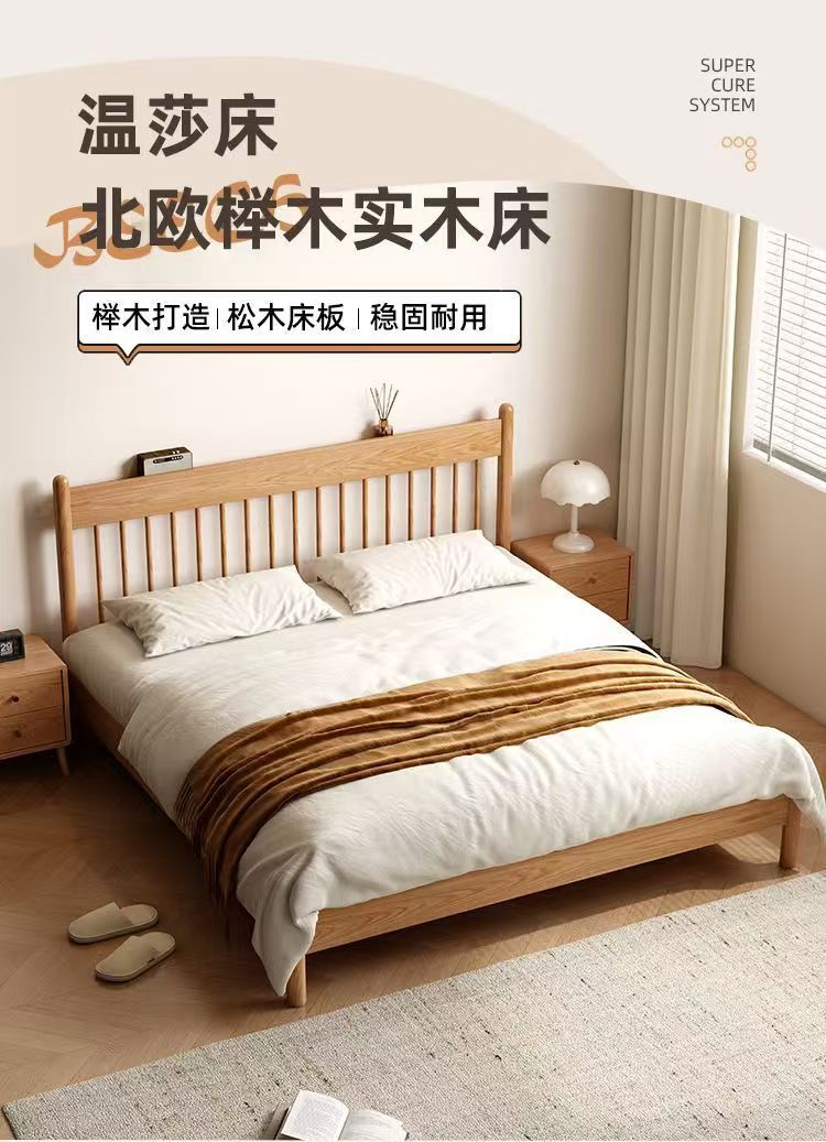 너도밤나무 윈저 침대 북유럽 전체 단단한 나무 침대 1.8m 더블 침대 홈 1.5m 임대 침대 1m 싱글 침대