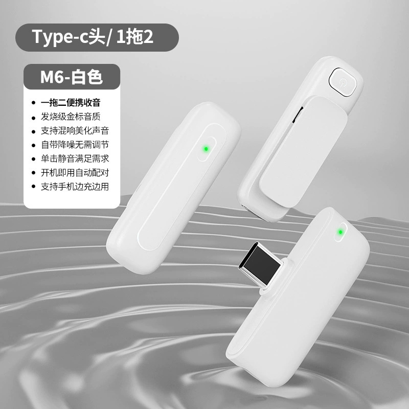 新款收音麦克风AI降噪混响直播专用话筒视频vlog无线领夹麦克风M6