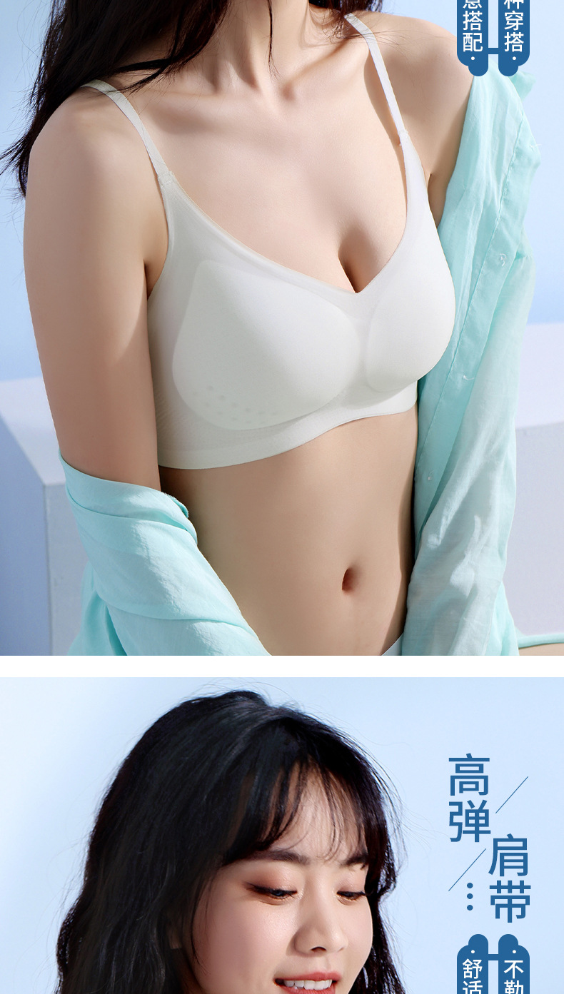 여성용 여름 심리스 속옷, 얇은 와이어 프리 조끼 스타일, 슬리밍, 작은 가슴 푸시업, 처짐 방지, 통기성 아이스 실크 브라
