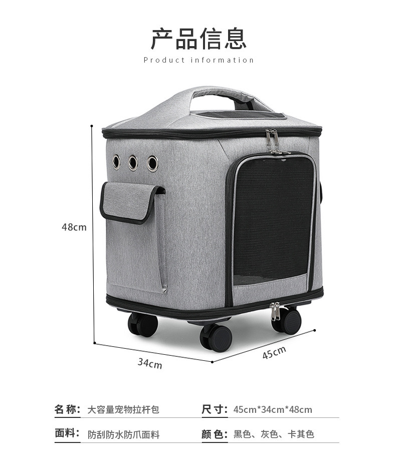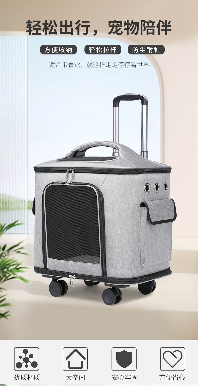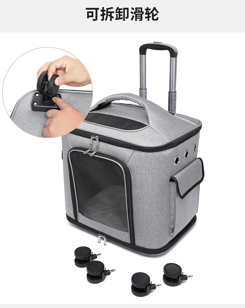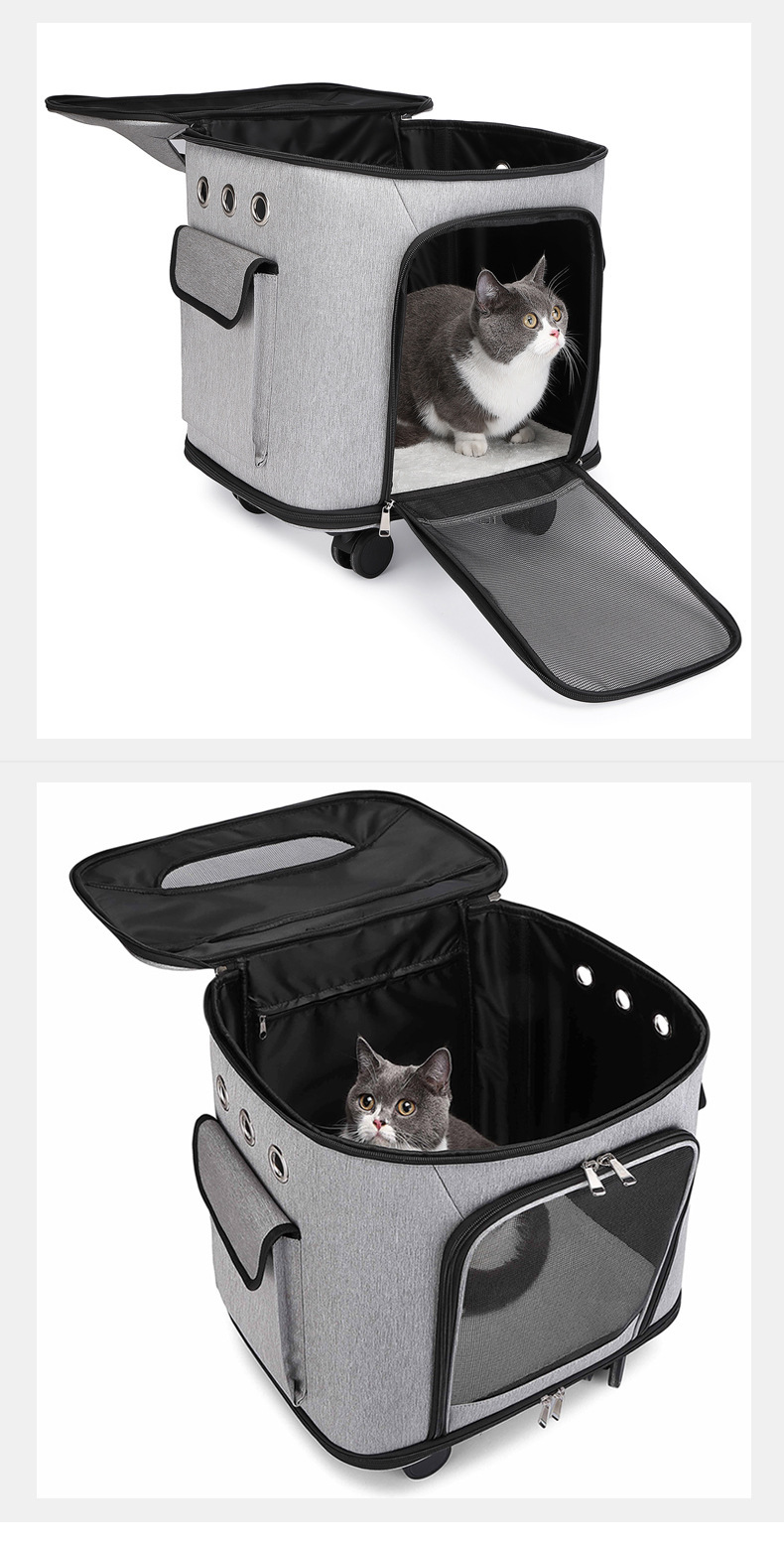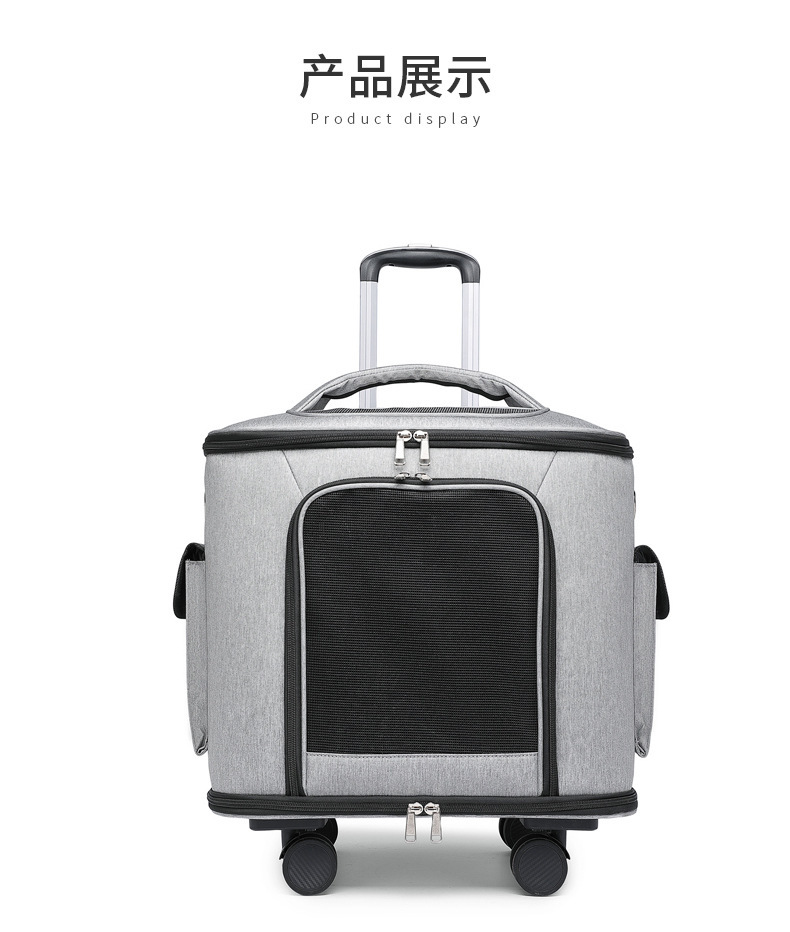 애완동물 가방, 고양이 가방, 외출 가방, 휴대용 대용량 무소음 휠 애완동물 트롤리 케이스, 휴대용 대형 고양이 및 개 가방
