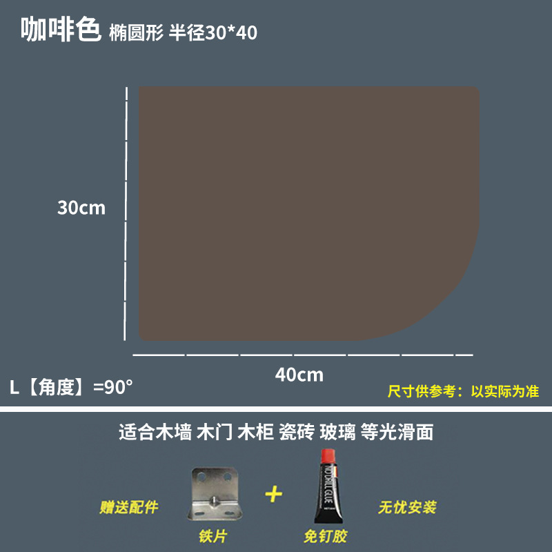 • 咖啡色 椭圆形 长25cm*宽40cm/1片装-赠送免钉胶 板厚1cm不分正反面