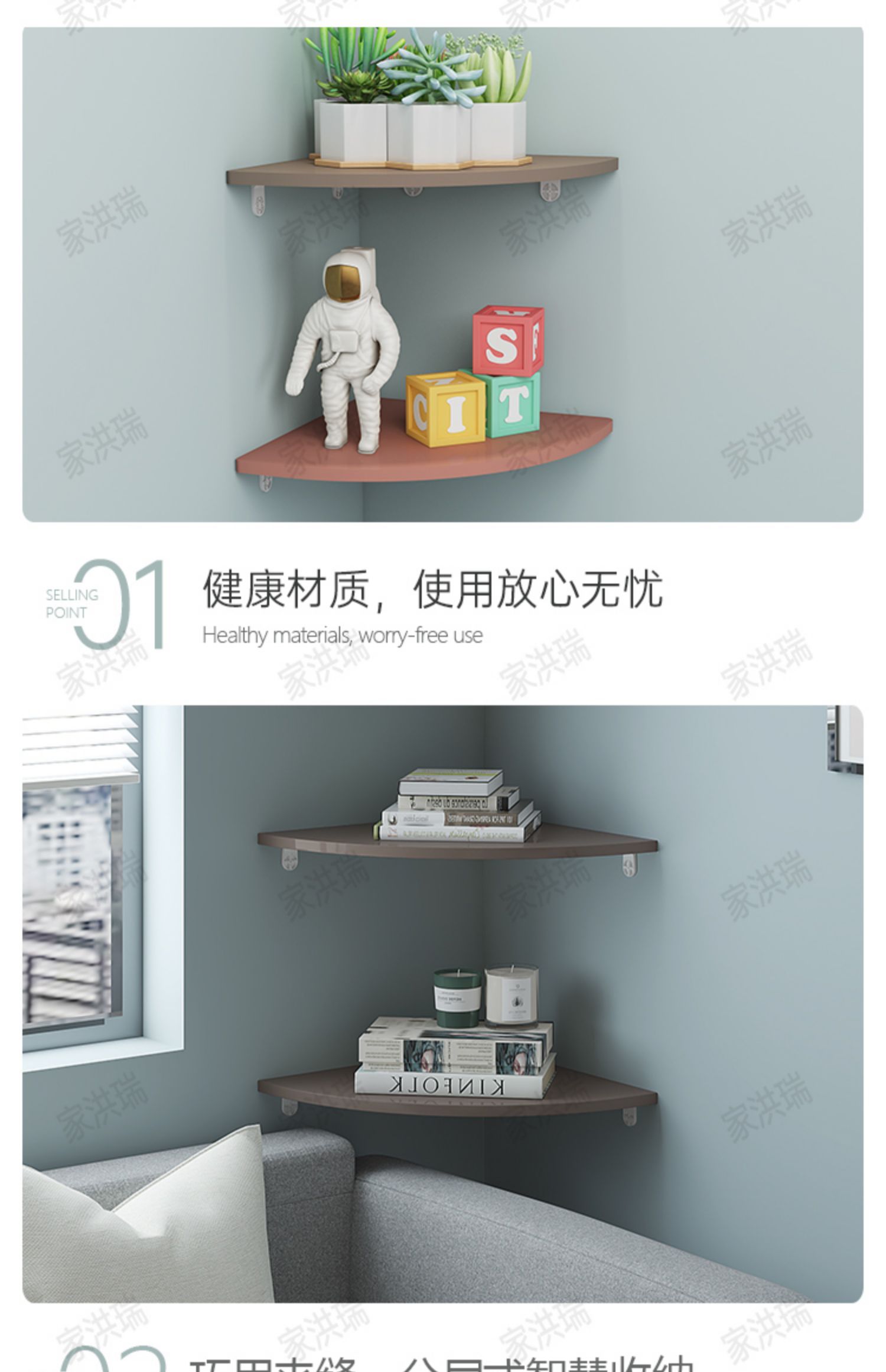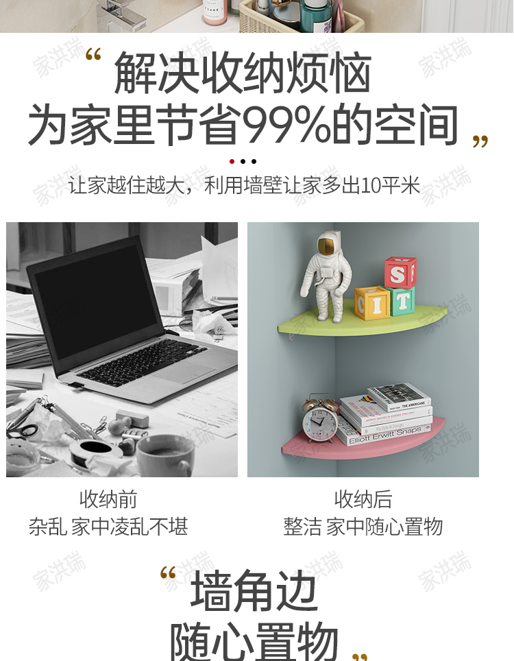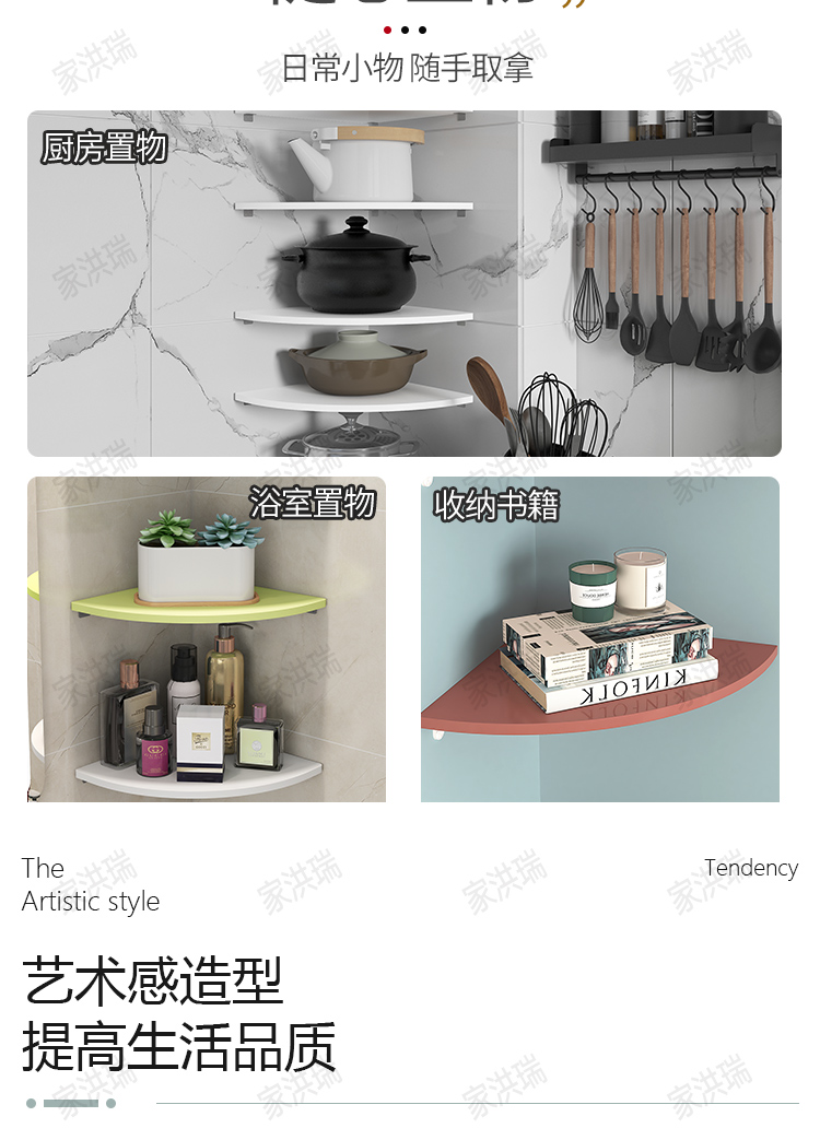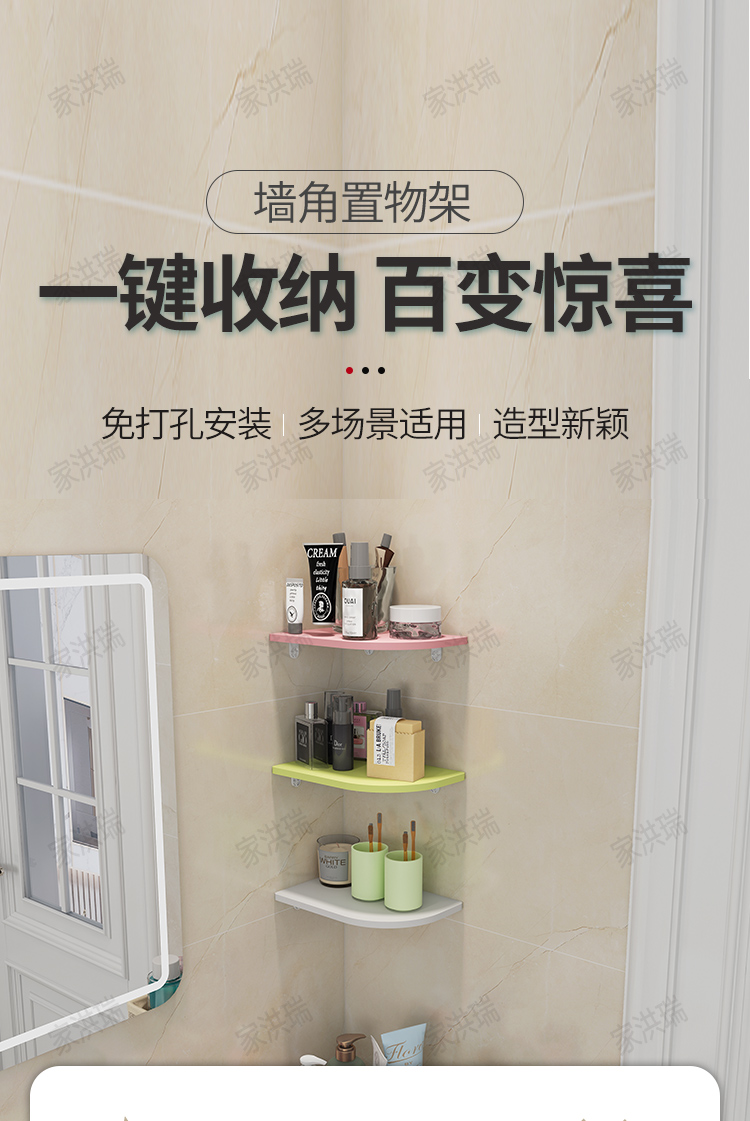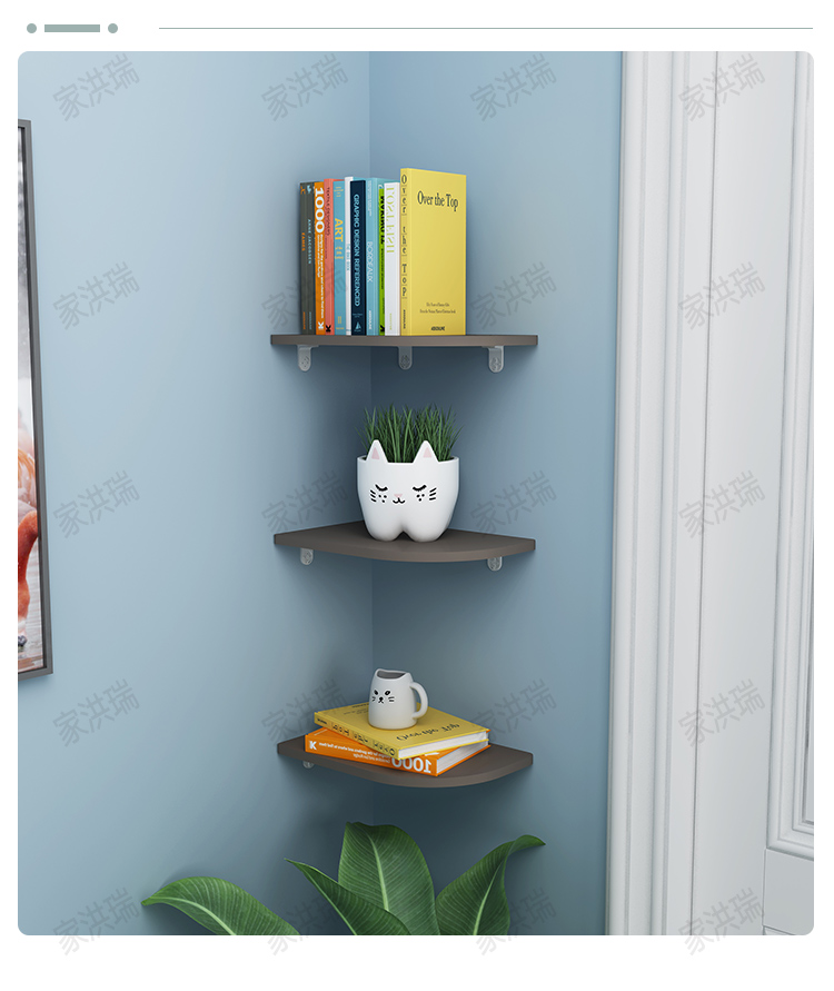 코너 벽 선반, 벽 책장, 침실 벽걸이, 펀치 없는 주방 삼각형 가정용 타원형 칸막이
