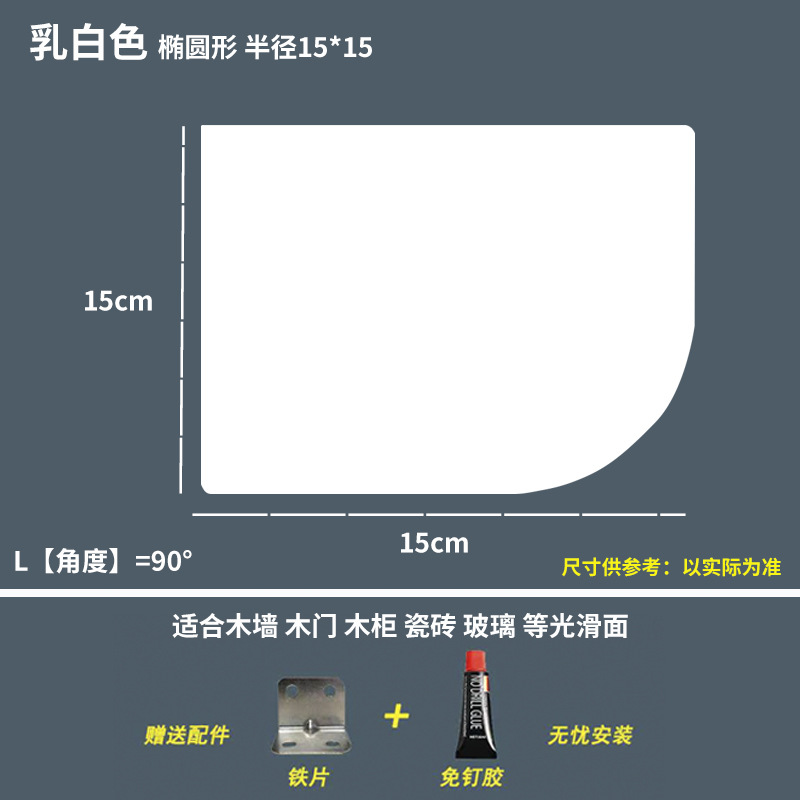 • 白色 椭圆形 长15cm*宽40cm/1片装-赠送免钉胶 板厚1cm不分正反面