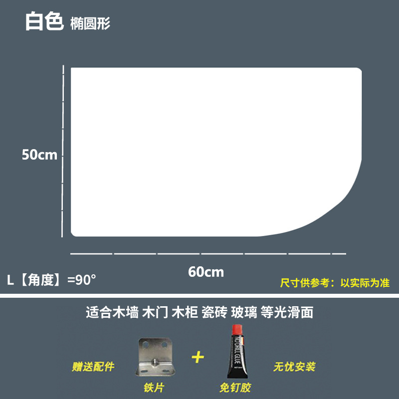 • 白色 椭圆形 长50cm*宽60cm/1片装-赠送无痕钉 板厚1cm不分正反面