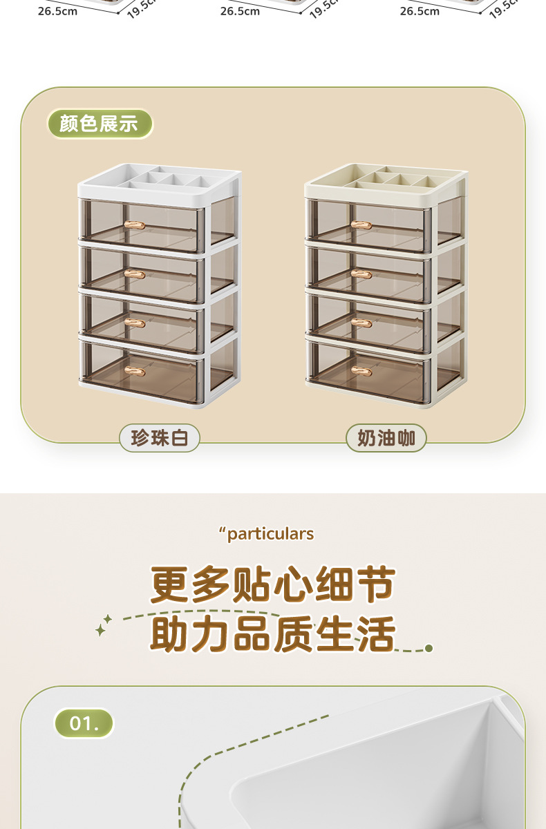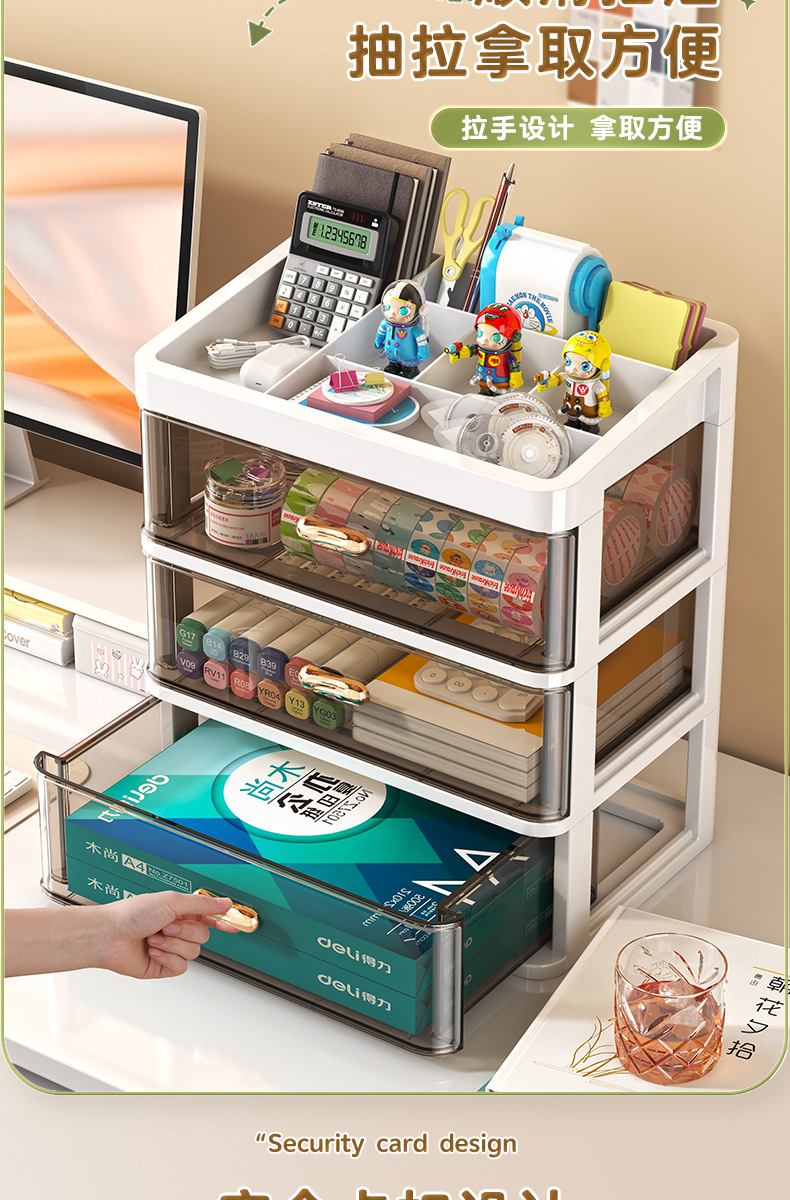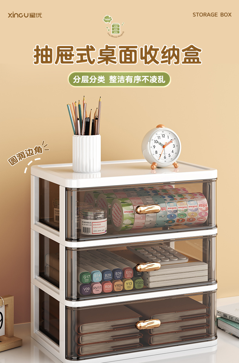 Qimeow 서랍형 데스크탑 수납함 사무실 책상 수납함 문구류 화장품 수납함 워크스테이션 정리함스토어 가기