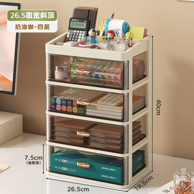 • 34.5면폭 - 크림커피 [경사상판 4단] A4용지 수납가능