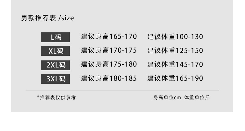 • 3XL 사이즈, 키 180-188CM, 체중 90-105kg