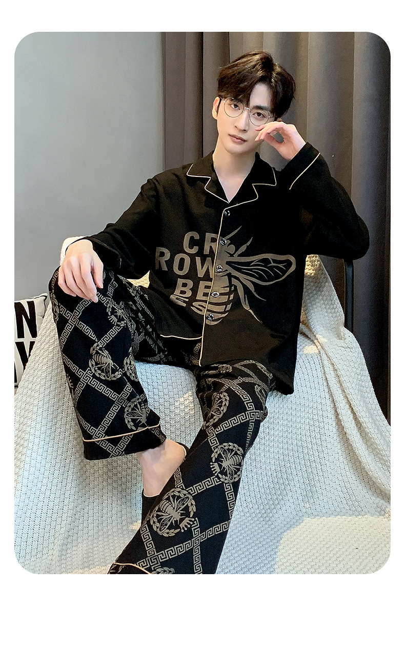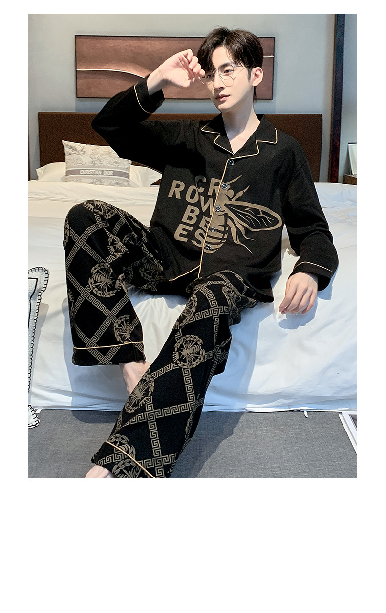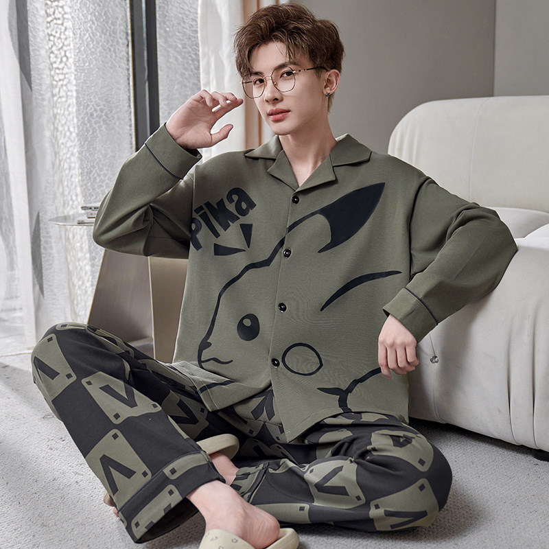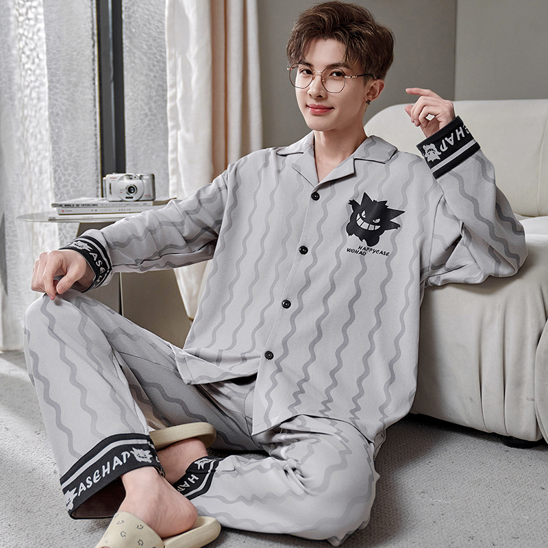 봄, 가을 남성용 잠옷, 긴팔 바지, 순면 가디건 슈트, 면 100% 버튼 홈복, 야외에서 착용 가능