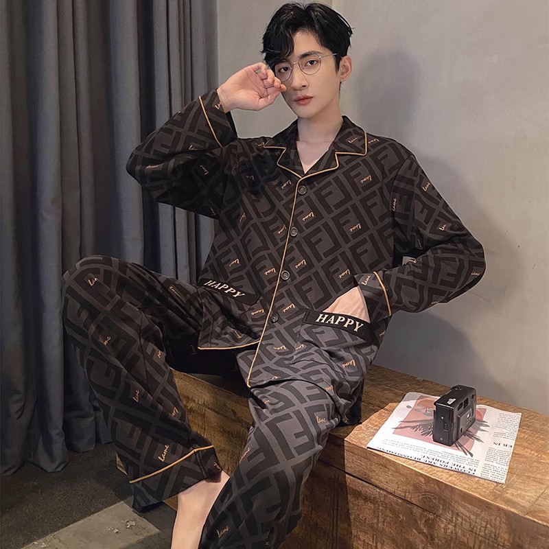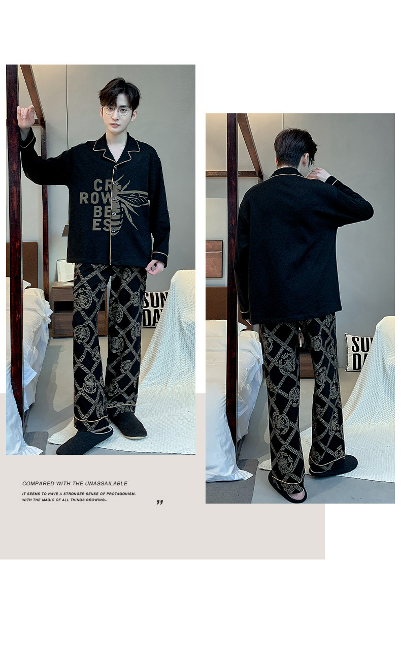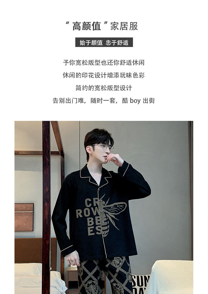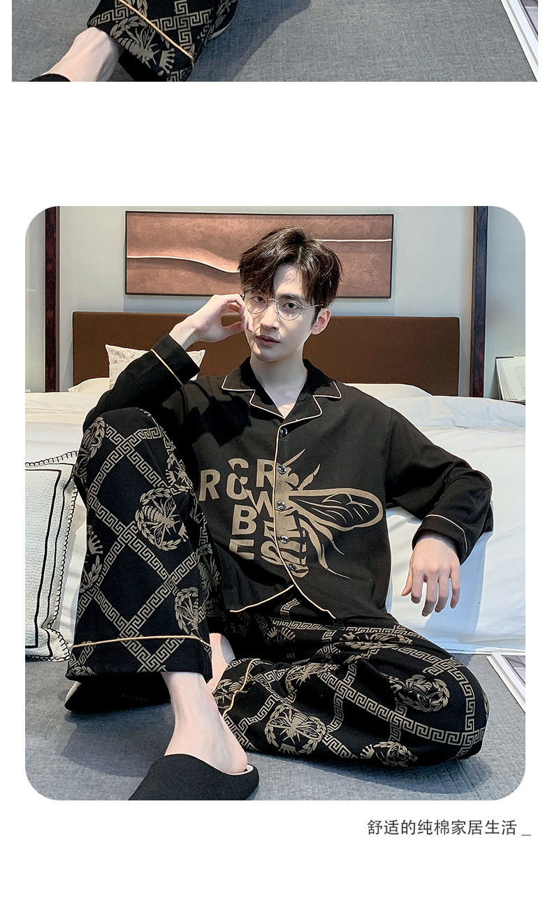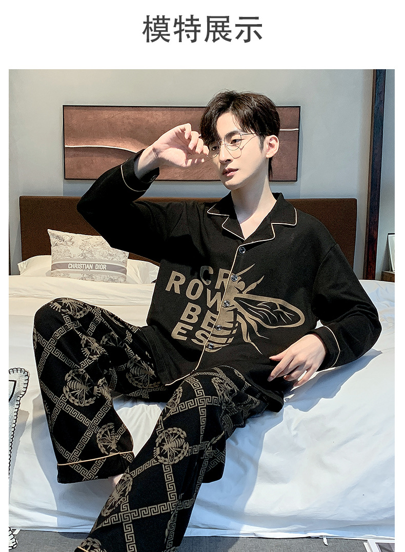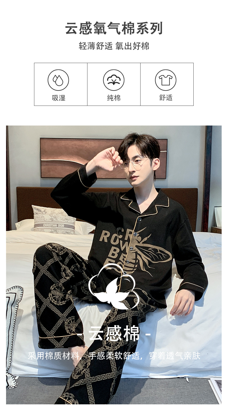 봄, 가을 남성용 잠옷, 긴팔 바지, 순면 가디건 슈트, 면 100% 버튼 홈복, 야외에서 착용 가능스토어 가기
