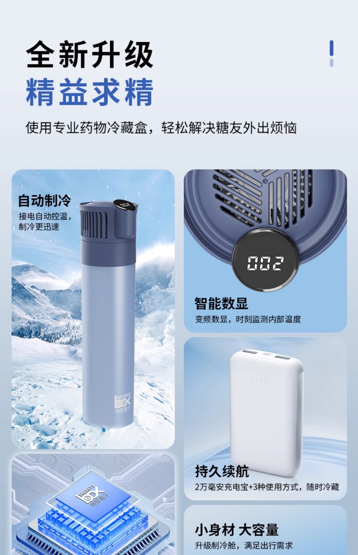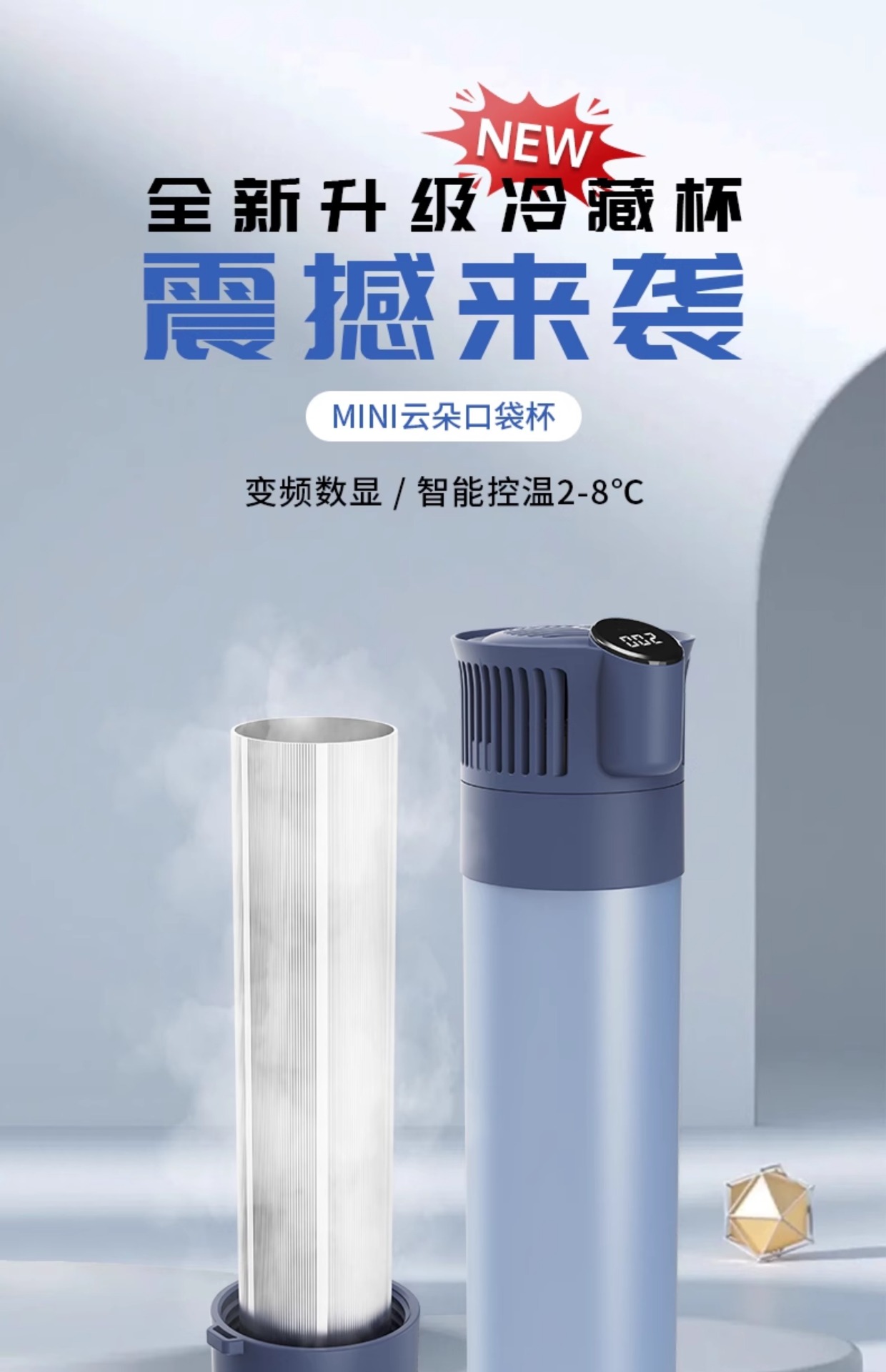 • 주파수 변환 디지털 디스플레이 냉동 버전 + 컵 커버 + 보조베터리