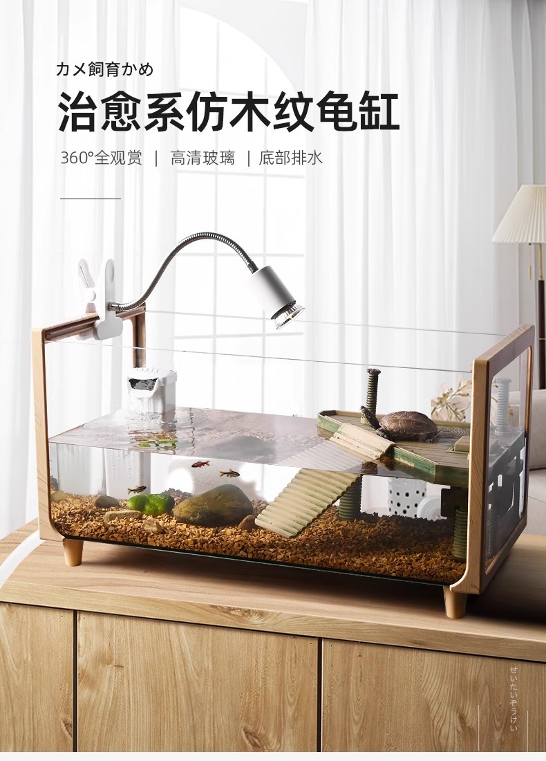 태양광 플랫폼이 있는 거북이 수조, 빌라 홈 거실, 생태 조경 수륙 유리 수조, 브라질 거북이를 위한 특수 수조