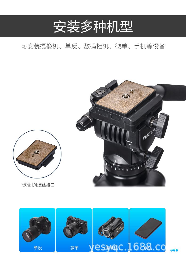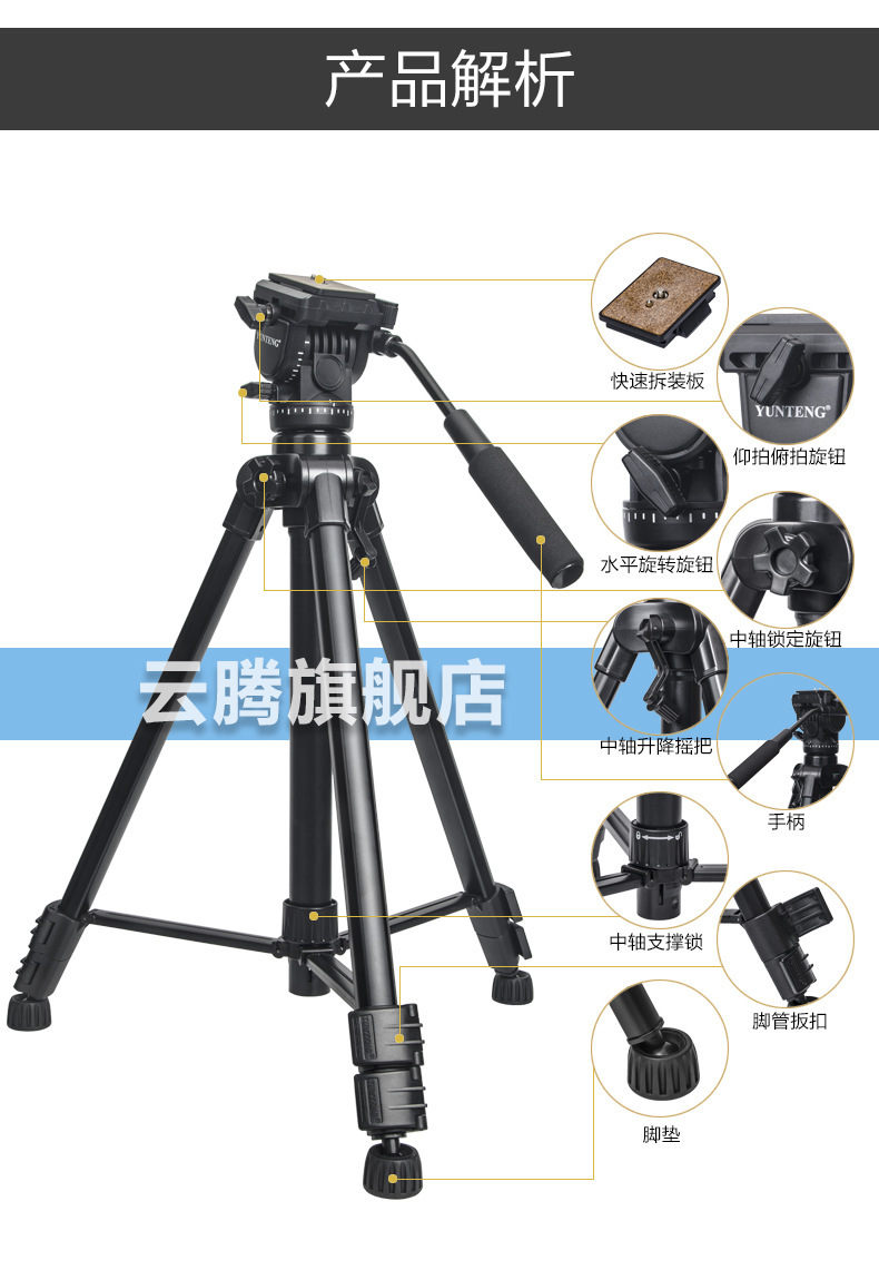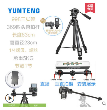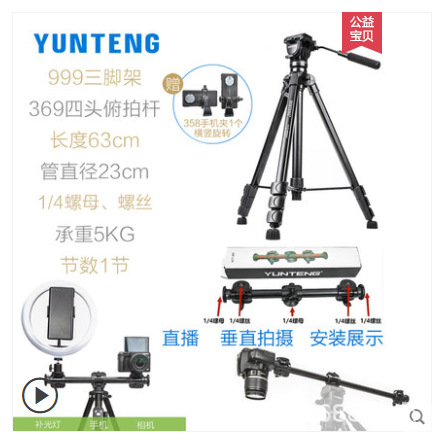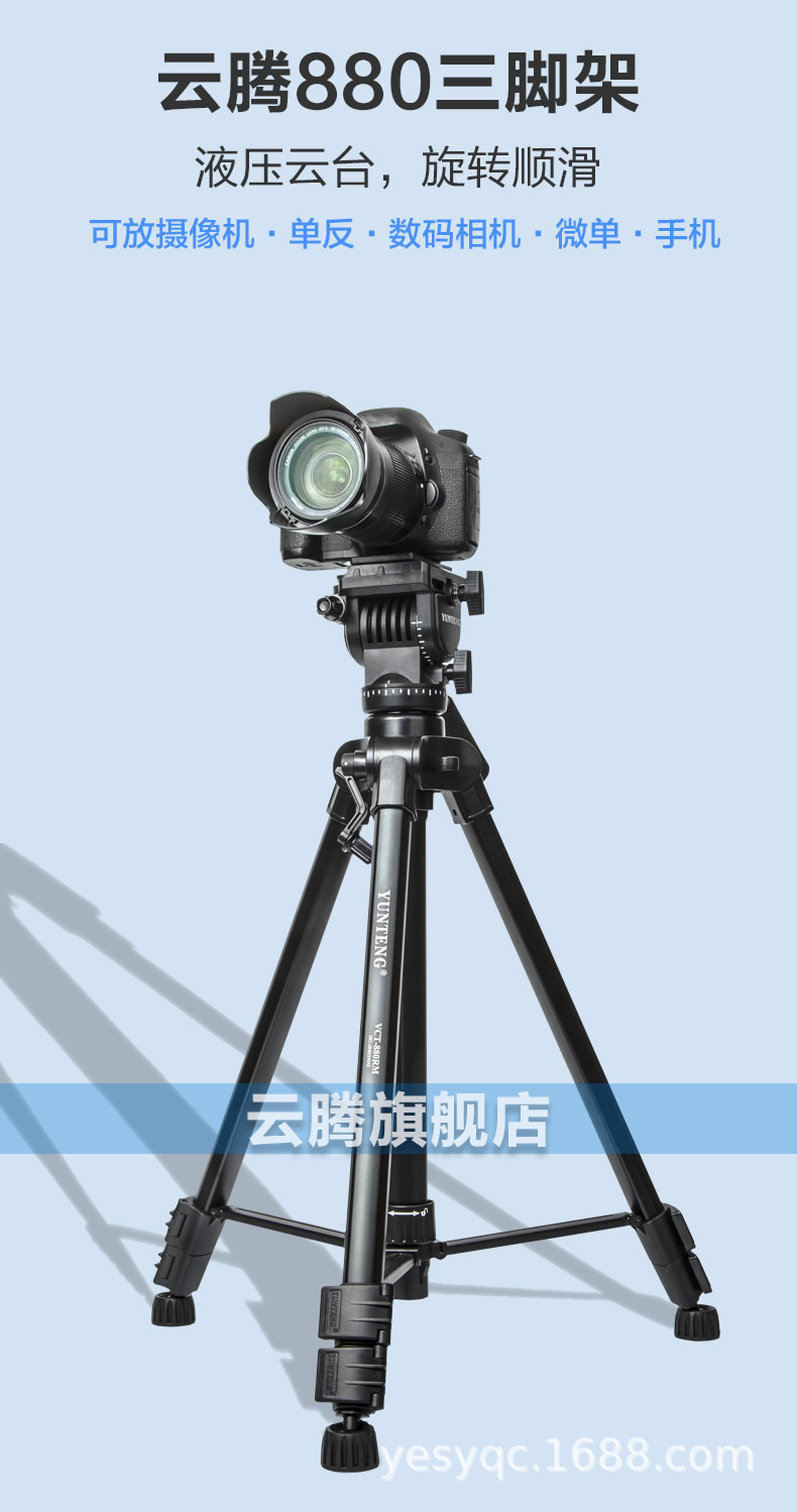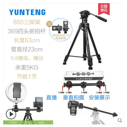 Yunteng 880 SLR 삼각대 전문 유압 댐핑 헤드 수직 촬영 수직 사진 카메라 삼각대스토어 가기