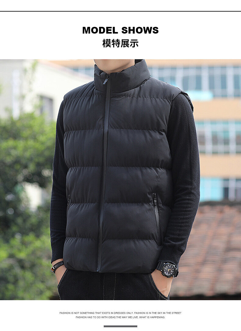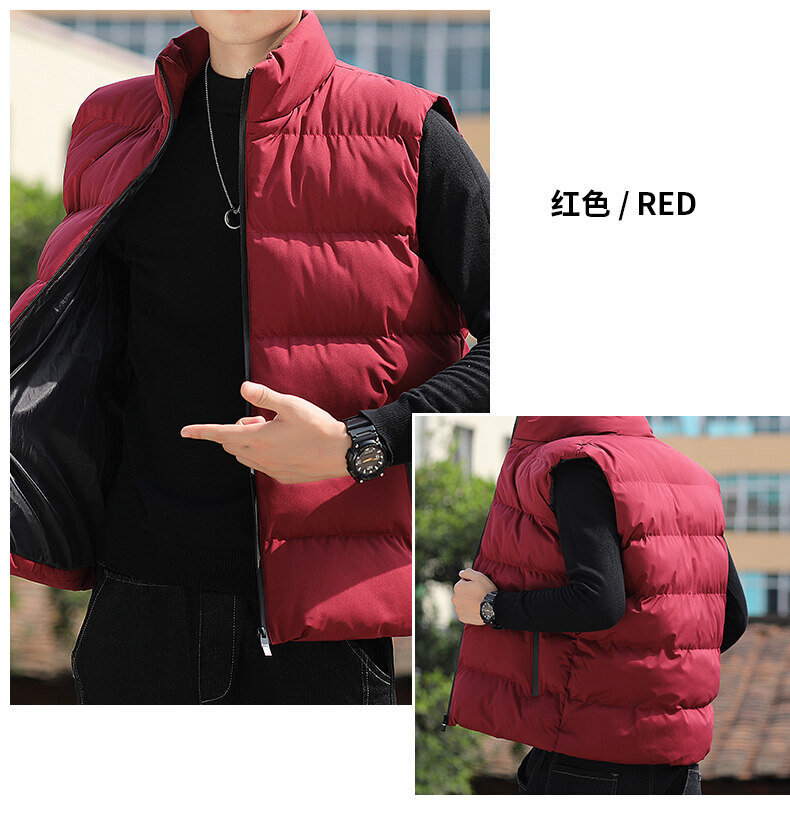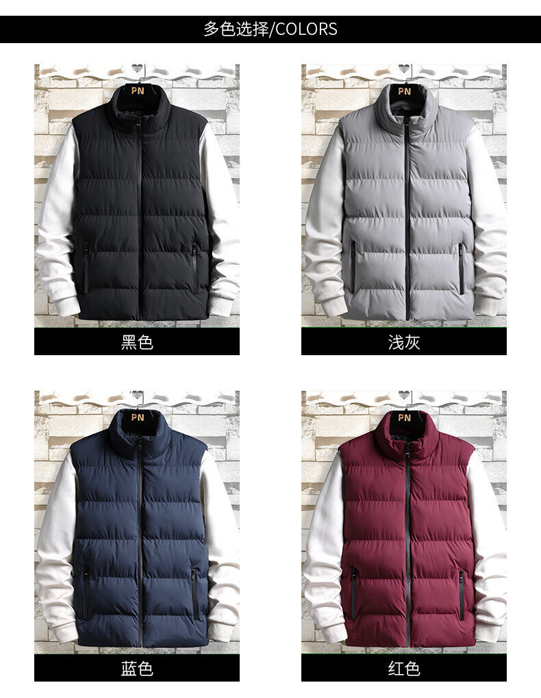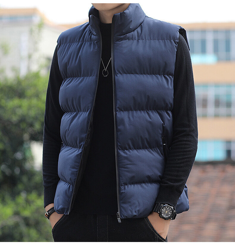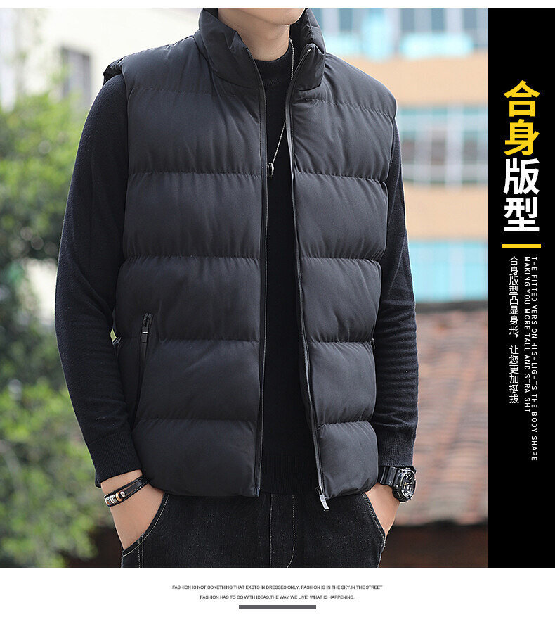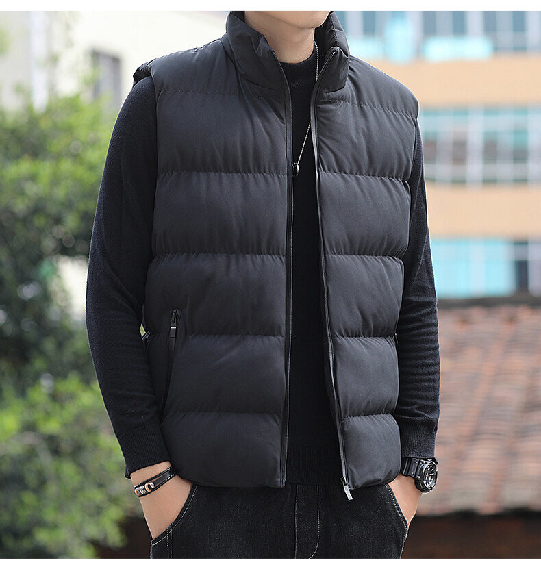 대외 무역 가을, 겨울 대형 스탠드 칼라 조끼 남성용 경량 따뜻한 민소매 면화 의류 남성용 양복 조끼 조끼스토어 가기