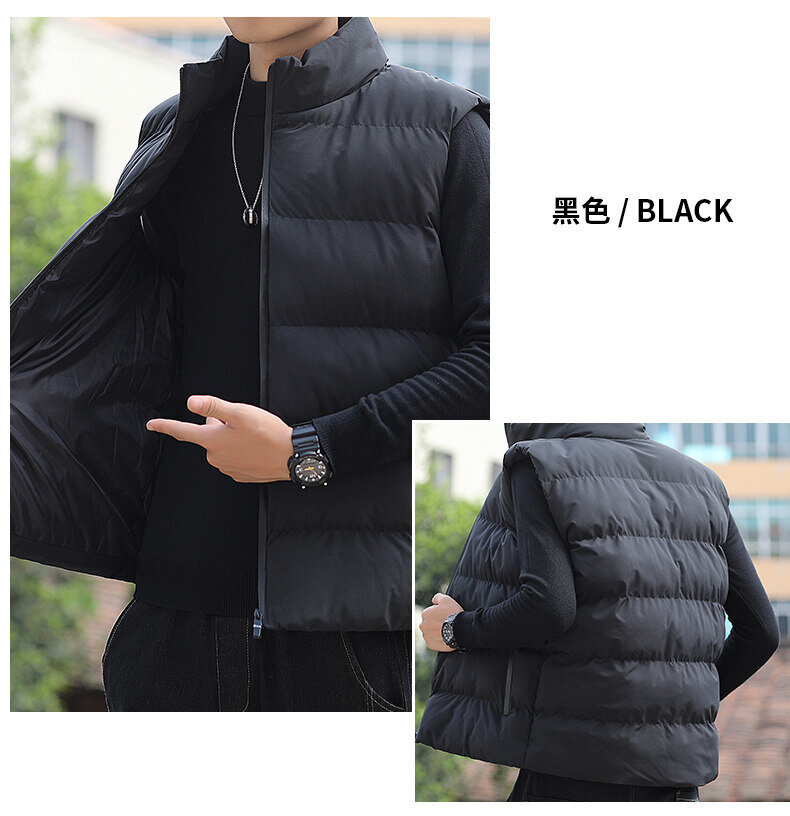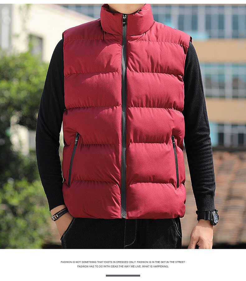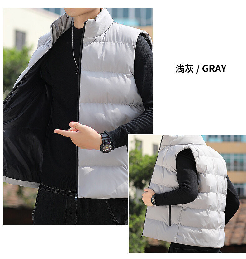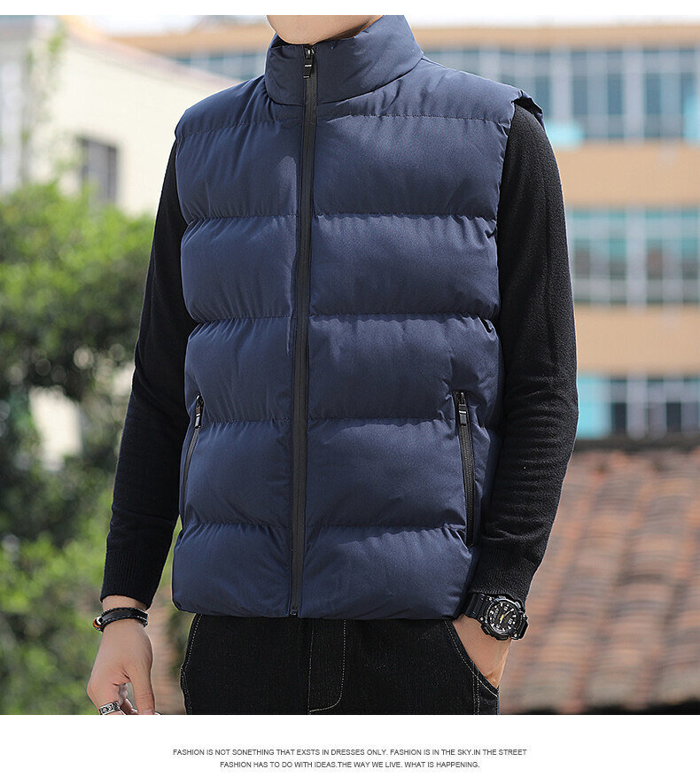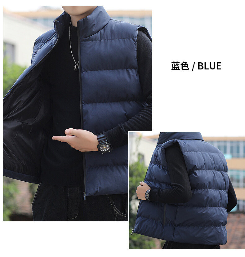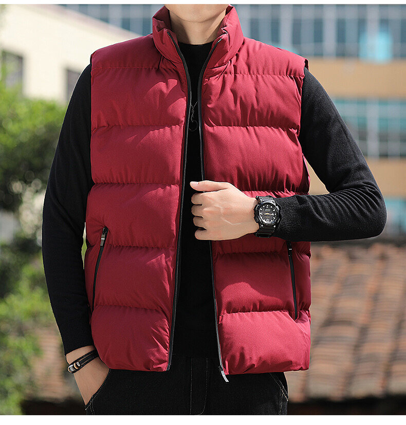 대외 무역 가을, 겨울 대형 스탠드 칼라 조끼 남성용 경량 따뜻한 민소매 면화 의류 남성용 양복 조끼 조끼스토어 가기