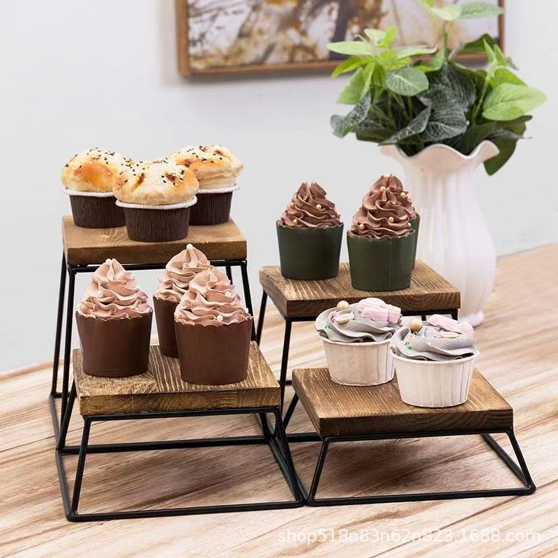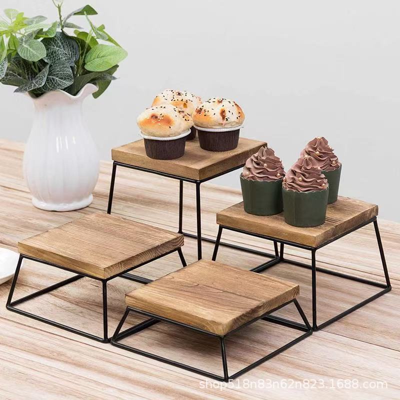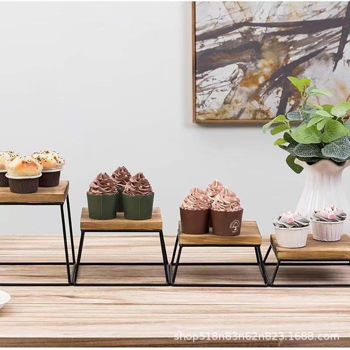 맞춤형 컵케이크 디저트 스탠드 나무 사각형 테이블탑 스탠드 스낵 및 페이스트리 디스플레이 스탠드 철제 수납 스탠드스토어 가기