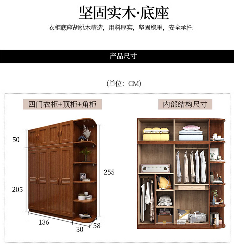 골드 월넛 원목 옷장 침실 양문형 대용량 수납 옷장