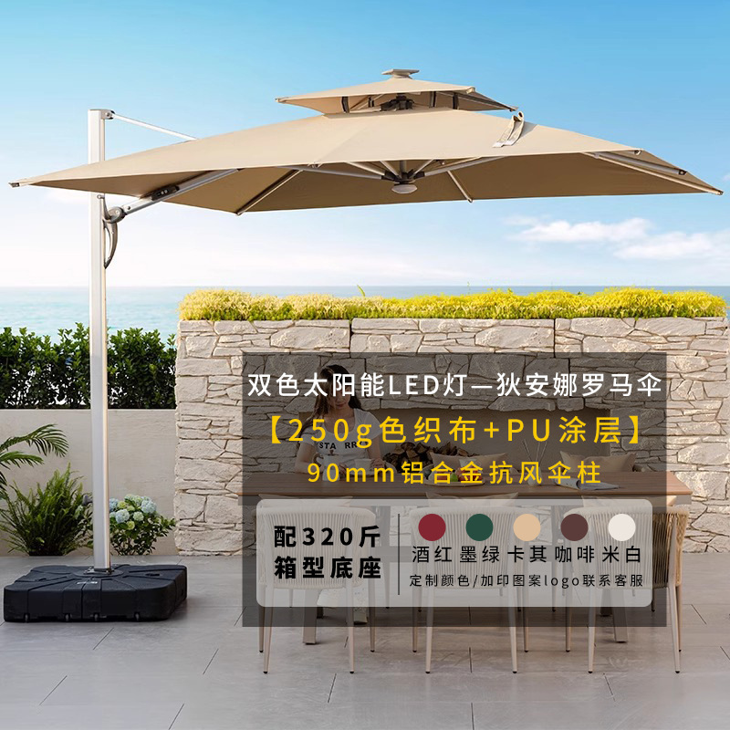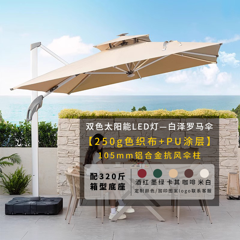 • [2색 태양광] Baize Roman Umbrella - 105mm 알루미늄 합금 우산봉, 160kg 박스 베이스 포함