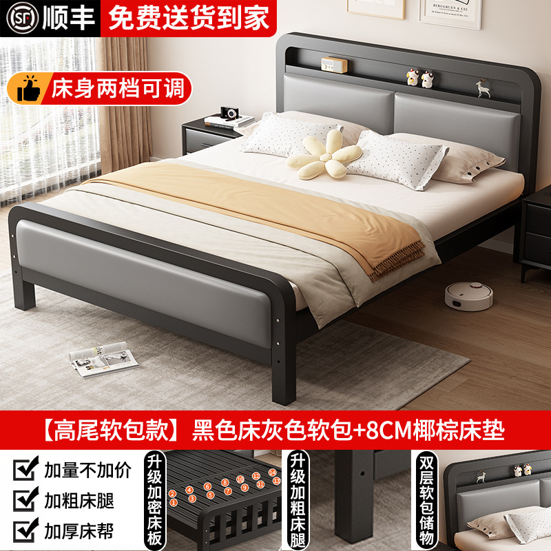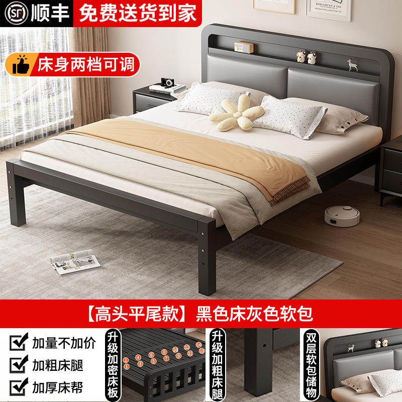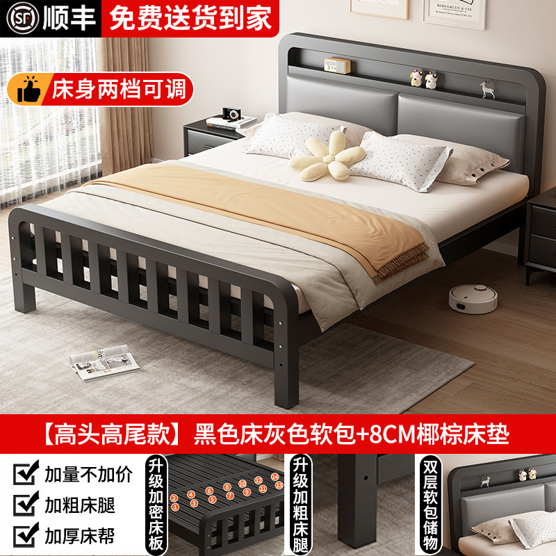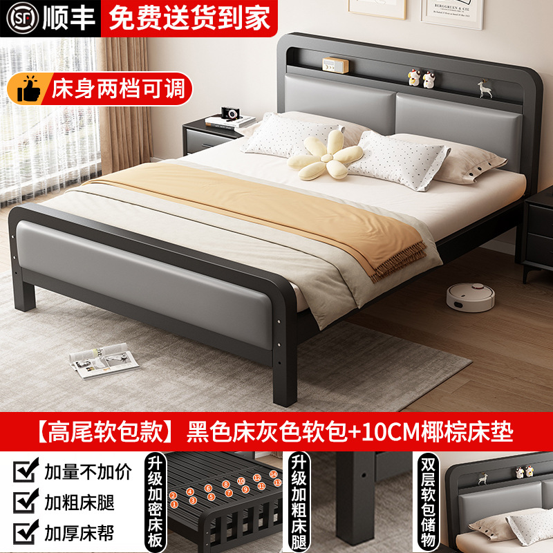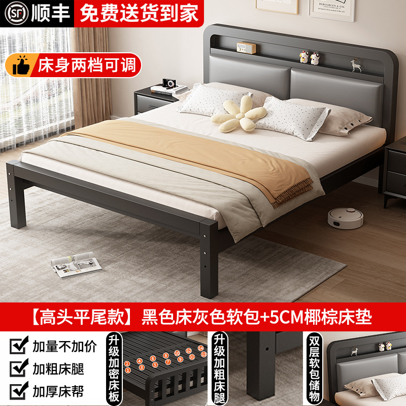 가정용 1.8m 철제 침대 더블 침대 두껍고 강화된 스테인레스 스틸 임대용 싱글 침대 프레임 철제 프레임 침대스토어 가기