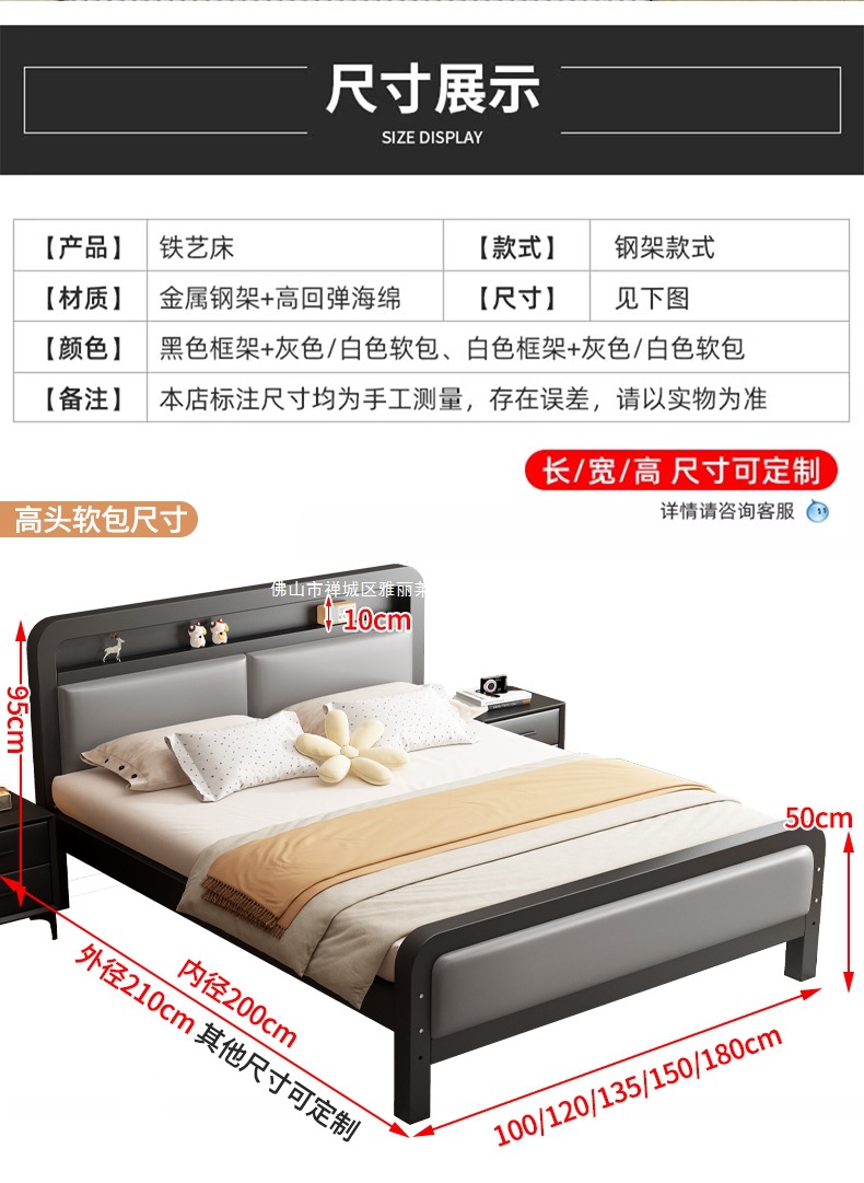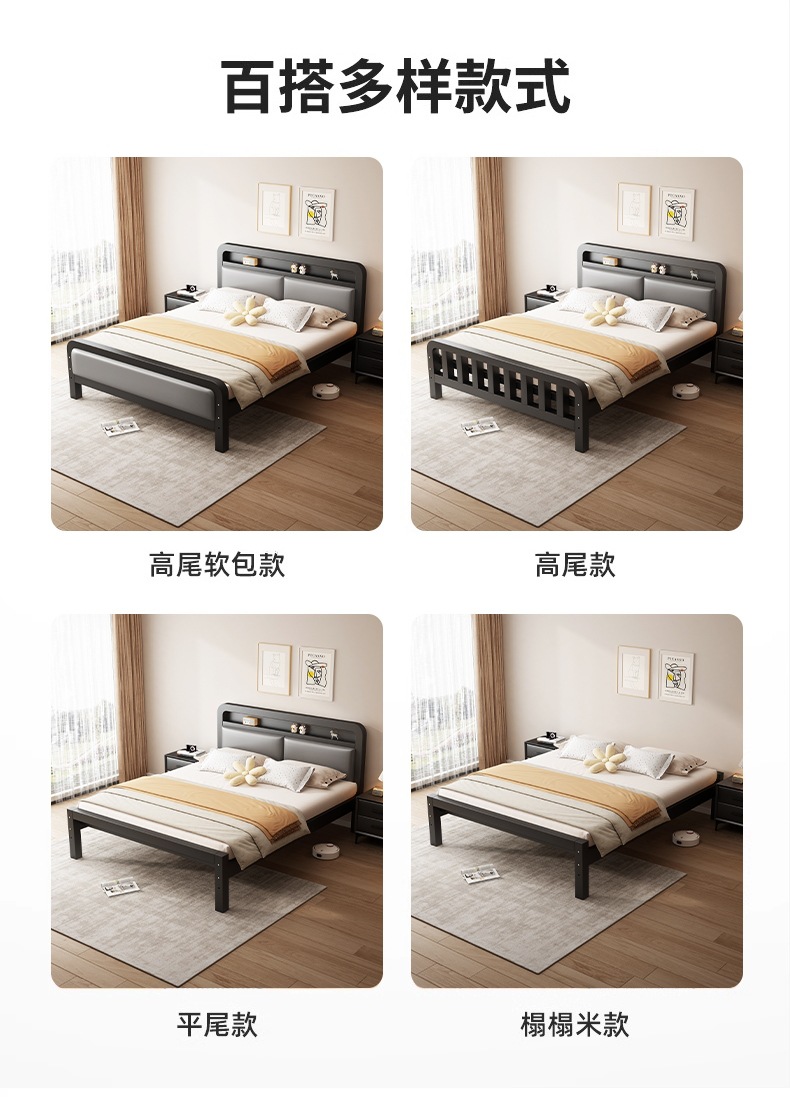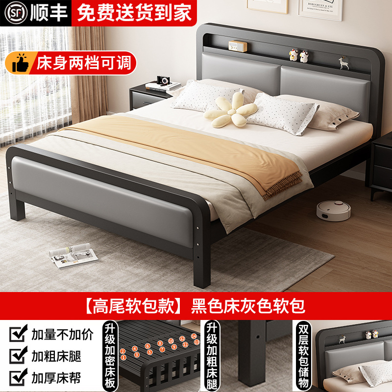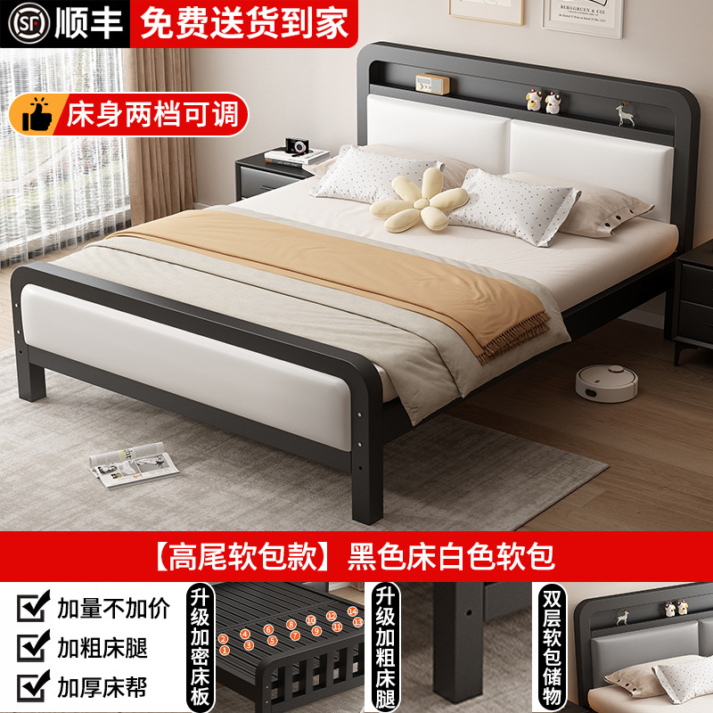 가정용 1.8m 철제 침대 더블 침대 두껍고 강화된 스테인레스 스틸 임대용 싱글 침대 프레임 철제 프레임 침대스토어 가기