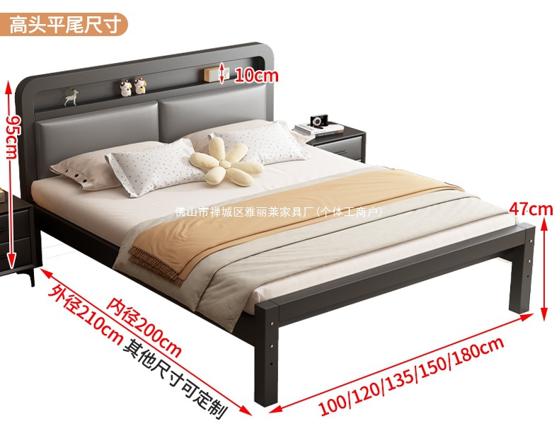 가정용 1.8m 철제 침대 더블 침대 두껍고 강화된 스테인레스 스틸 임대용 싱글 침대 프레임 철제 프레임 침대