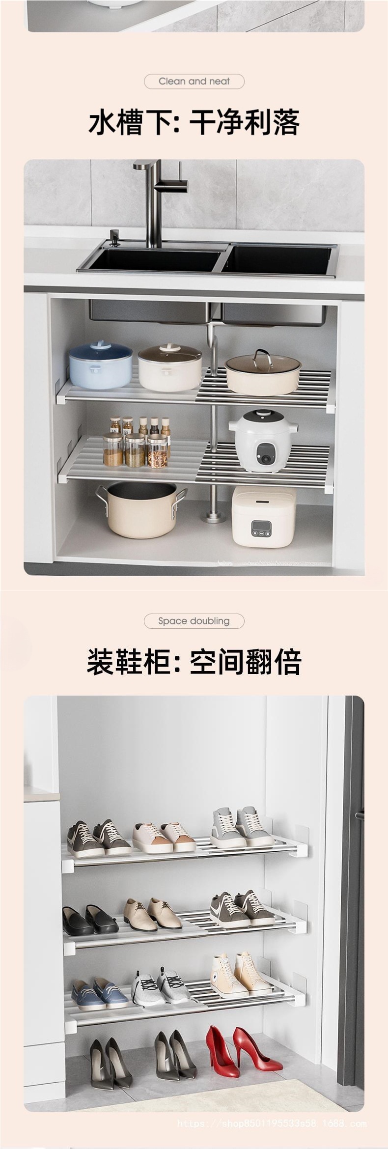 옷장 계층화 된 선반 캐비닛 펀치없는 싱크 아래 스테인레스 스틸 텔레스코픽 스토리지 랙 기숙사 캐비닛 신발 캐비닛 계층화