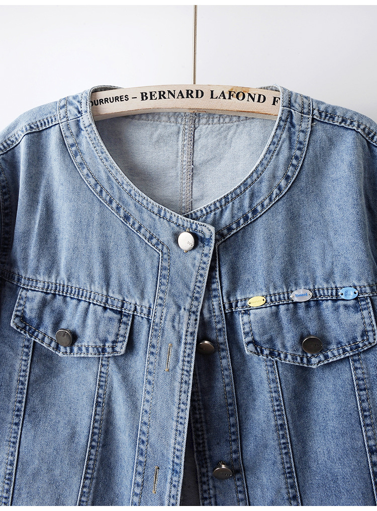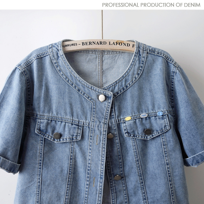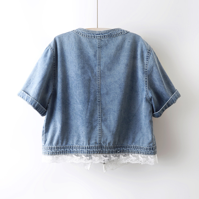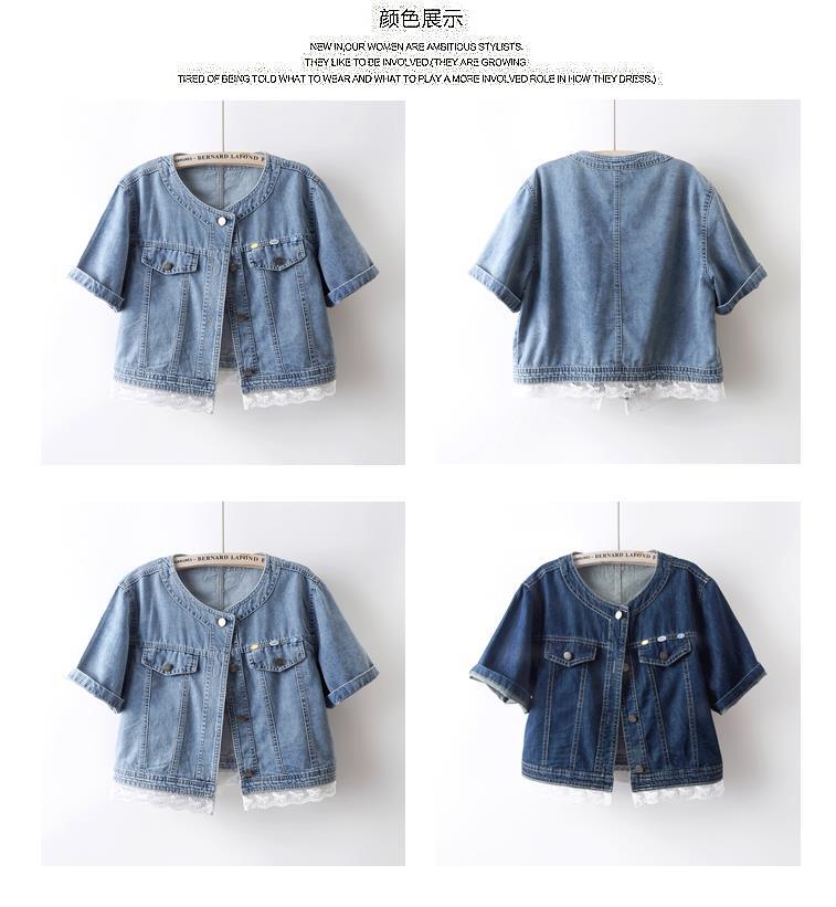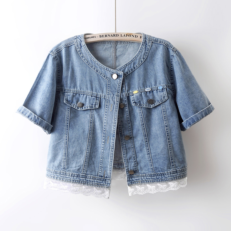 2025 여름 새 스타일 레이스 라운드 넥 반팔 데님 자켓 여성 짧은 쁘띠 탑 자켓 얇은스토어 가기