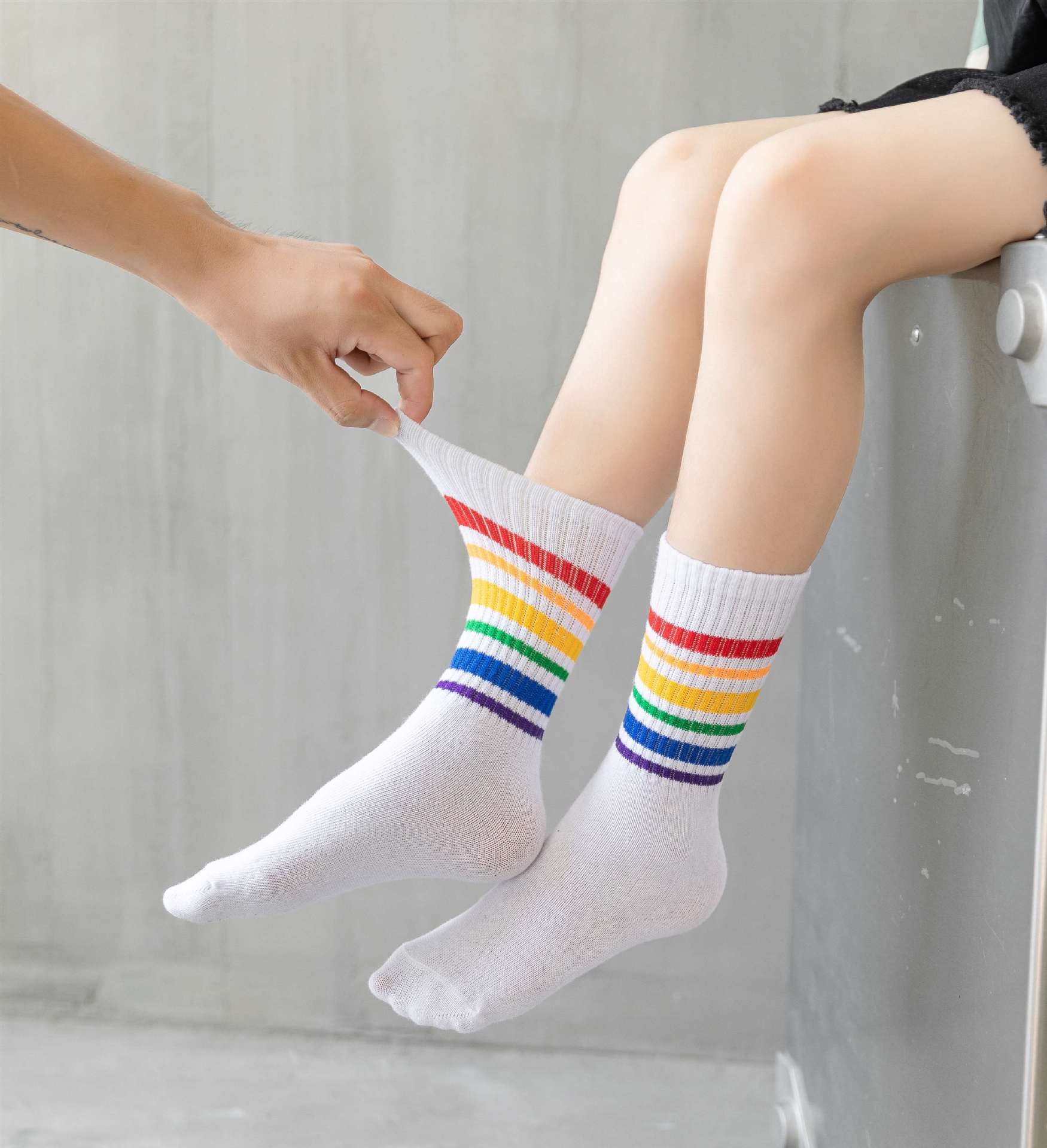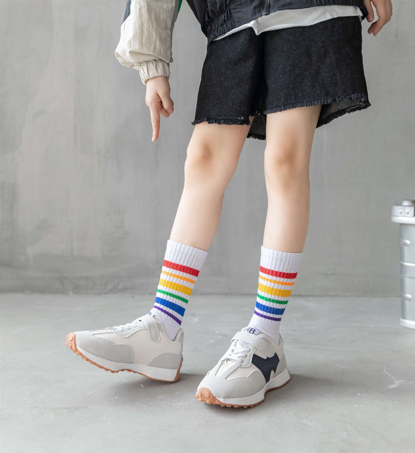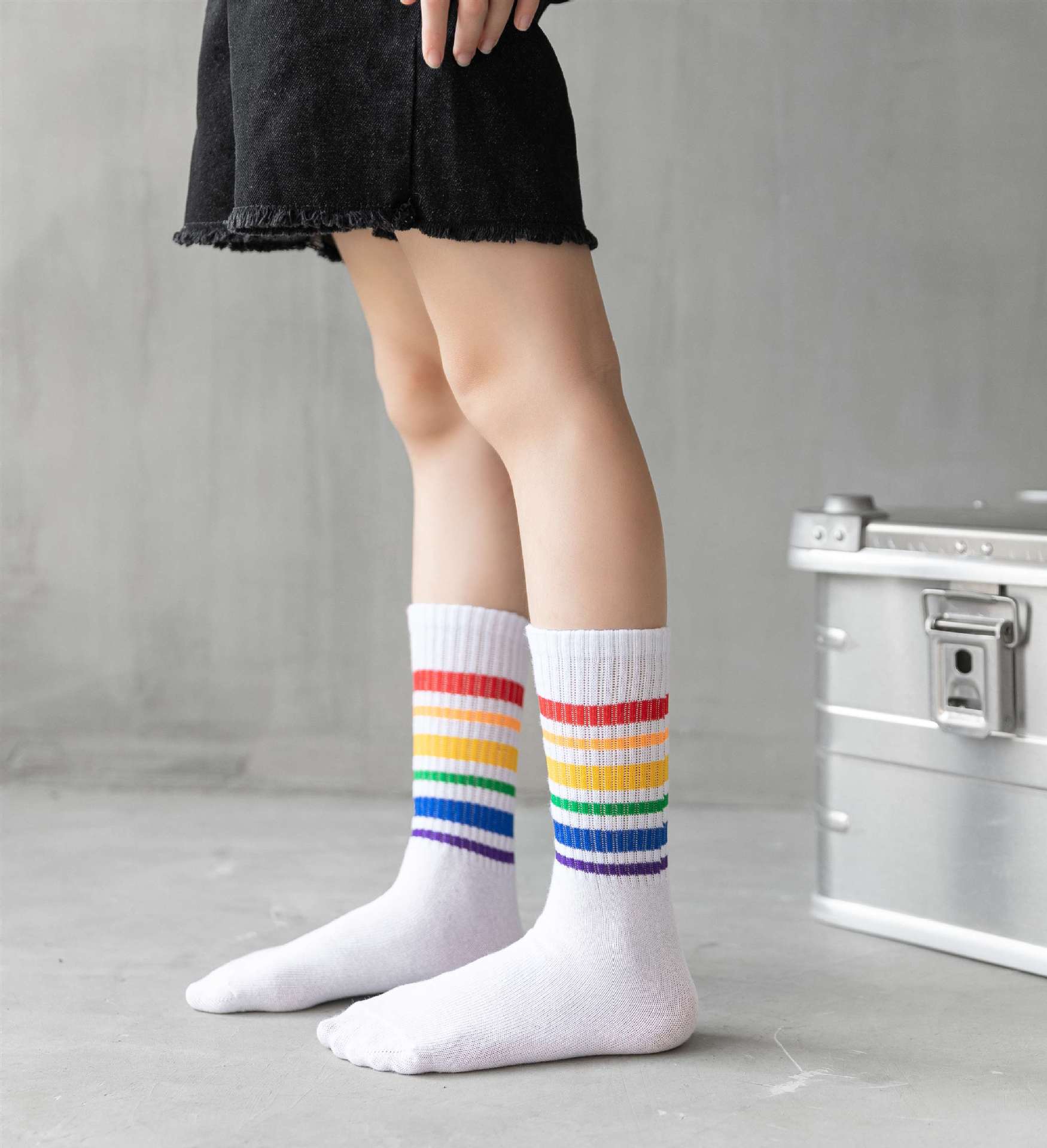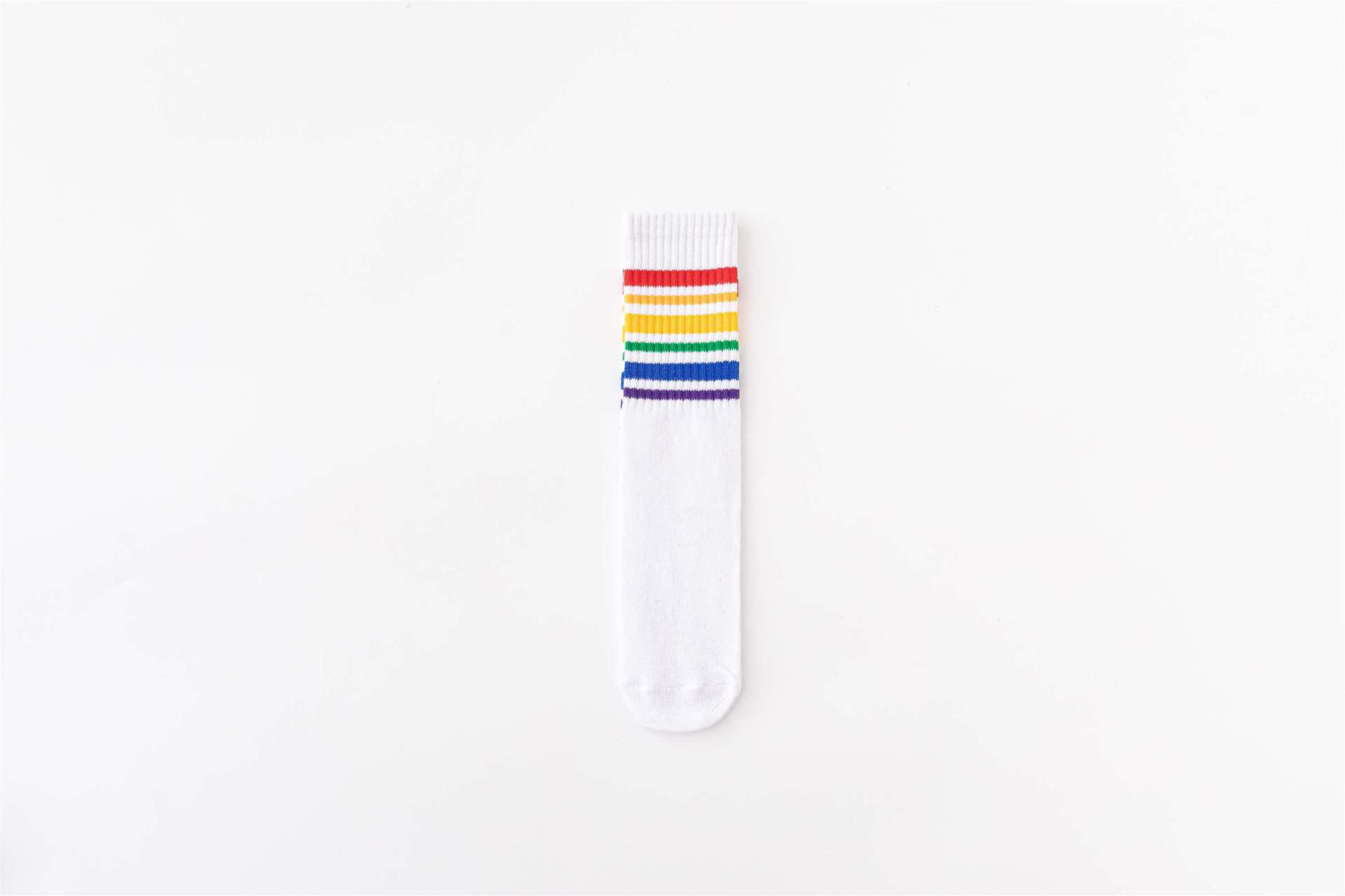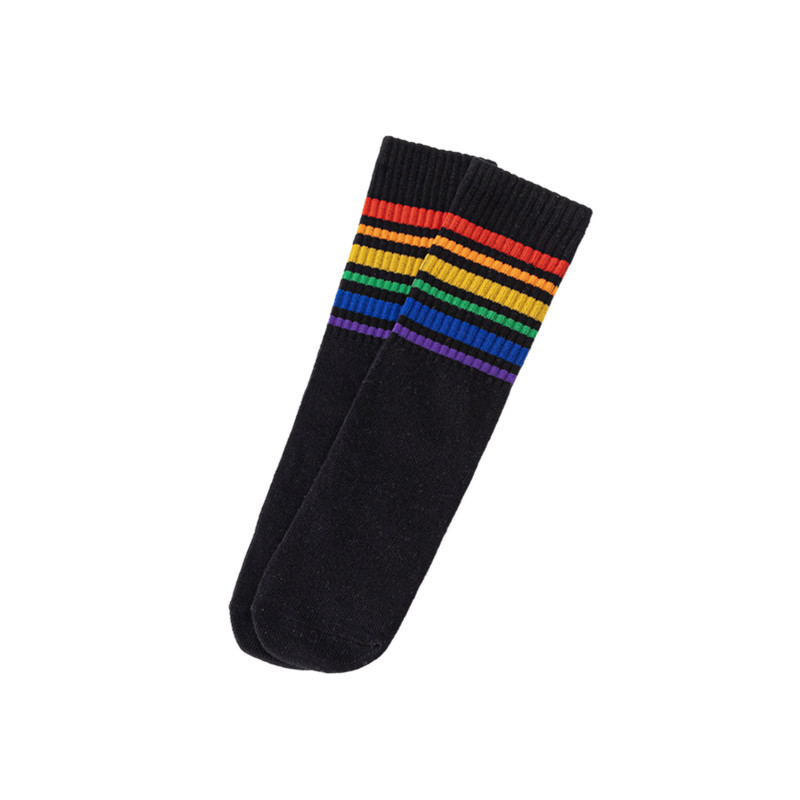 무지개 양말 중간 길이 양말 봄과 가을 소년과 소녀 중소형 어린이 학생 줄무늬 스포츠 면 양말