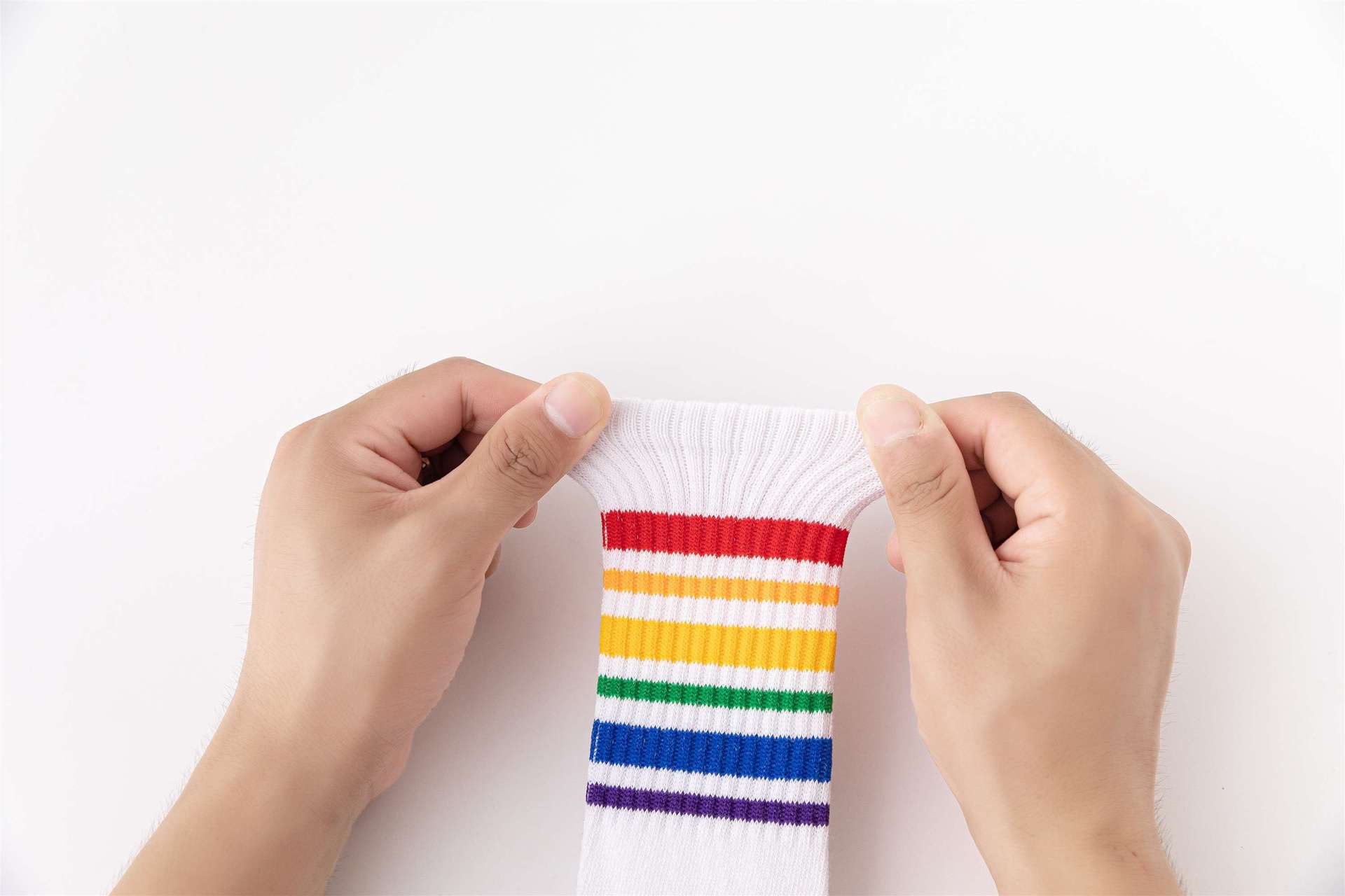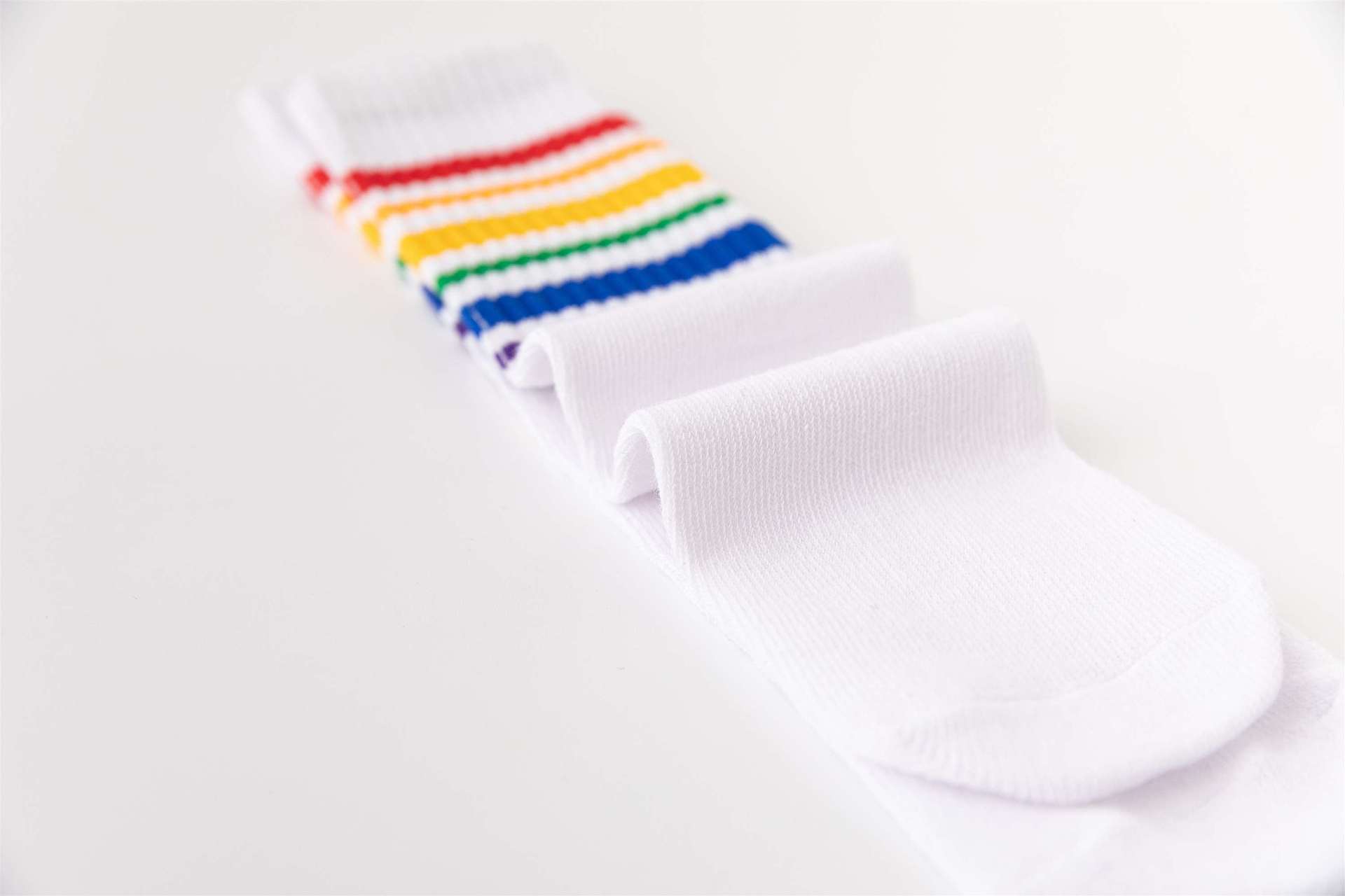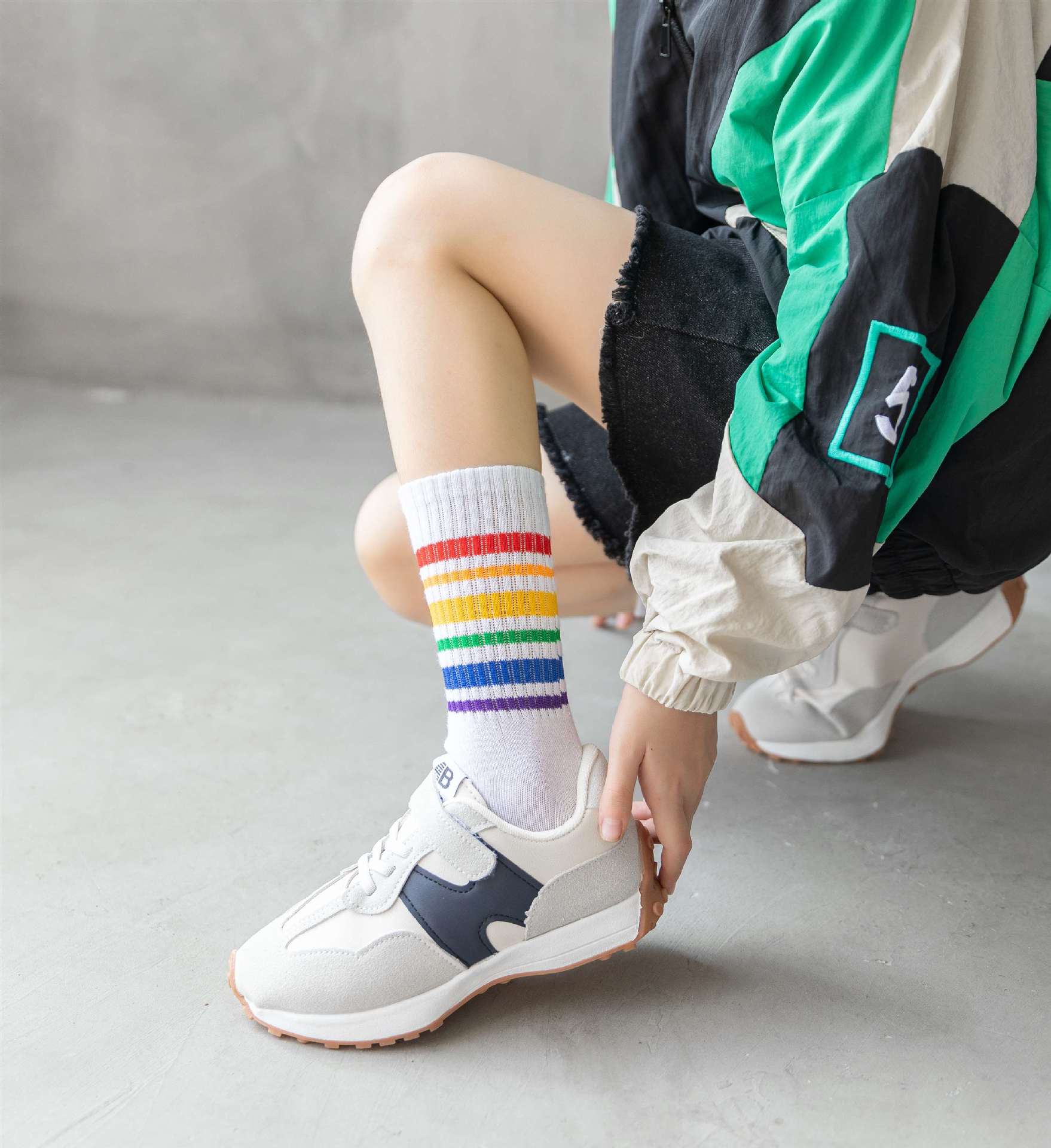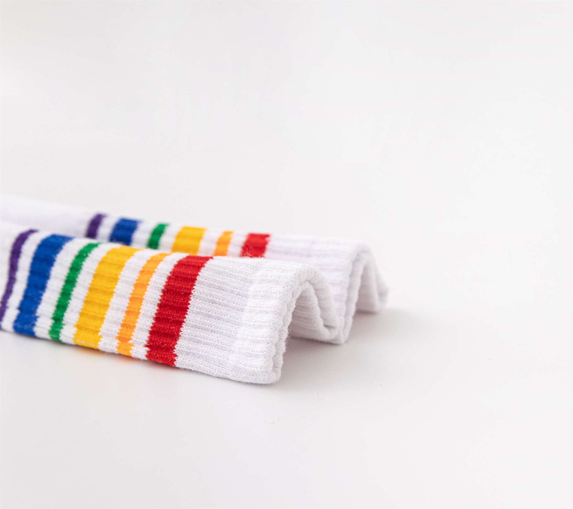 무지개 양말 중간 길이 양말 봄과 가을 소년과 소녀 중소형 어린이 학생 줄무늬 스포츠 면 양말