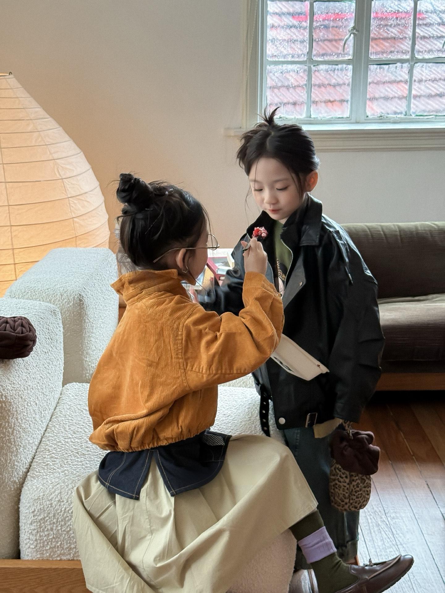 여아 가을 신작 25 한국 스타일 오토바이 가죽 자켓 어린이용 miu 심플 패셔너블 캐주얼 와이드 자켓스토어 가기