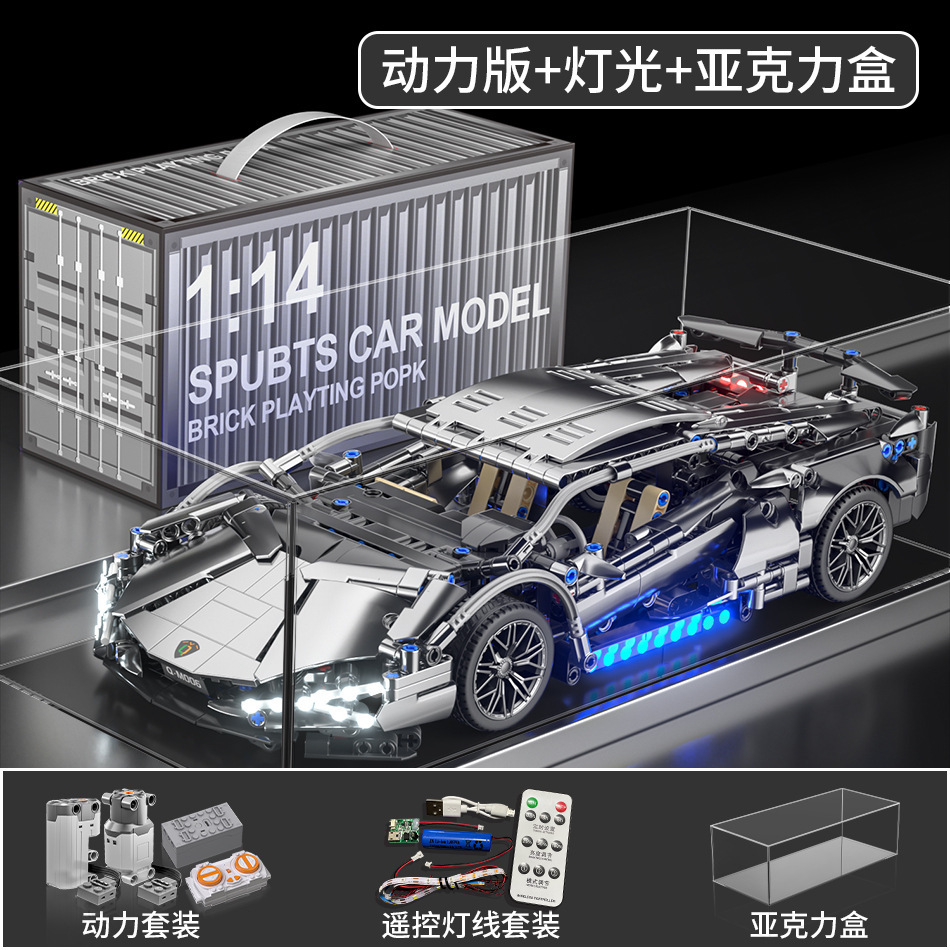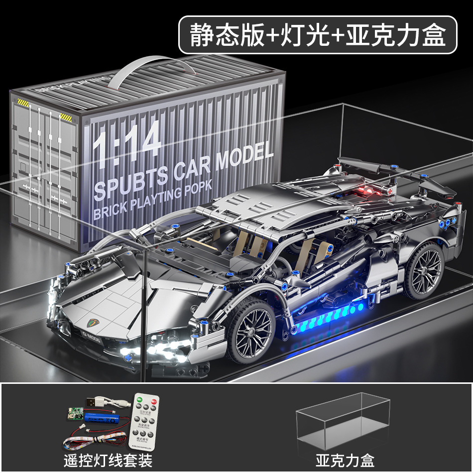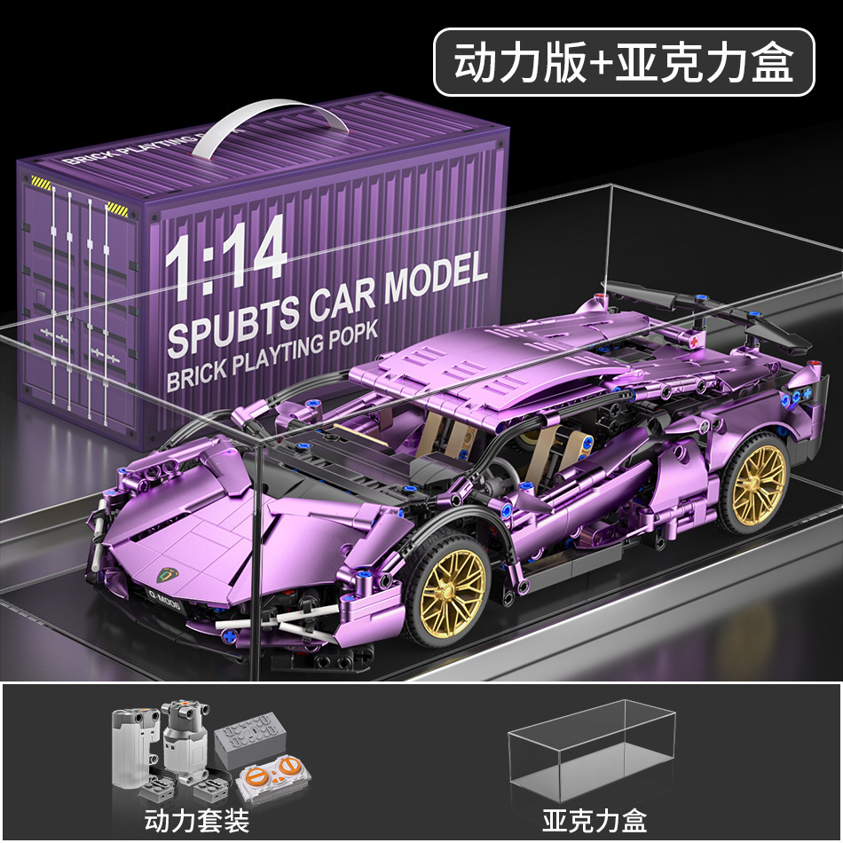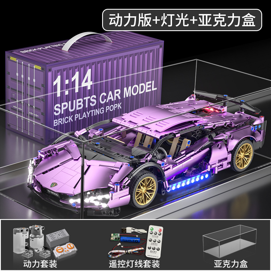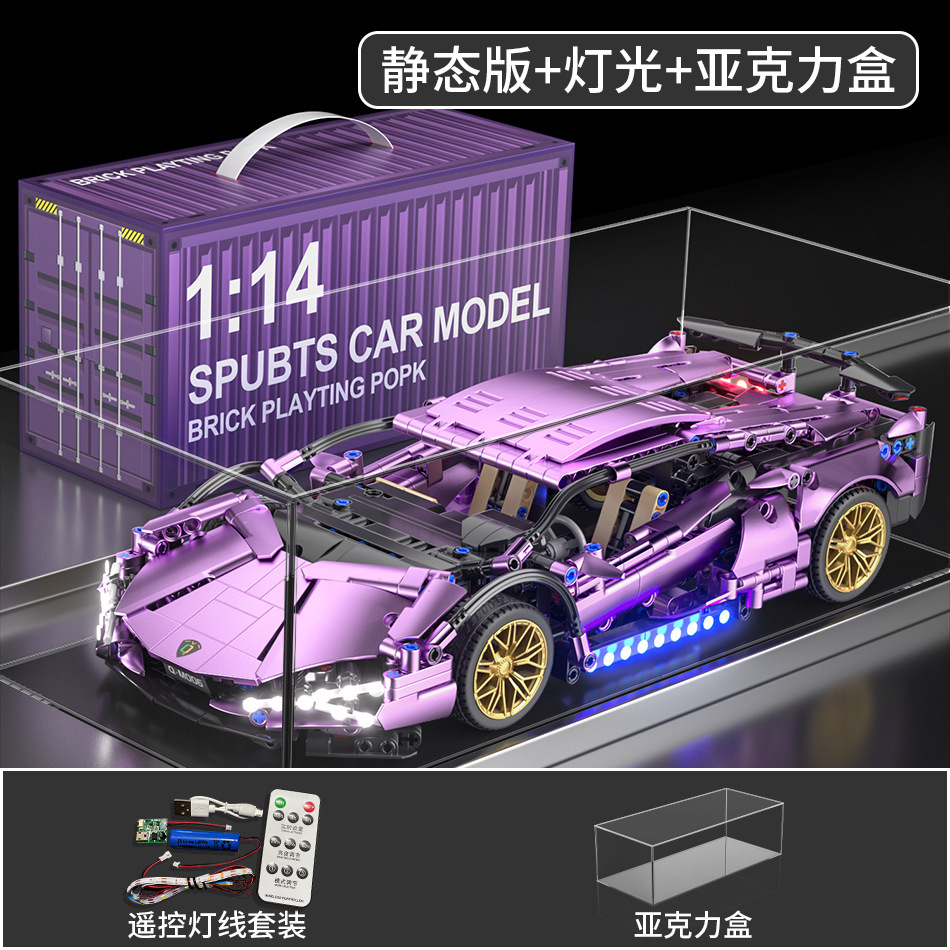 레고 람보 전기 도금 실버 소 보라색 소 원격 제어 스포츠카 소년 조립 빌딩 블록 장난감 선물과 호환 가능