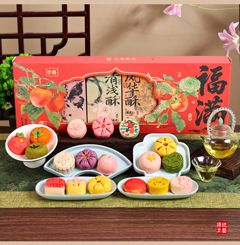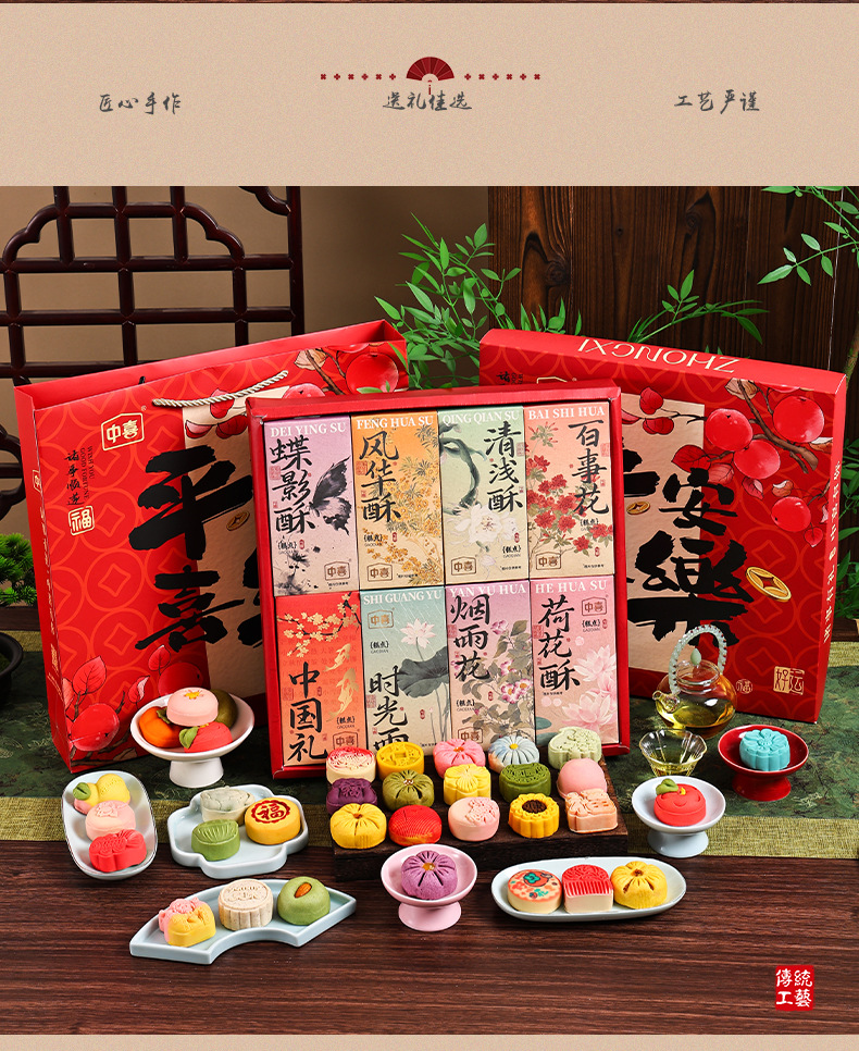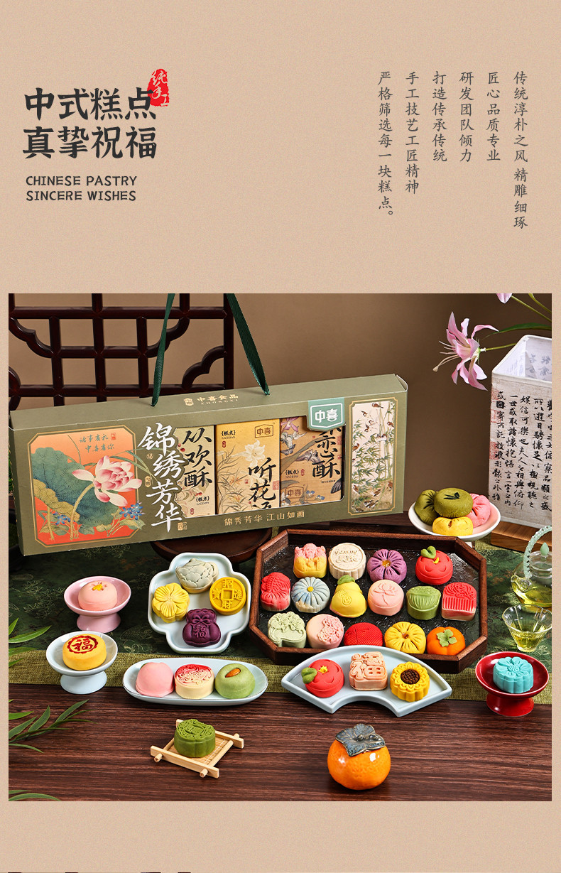절묘한 페이스트리 선물 상자 스낵 전통 중국 복숭아 꽃 페이스트리 디저트 페이스트리 스낵 전통 페이스트리