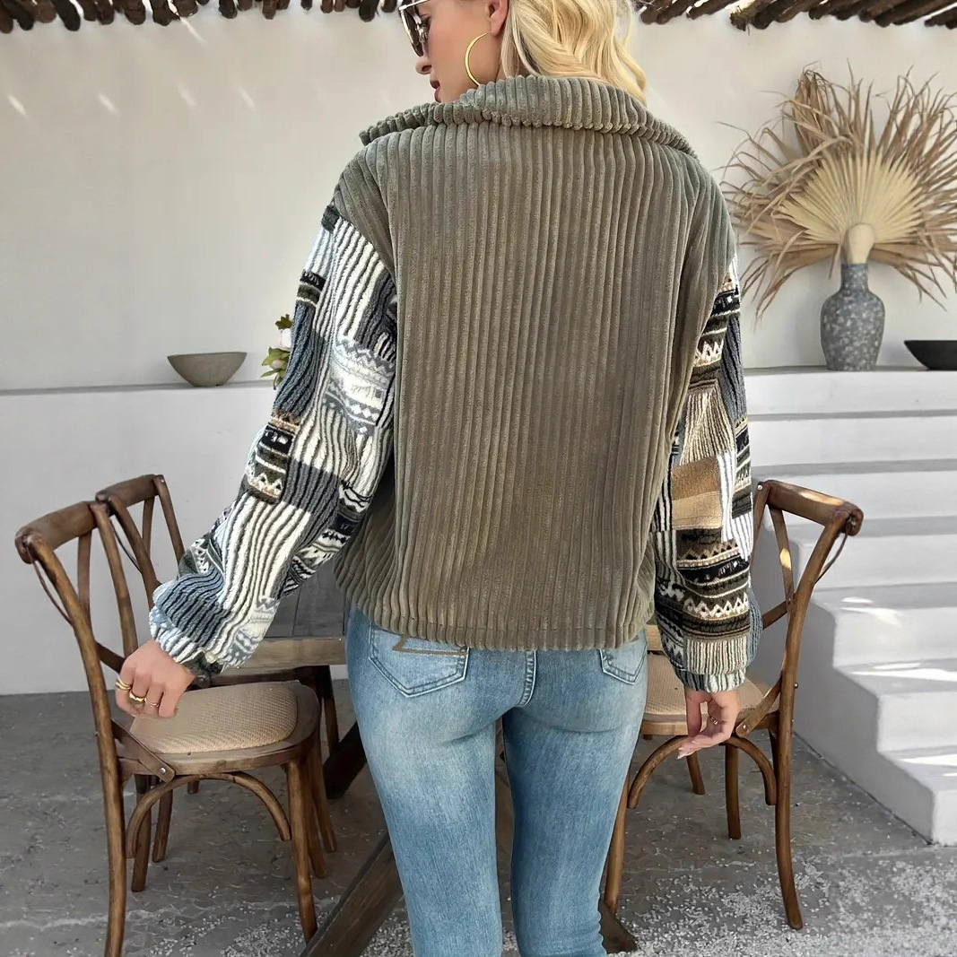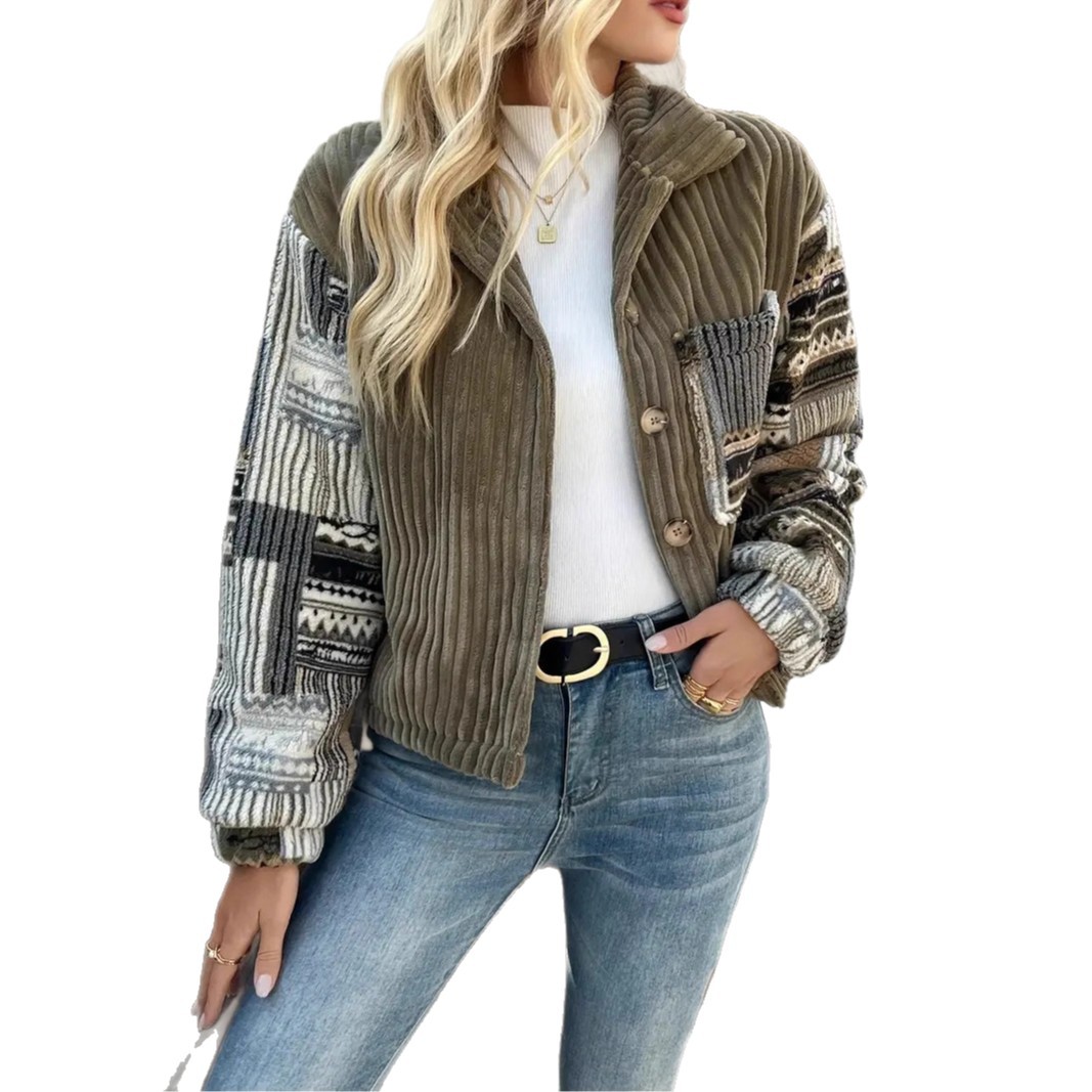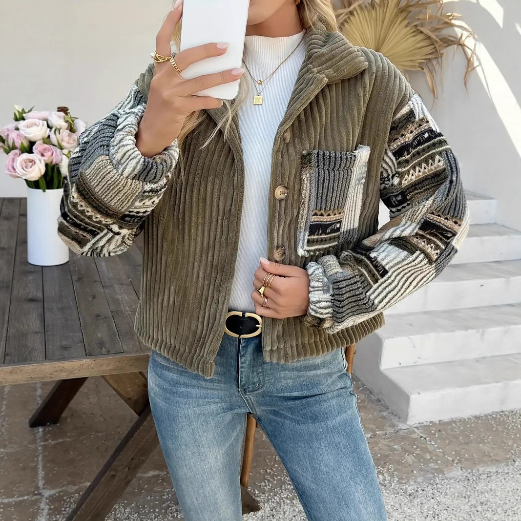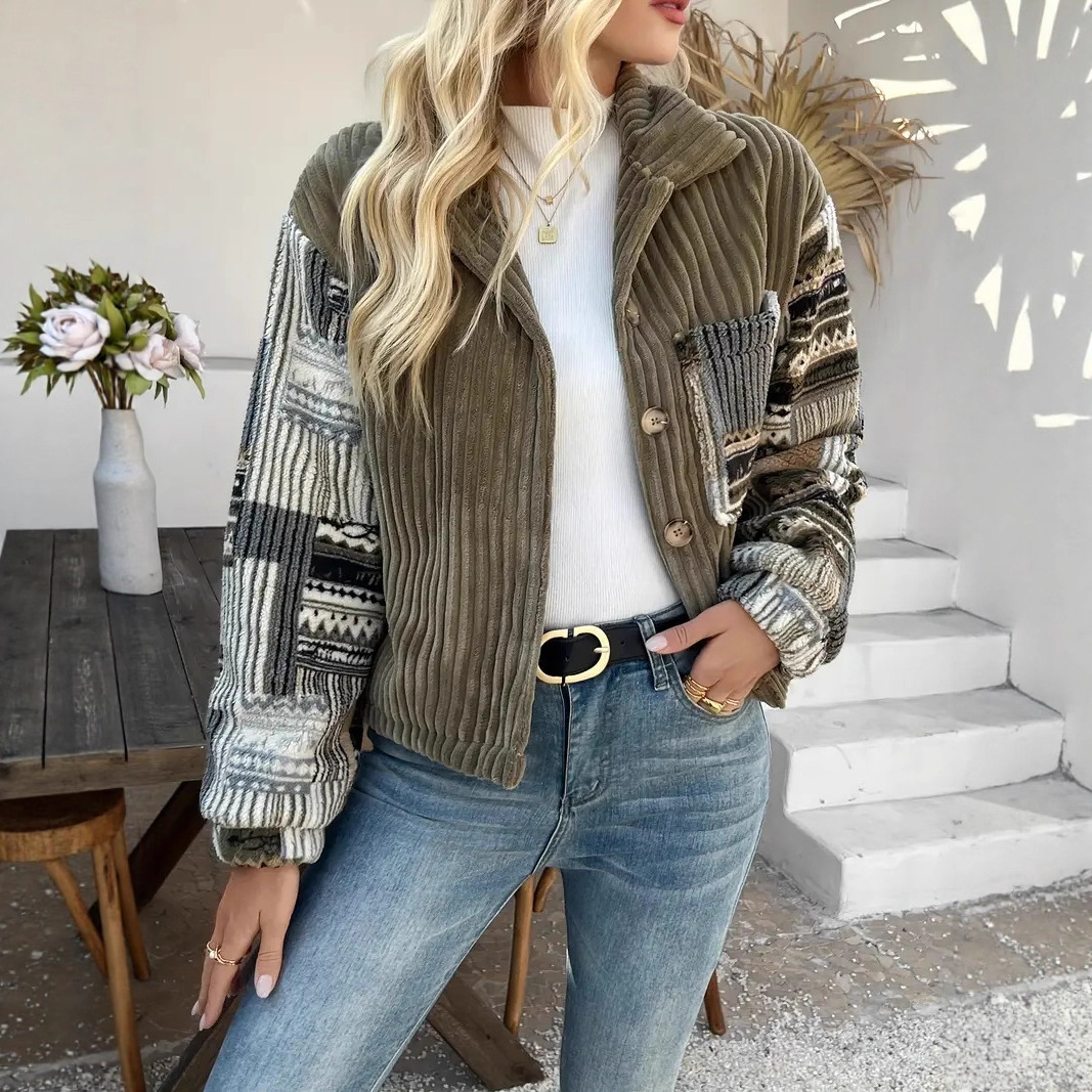 유럽 및 미국 직수입 여성용 라펠 긴팔 버튼 재킷 캐주얼 배색 코트 우아한 면 의류스토어 가기
