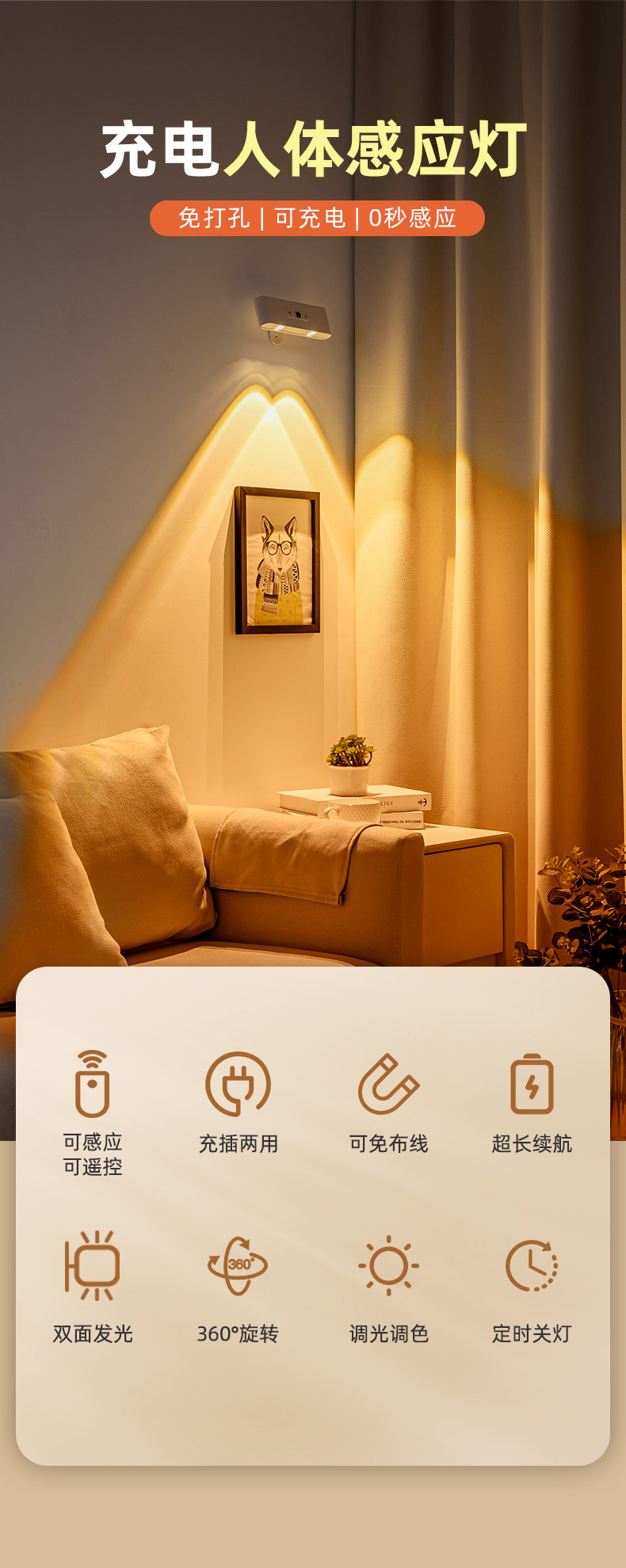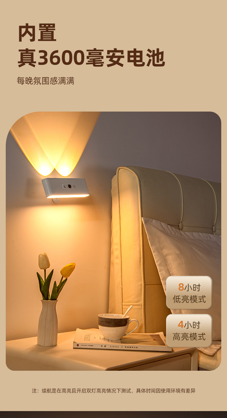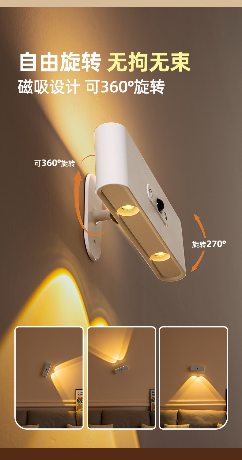 국경을 넘는 무선 무타공 침실용 야간 조명, 실내 센서형 자석 부착 리모컨 USB 충전 벽등