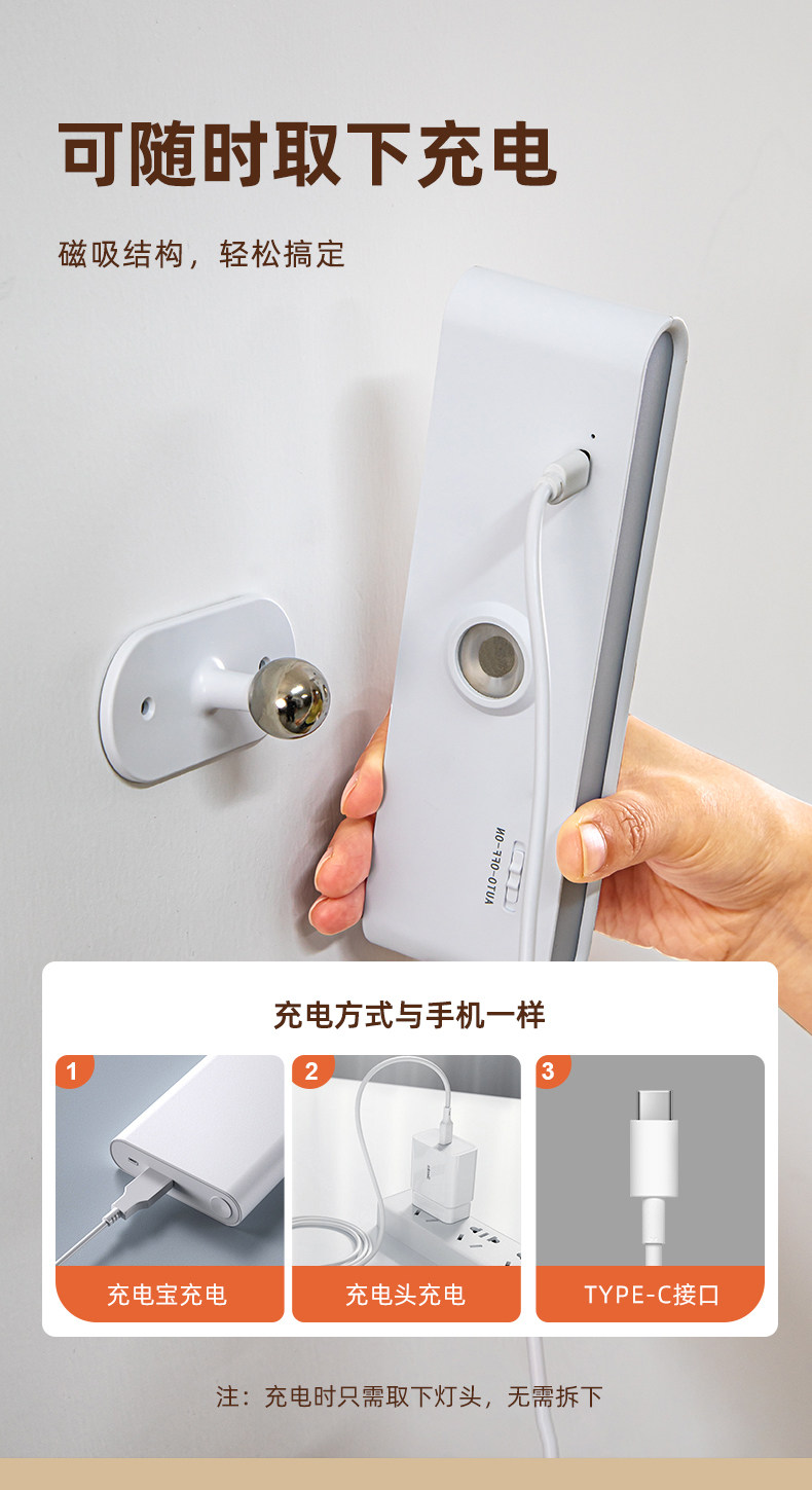• [충전식 리모콘 모델] 2400mAh + 1팩 / 3색 디밍 [예약 소등 + 360도 회전 + 배터리 수명 8-40H + 전면 및 후면 조명]