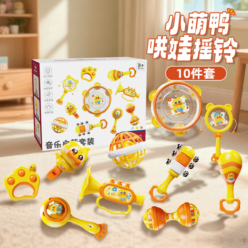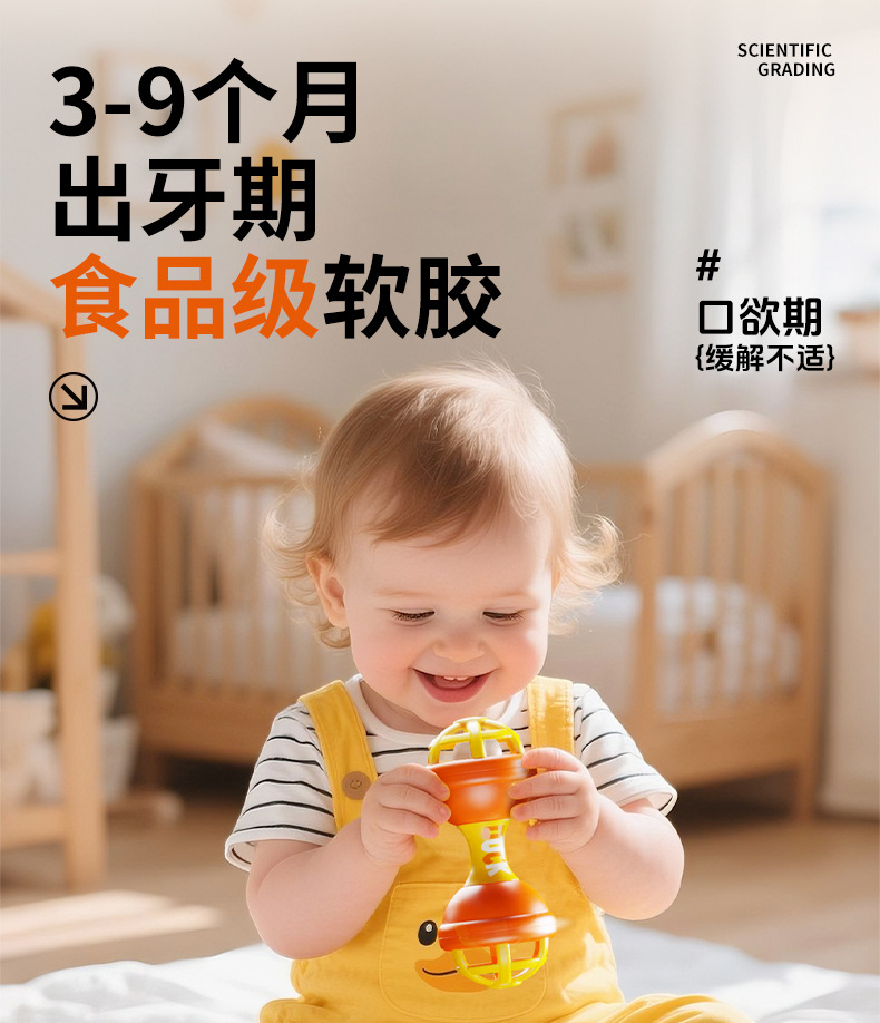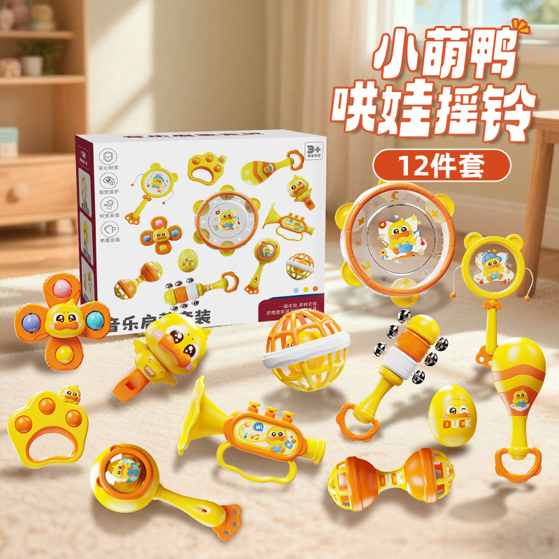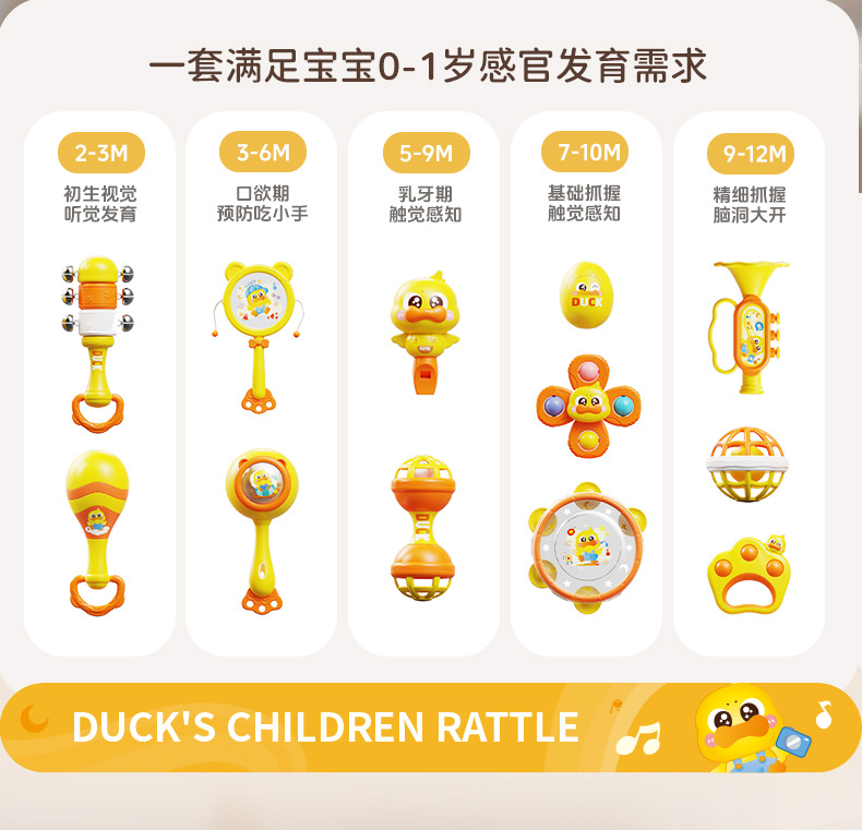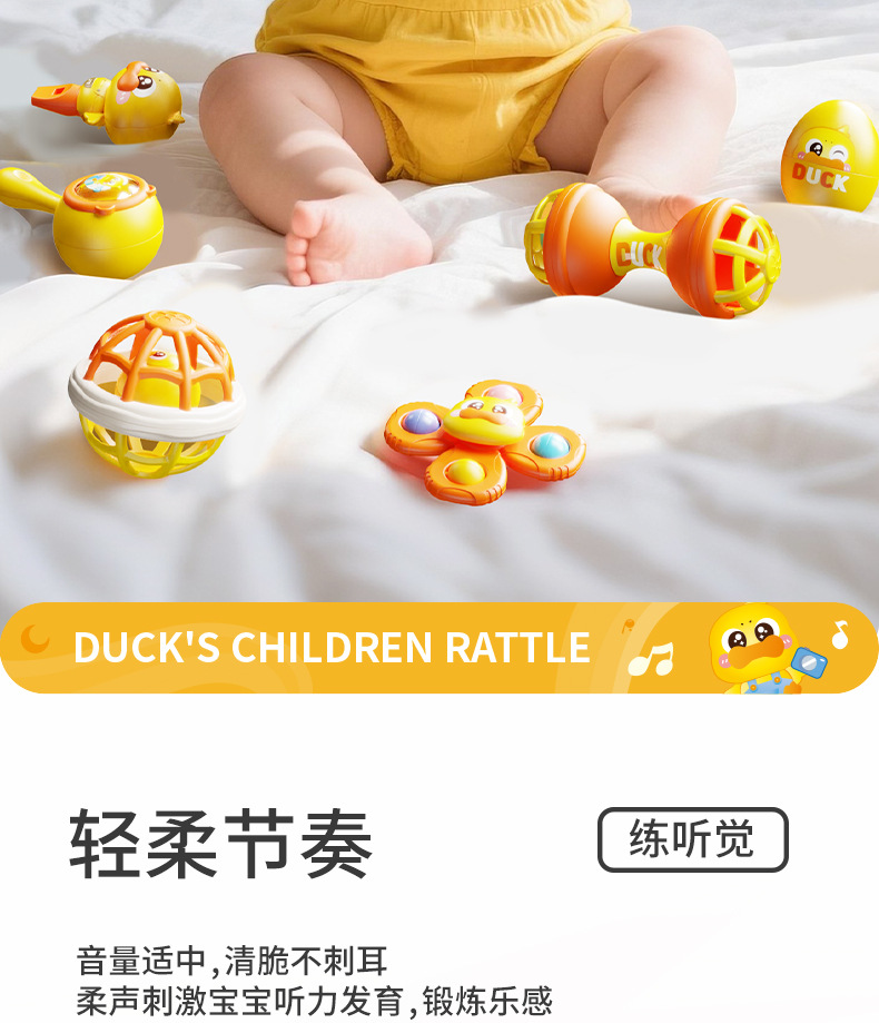 작은 노란색 오리 딸랑이 아기가 씹을 수 있는 치발기 그립 훈련 손 딸랑이 아기를 진정시킵니다 신생아 선물 국경 간스토어 가기