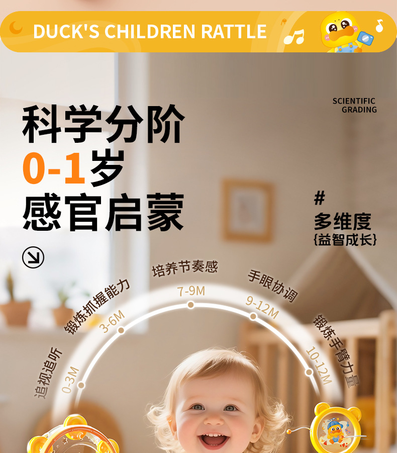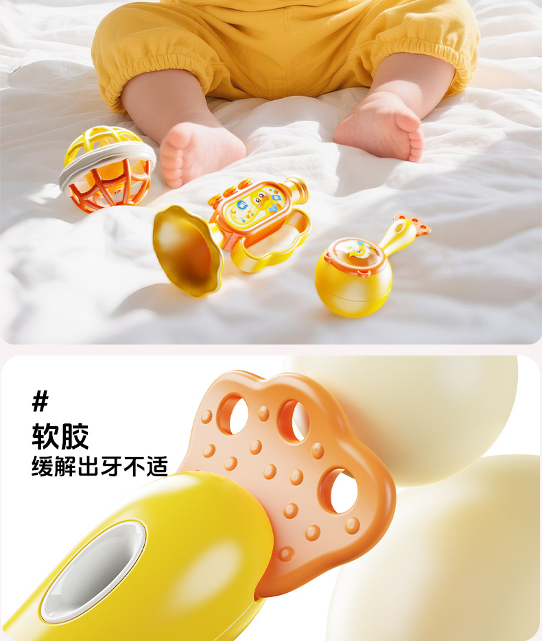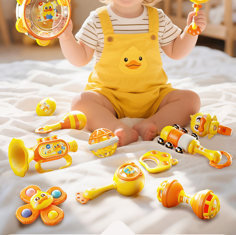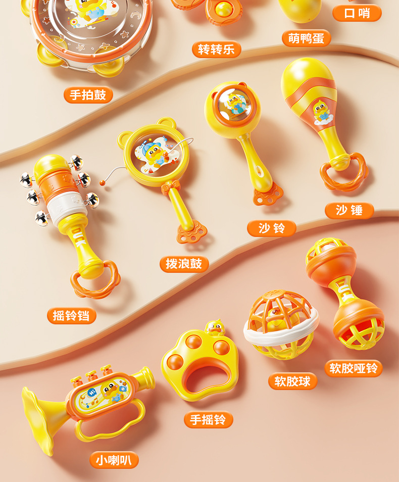 작은 노란색 오리 딸랑이 아기가 씹을 수 있는 치발기 그립 훈련 손 딸랑이 아기를 진정시킵니다 신생아 선물 국경 간스토어 가기